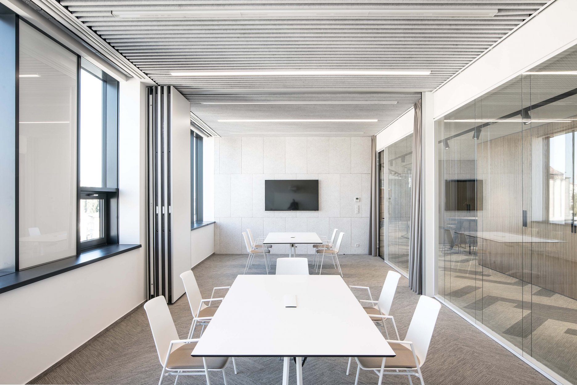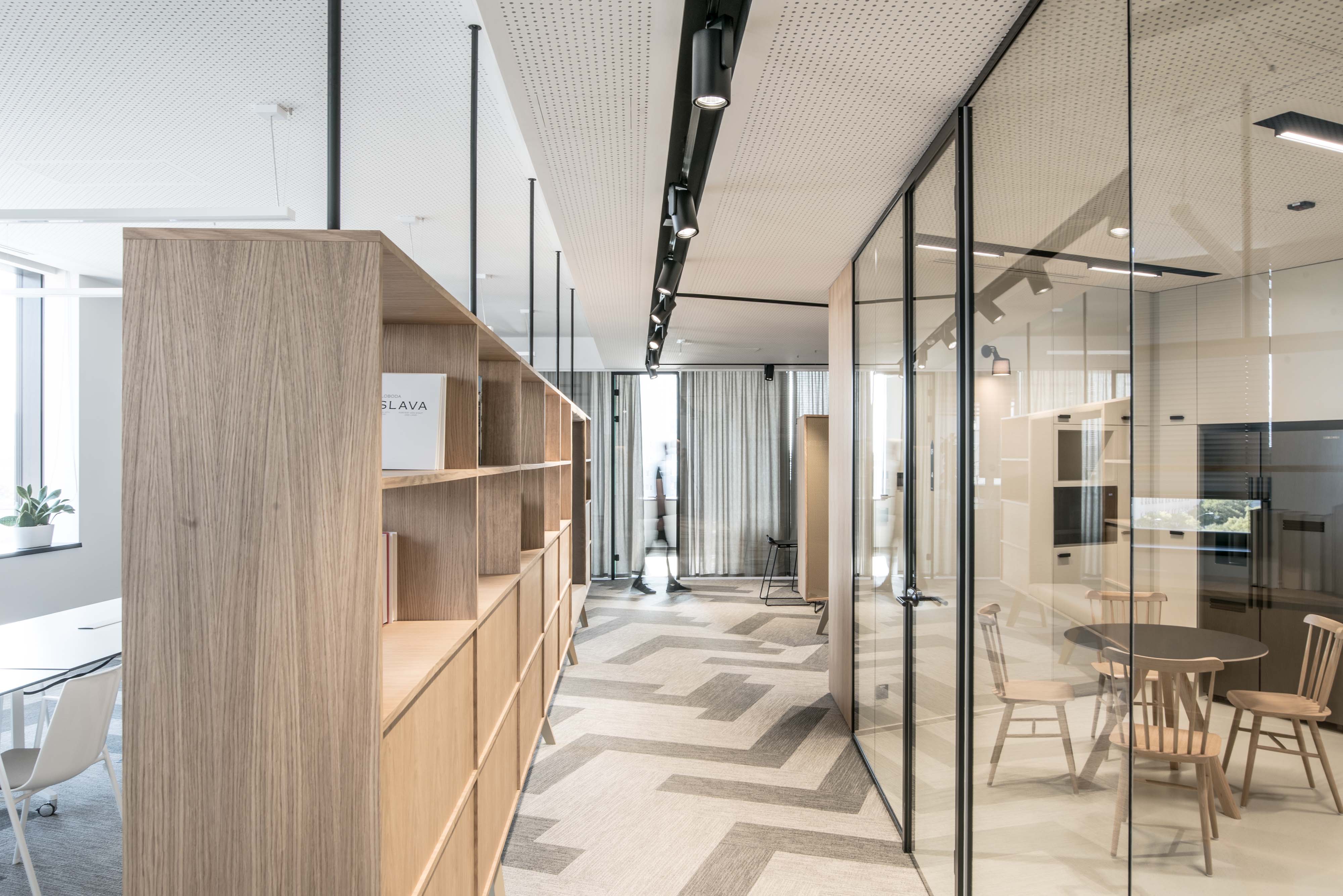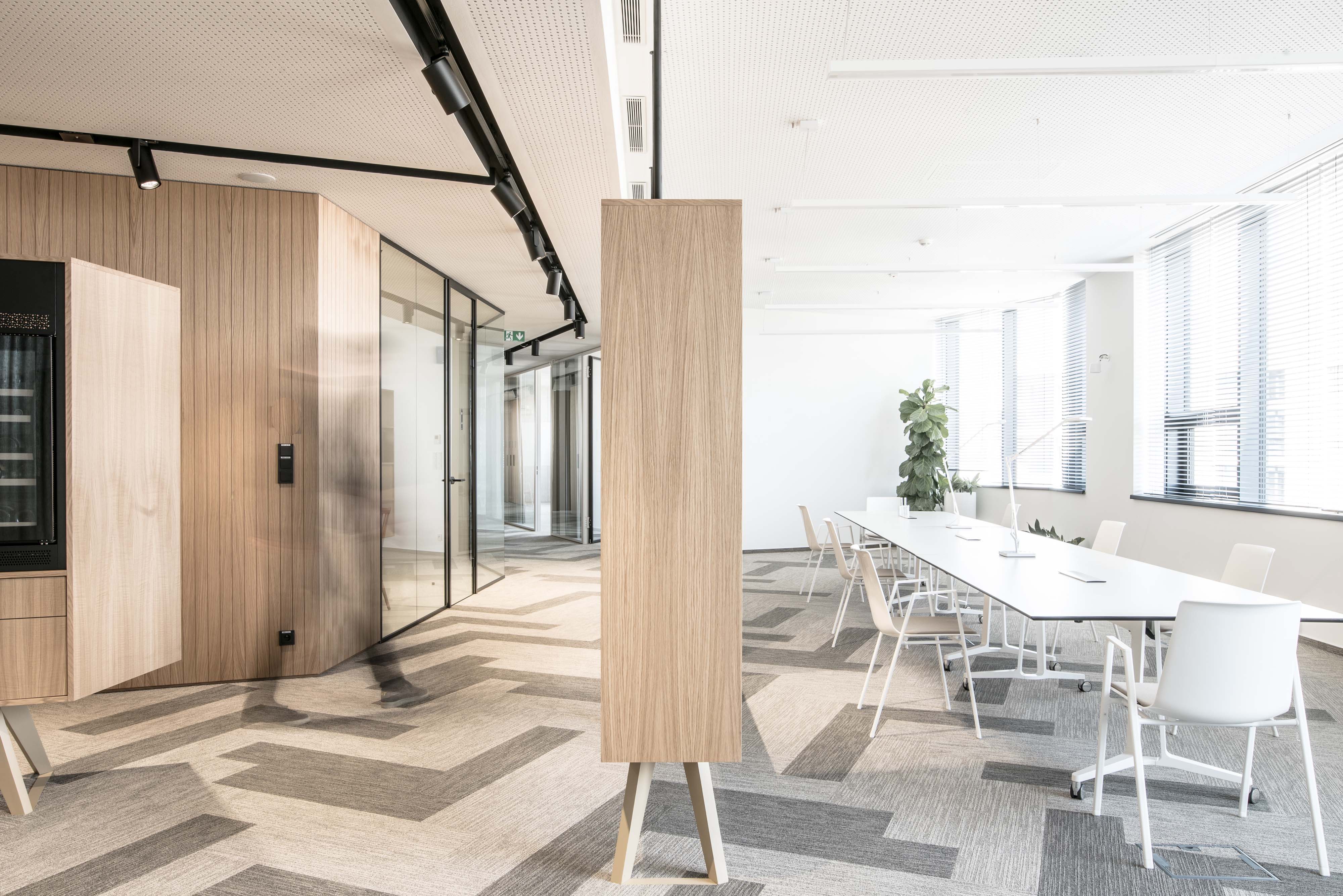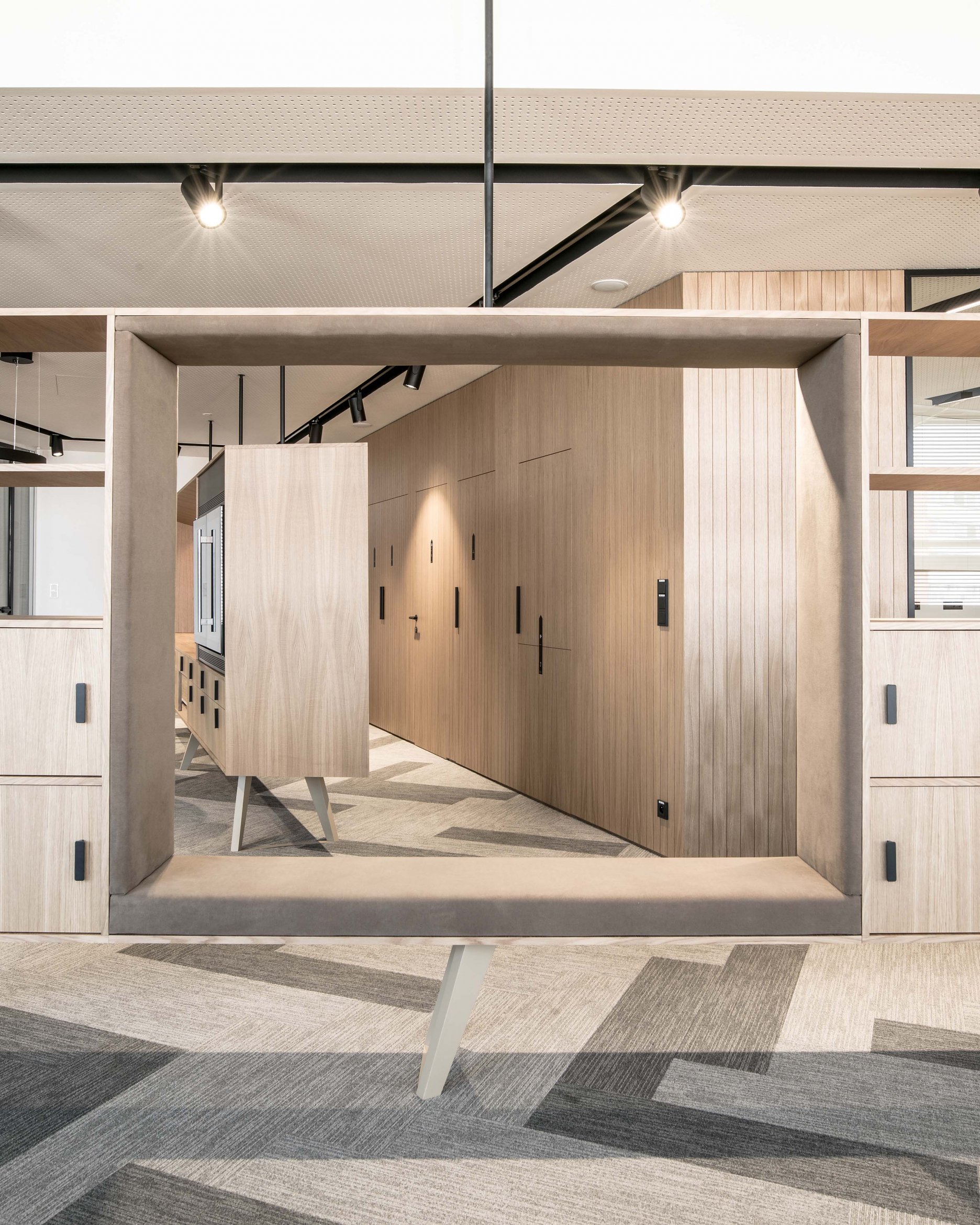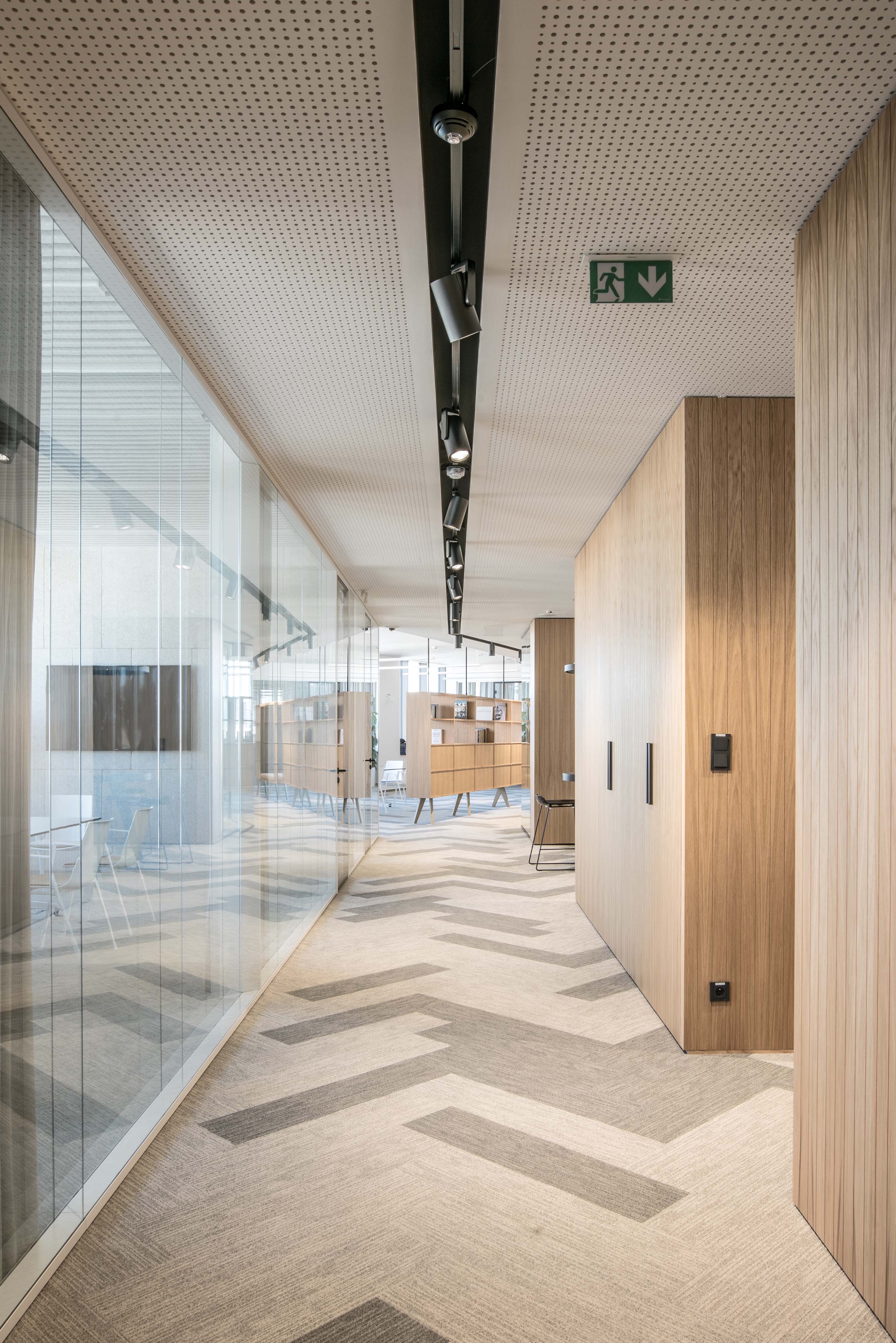 Charakteristická vlastnosť na mieru vyrábaných stolárskych komponentov je integrácia funkcií a definovanie samotného priestoru z prevádzkového a pocitového hľadiska. Použitá materiálová skladba a monochromatická farebnosť je predpokladom neutrálneho a príjemného pôsobenia na užívateľa priestoru a nadčasového vzhľadu do budúcnosti. Multifunkčné využitie chodbových priestorov (posedenie, občerstvenie,...) povyšuje úroveň priestoru vhodnú na spoločenskú aktivitu.