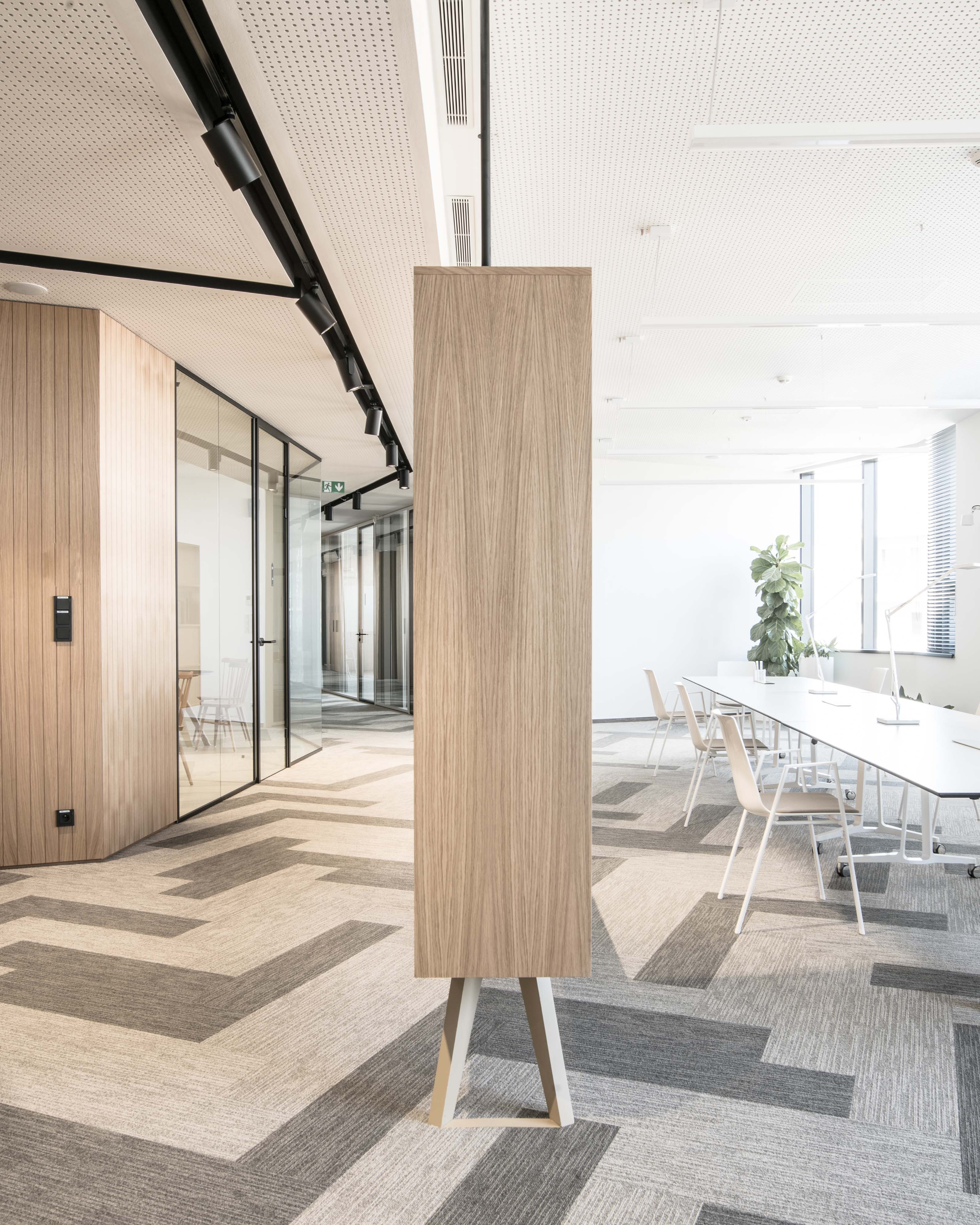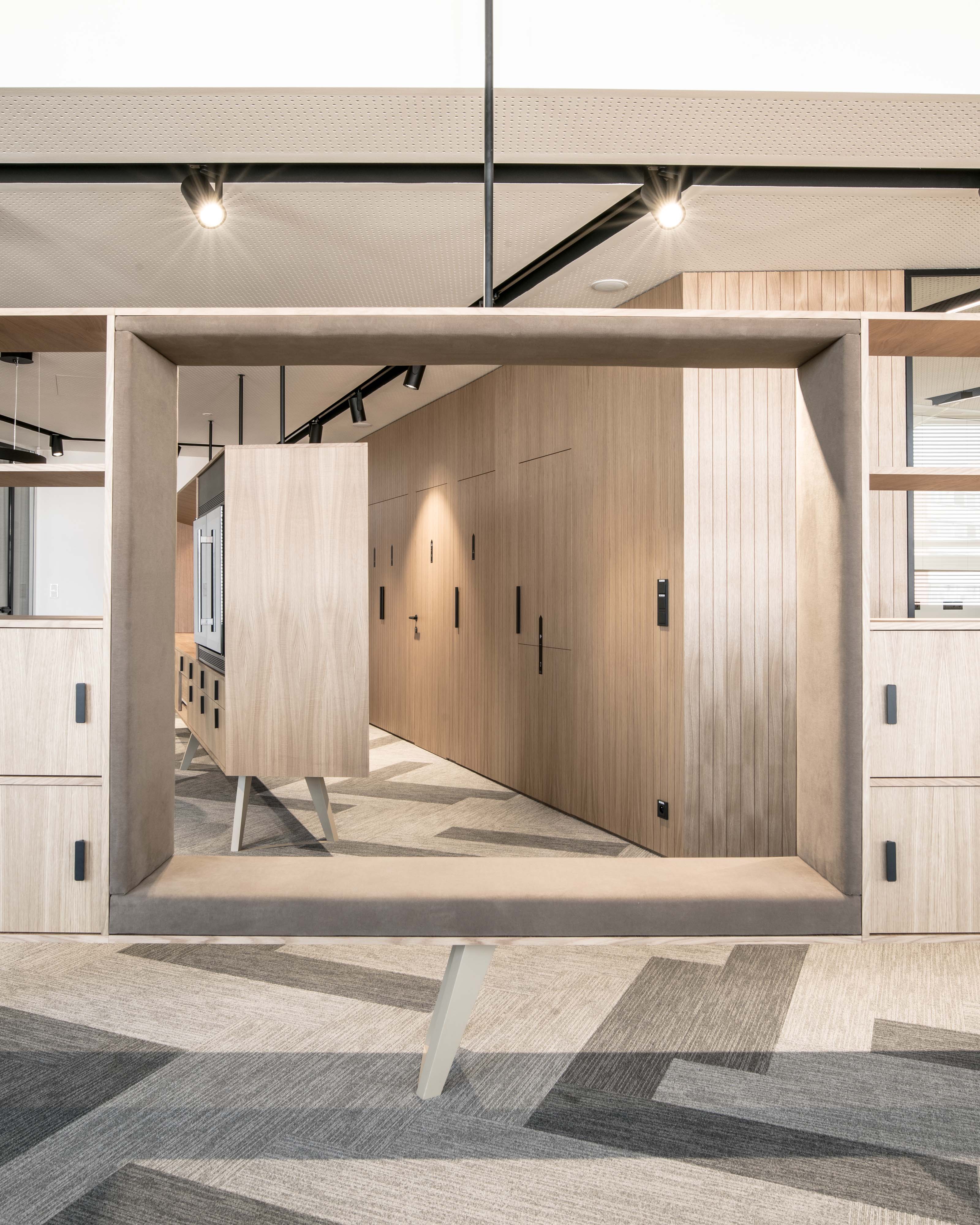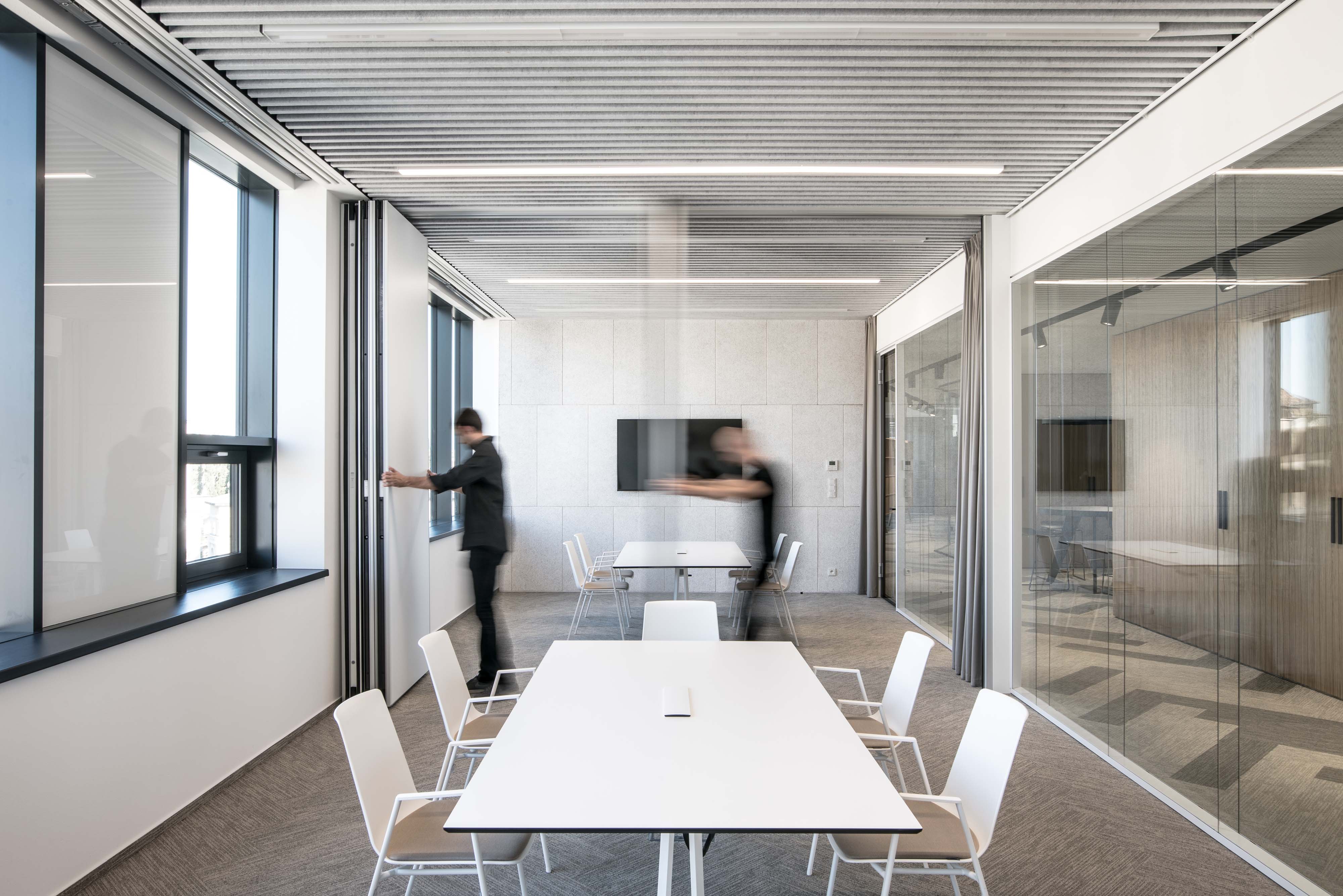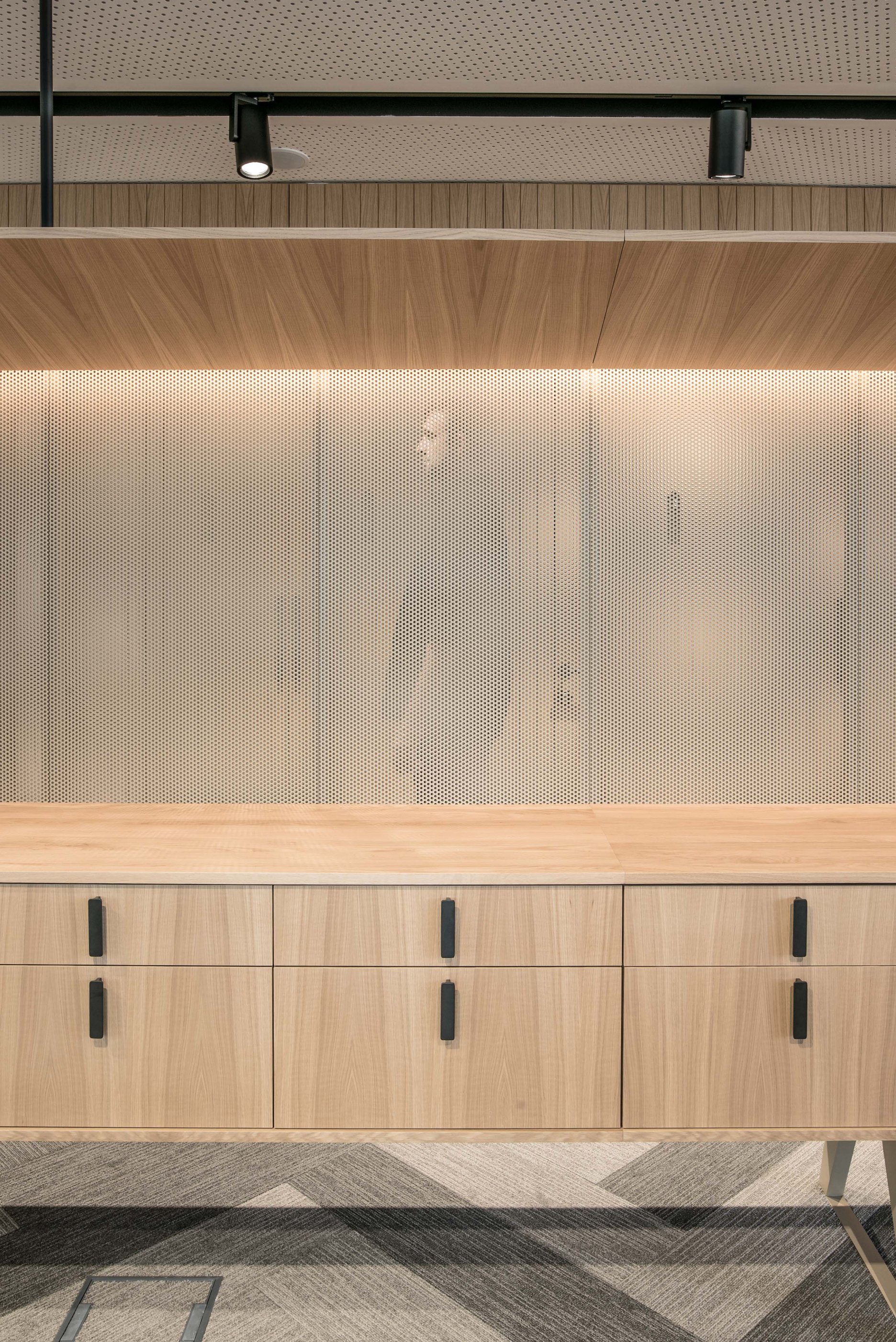 Charakteristická vlastnosť na mieru vyrábaných stolárskych komponentov je integrácia funkcií a definovanie samotného priestoru z prevádzkového a pocitového hľadiska. Použitá materiálová skladba a monochromatická farebnosť je predpokladom neutrálneho a príjemného pôsobenia na užívateľa priestoru a nadčasového vzhľadu do budúcnosti. Multifunkčné využitie chodbových priestorov (posedenie, občerstvenie,...) povyšuje úroveň priestoru vhodnú na spoločenskú aktivitu.