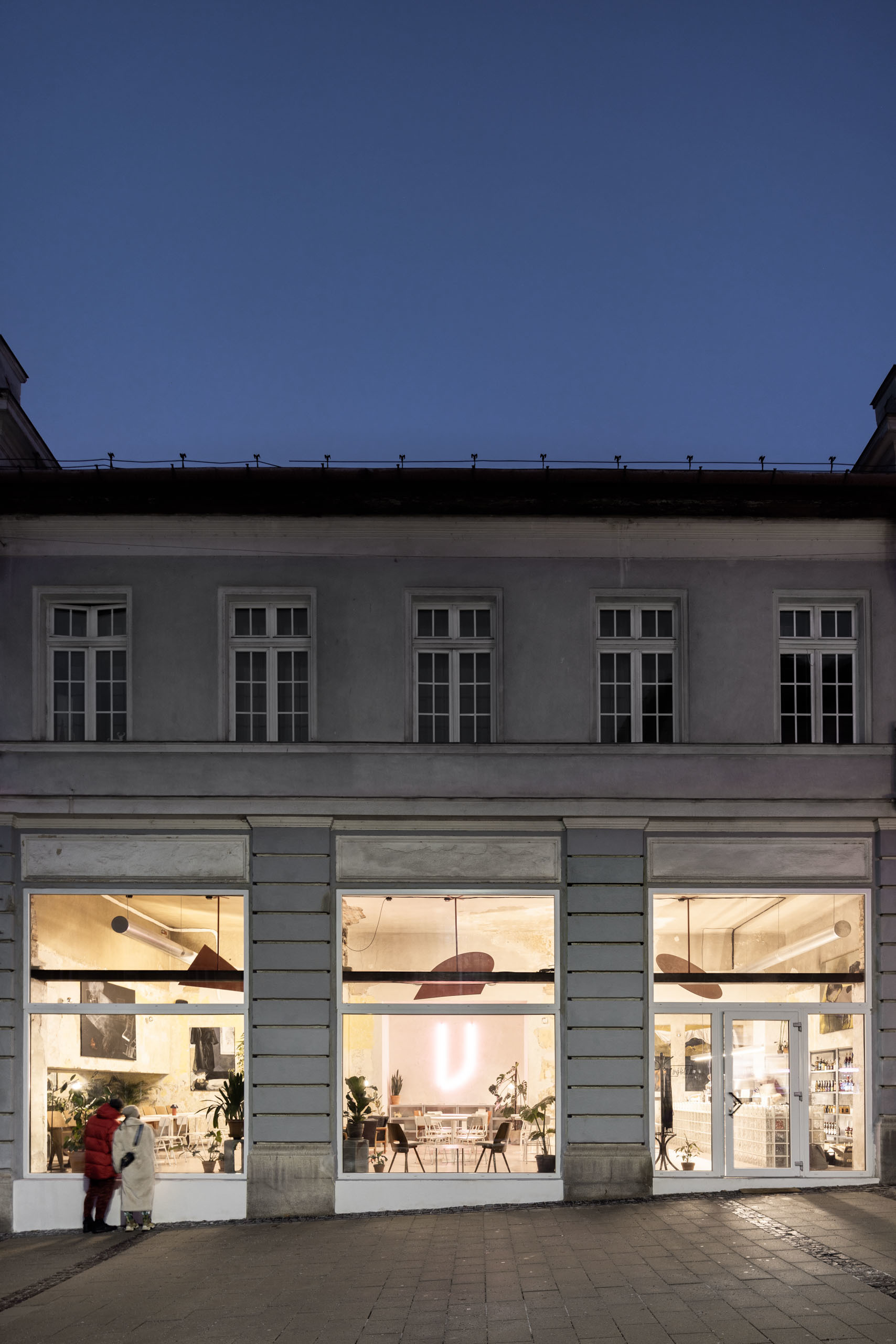 Aj keď sa môže zdať, že architekti iba nahodili základný rámec nízkonákladovej prestavby, koláže v závere článku sa až nebezpečne blížia výslednej realite :). Samotná realizácia odhalila viaceré zaujímavé vrstvy, snaha majiteľov priniesla rôznorodé historické kusy... Architekti nechávajú projekt plynúť, neboja sa prekvapení. Hra s autorskými solitérmi (svietidlá) a neónovým podpisom už akosi patrí k práci kolektívu GRAU. Jediné čo by si Výklad naozaj pýtal, je odstránenie bariéry v podobe prahu pri vstupe. Aj keď je pochopiteľné, že riešenie exteriéru bolo mimo kompetencie autorov.