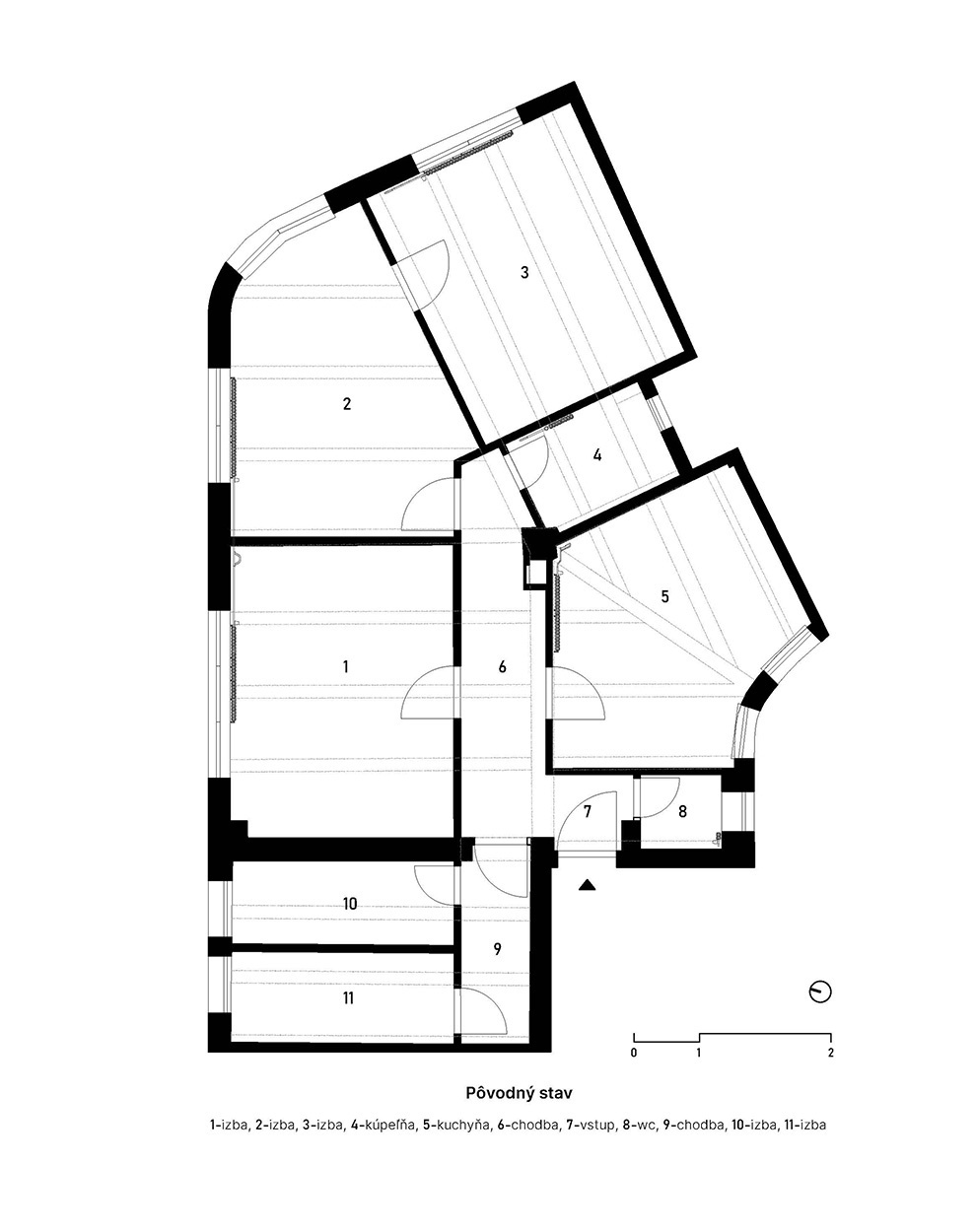 Východisko: byt orientovaný na sever, omietnuté prievlaky, priechodné izby, chodba bez svetla
