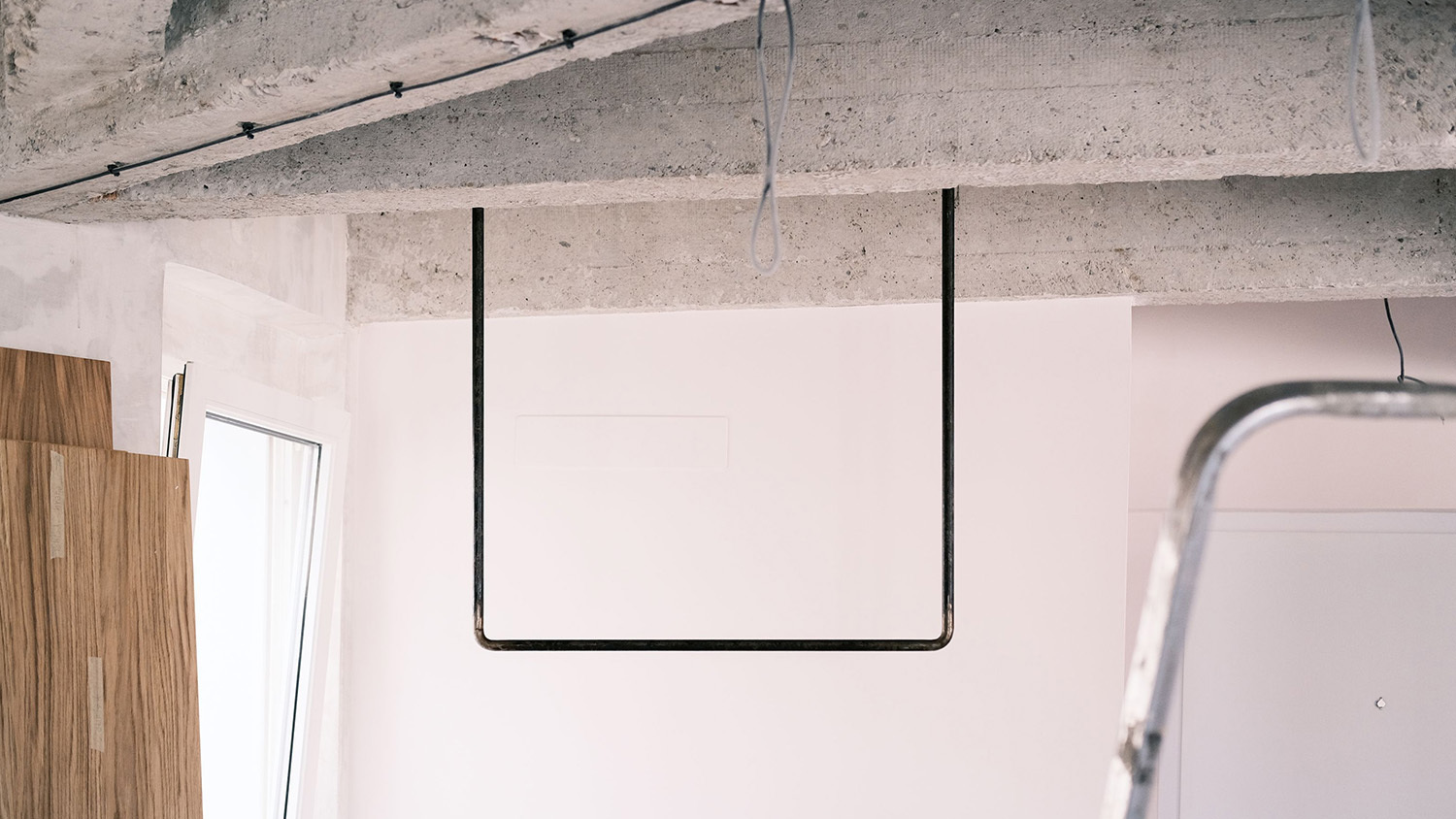 Viacero zo zváraných rúrkovitých prvkov je kotvených priamo do stropu. Odľahčujú masívnosť železobetónových prievlakov a na niektorých miestach vizuálne nadväzujú na výstuž, ktorá z betónu vytŕča. Sú zámerne skorodované – výsledok rekonštrukčného kontextu:
