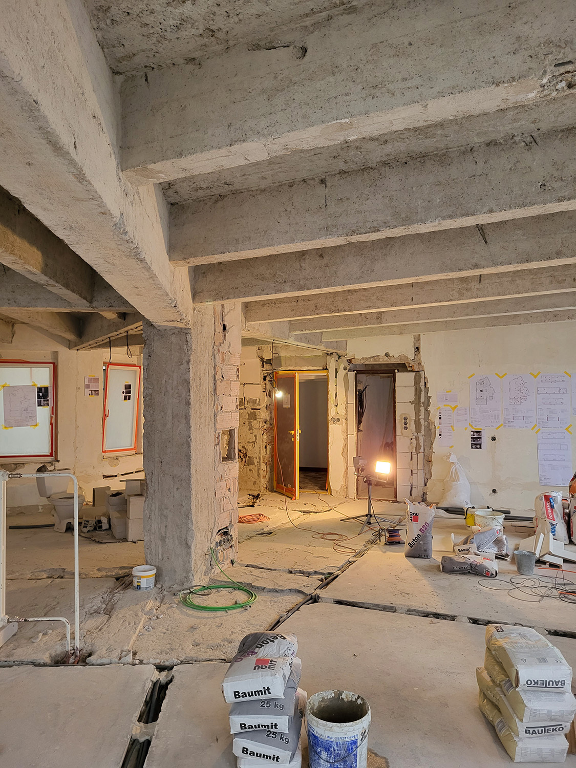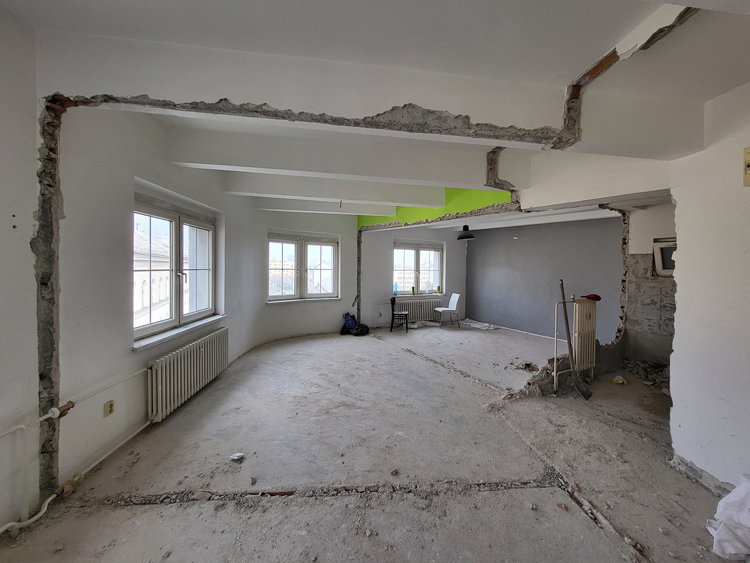 Cieľ: Vytvoriť priestor, v ktorom budeme môcť slobodne tvoriť - architektúru aj nearchitektúru, experimentovať, hľadať riešenia použitím rôznych médií a nástrojov. Rešpektovať pritom ducha existujúceho priestoru - bytu na poslednom poschodí bytovej budovy v centre Bratislavy.