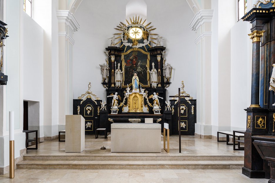Aktuálna intervencia ateliéru What Architects. spočíva v nahradení pôvodného mobiliáru kostola novými prvkami. Autorské solitéry zapadajú do konceptu zjednodušenia a očistenia priestoru. Elementárne formy nechávajú vyniknúť pôvodné celky interiéru, do ktorého sa po päťsto rokoch vracia miestny pieskovec. Výsledok prezentuje osobný vklad autorov.