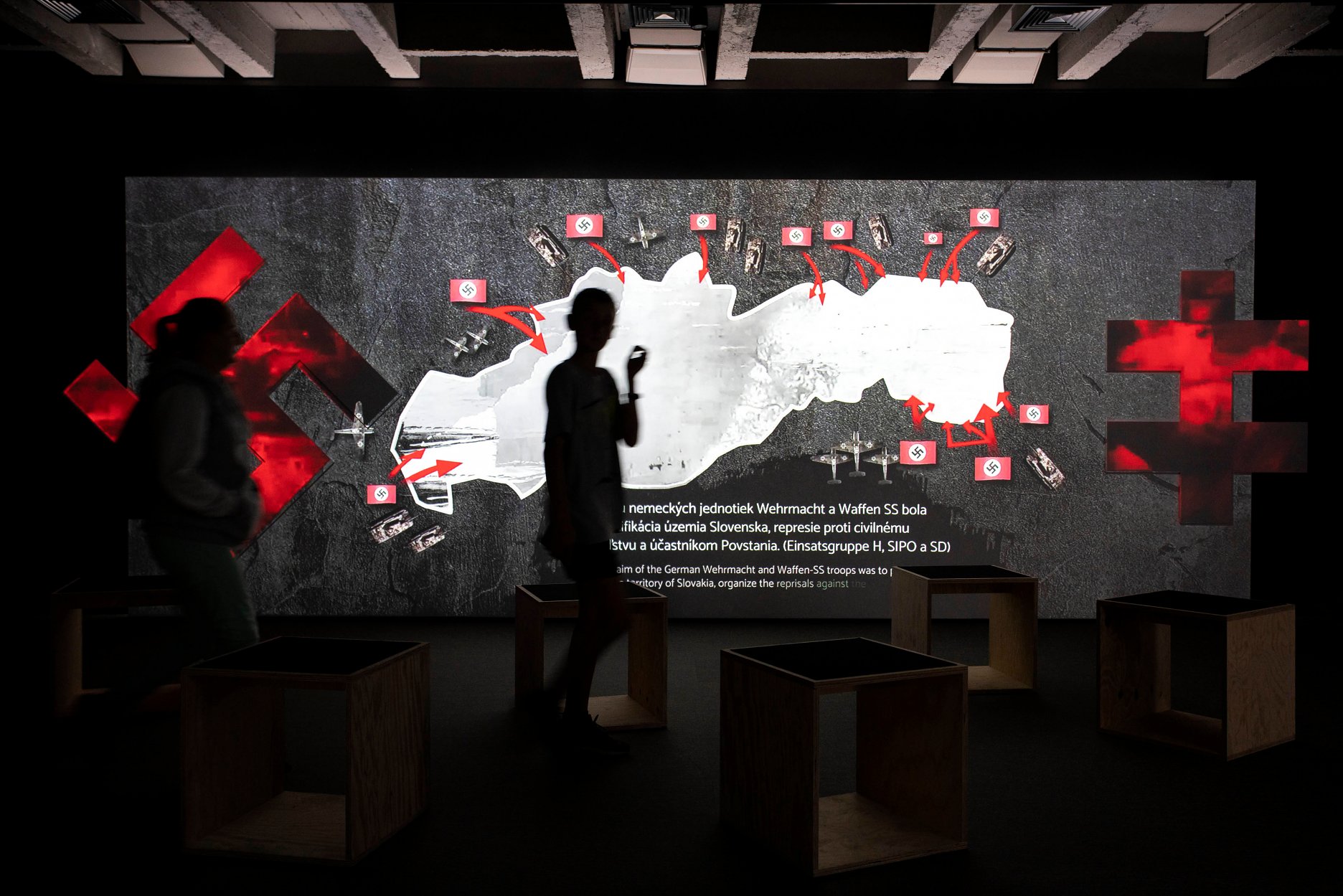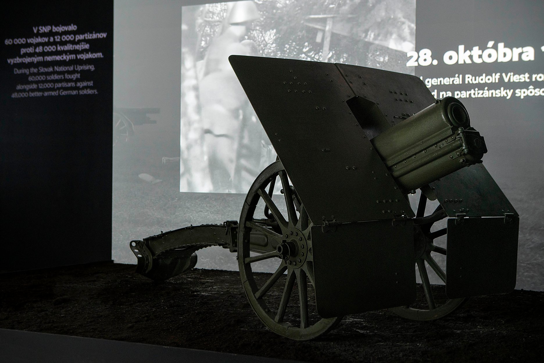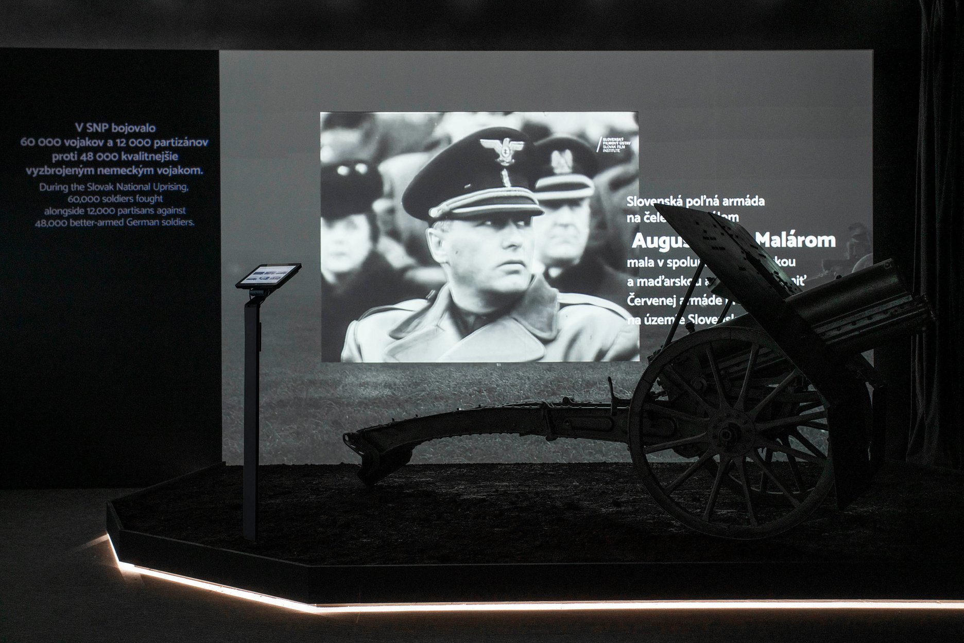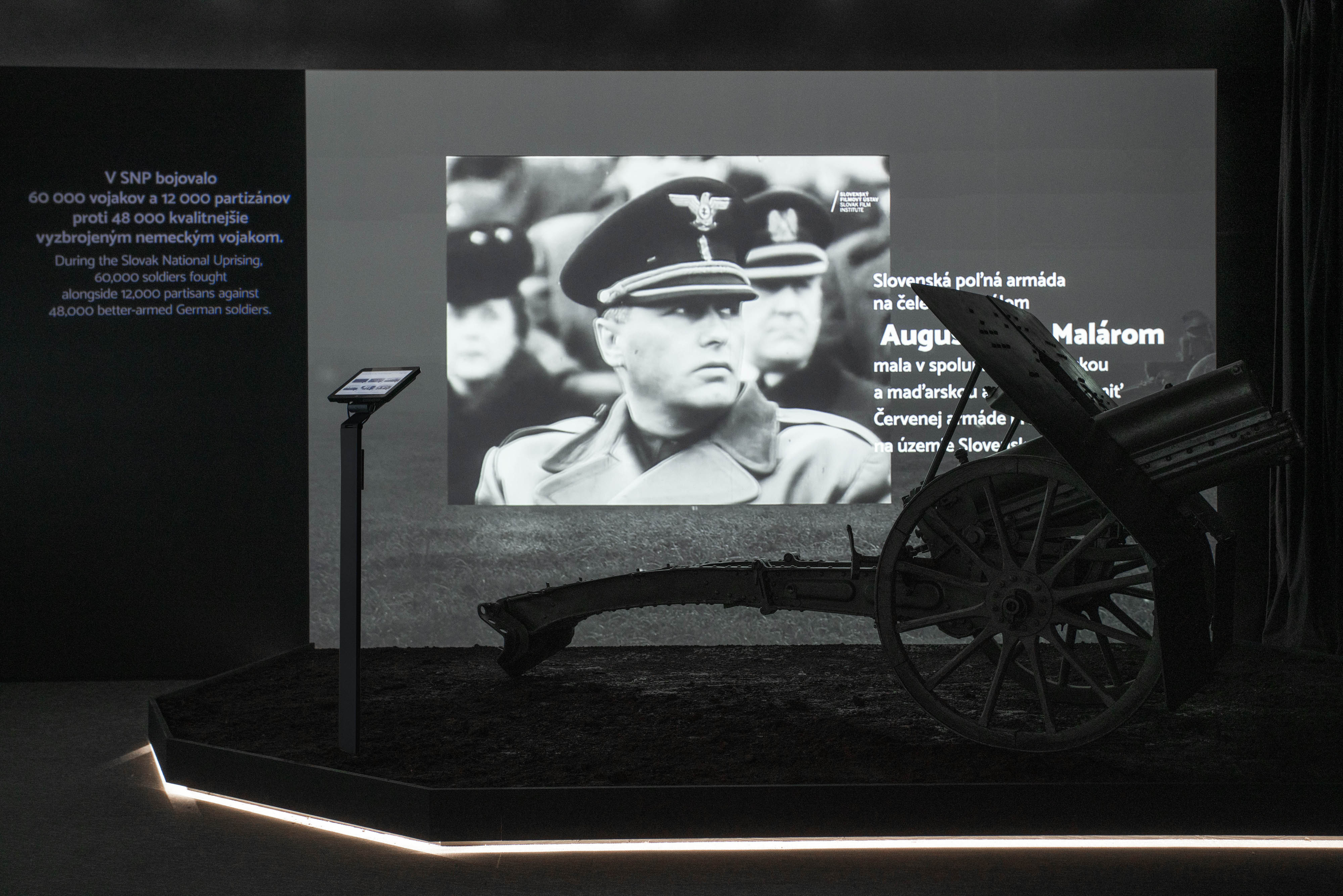 Audiovizuálny zážitok je doplnený o výstavné exponáty, konkrétne vozidlo Mercedes Benz 170V Cabrio, aký používal povstalecký generál Ján Golian, húfnicu a pušku vrastenú do stromu.