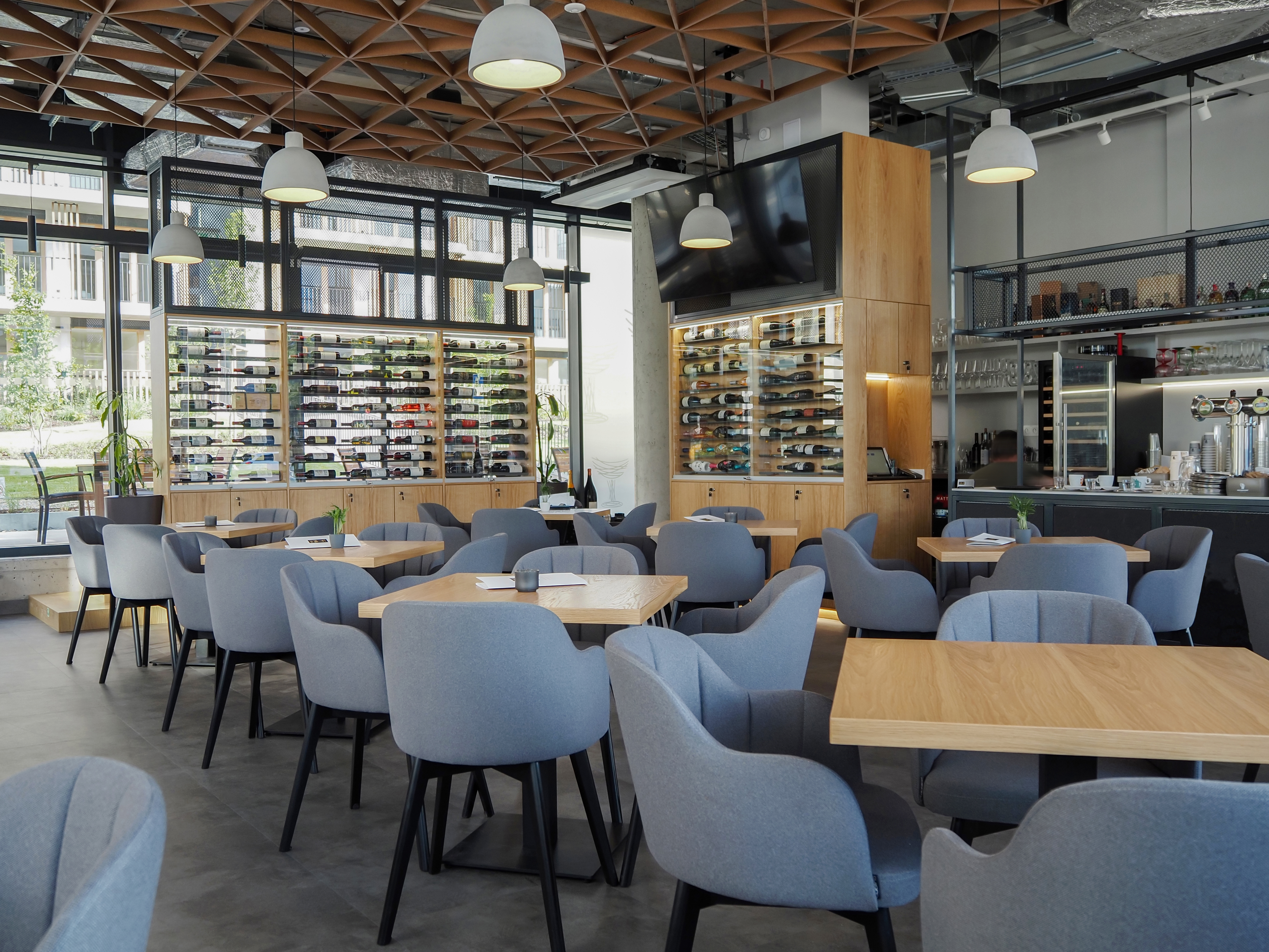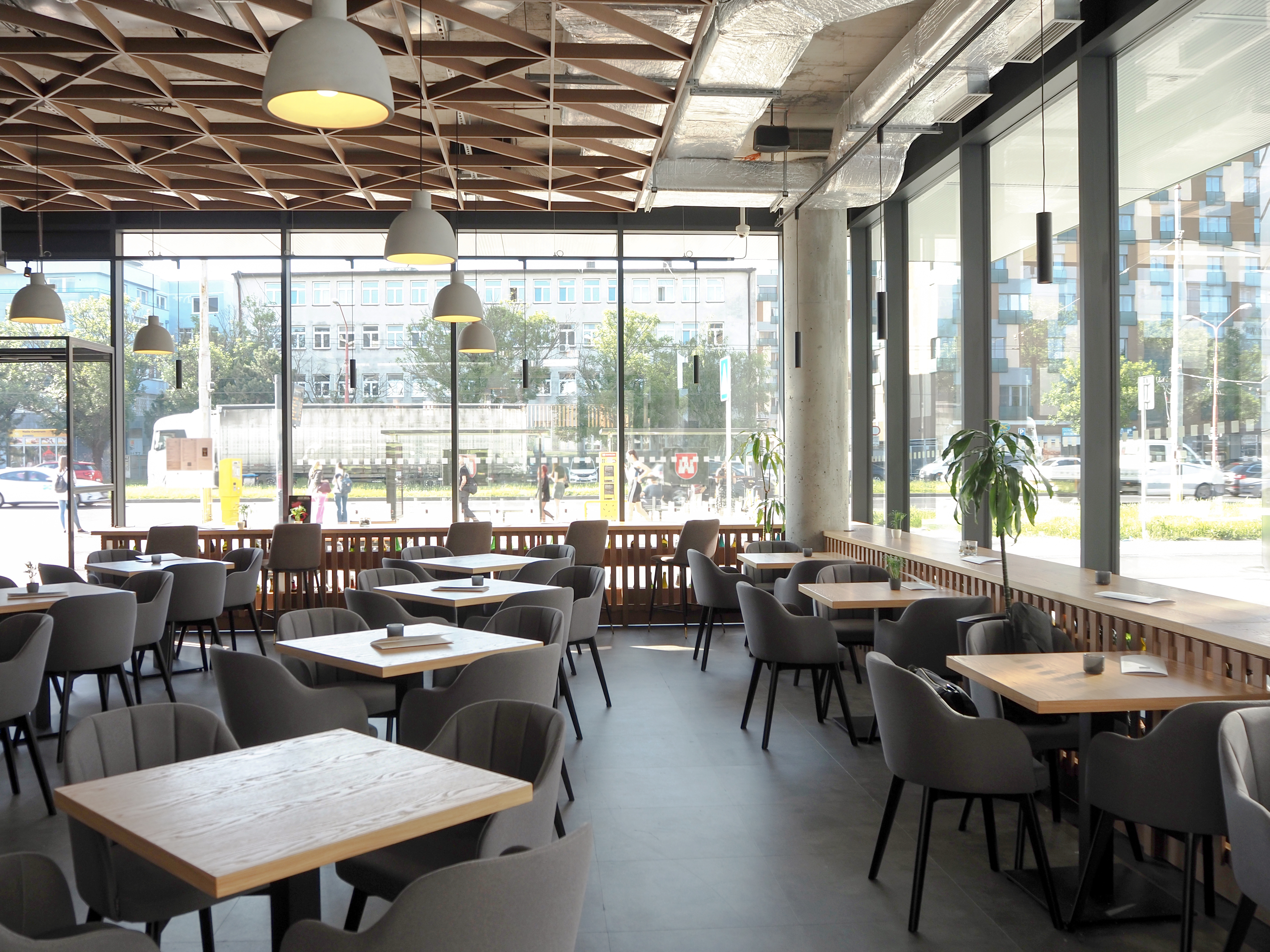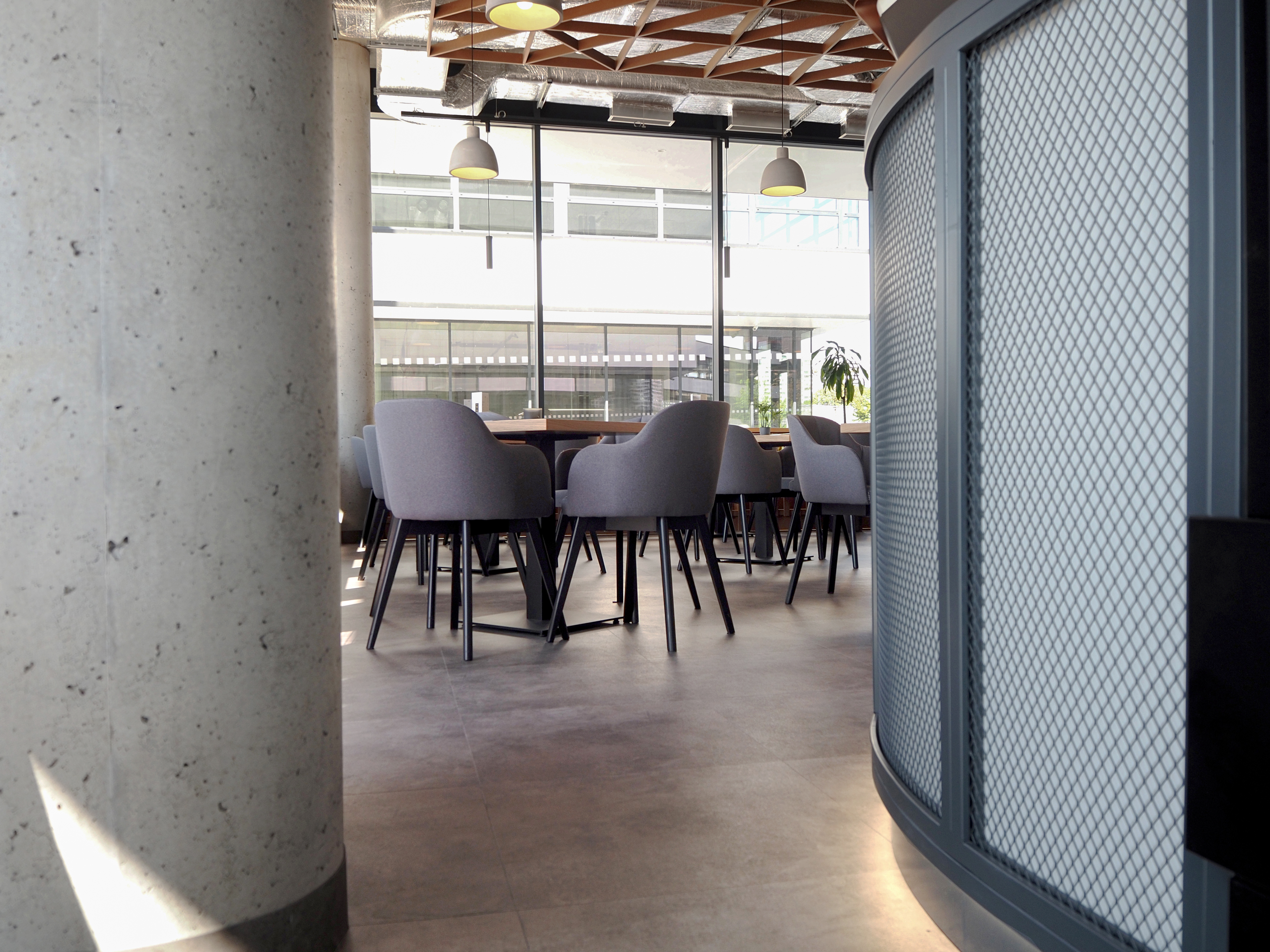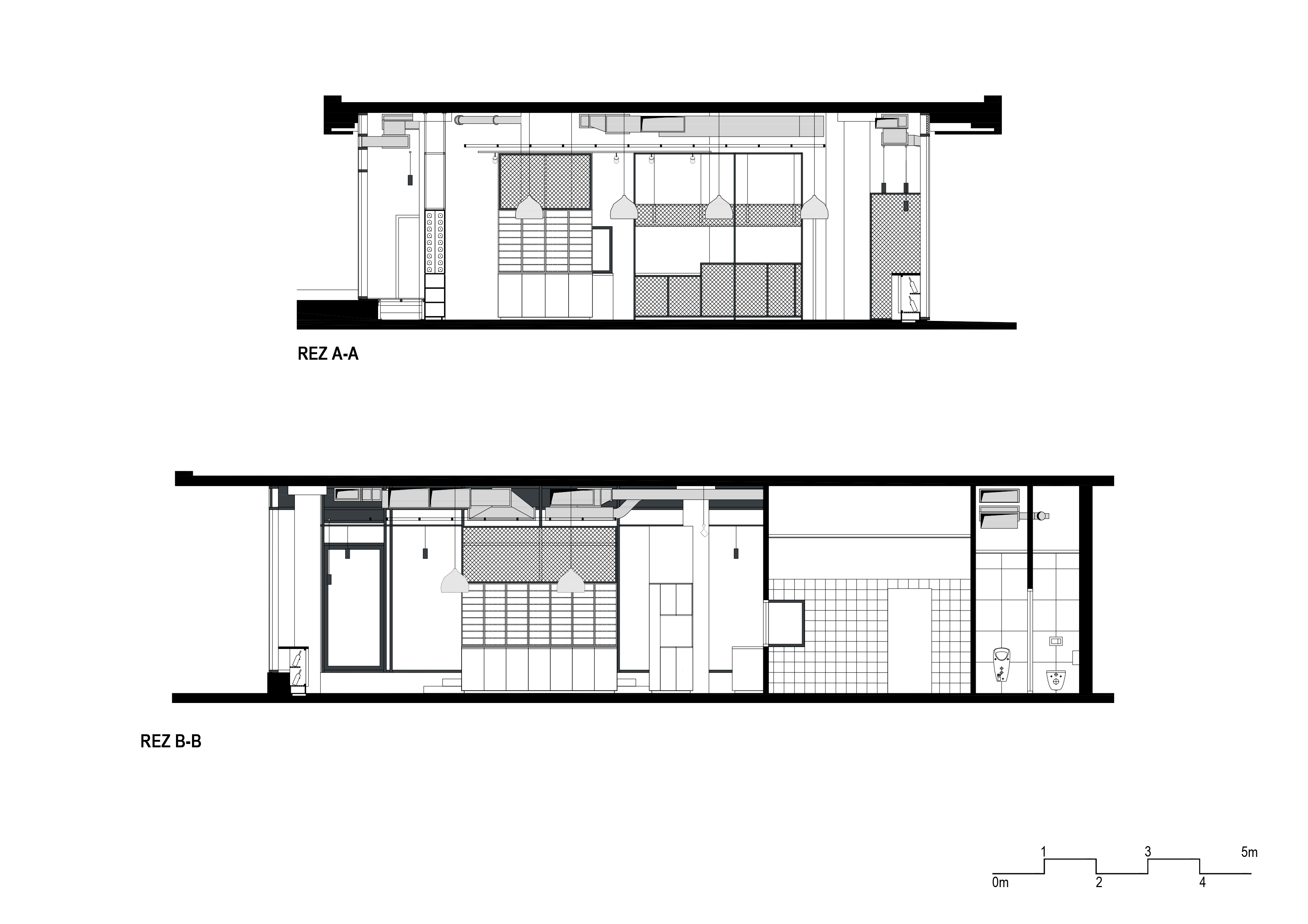 Návrh je rozdelený na dve časti, prvá časť - zázemie s kuchyňou a druhá časť - reštaurácia. Pomerne skromný odbytový priestor sme sa snažili čo najefektívnejšie využiť. Po vizuálnej stránke sme sa rozhodli zachovať všetky pôvodné materiály, surové betónové prvky a technické rozvody, čo má za úlohu zdôrazniť charakter priestoru. Nové navrhované prvky sú kombináciou ocele a ťahokovu ako súčasť industriálne ladeného objektu. Zároveň sme použili prírodný materiál - drevo, ktorý do celého priestoru vnáša teplo a robí ho útulným a ideálnym miestom aj na dlhšie posedenia.