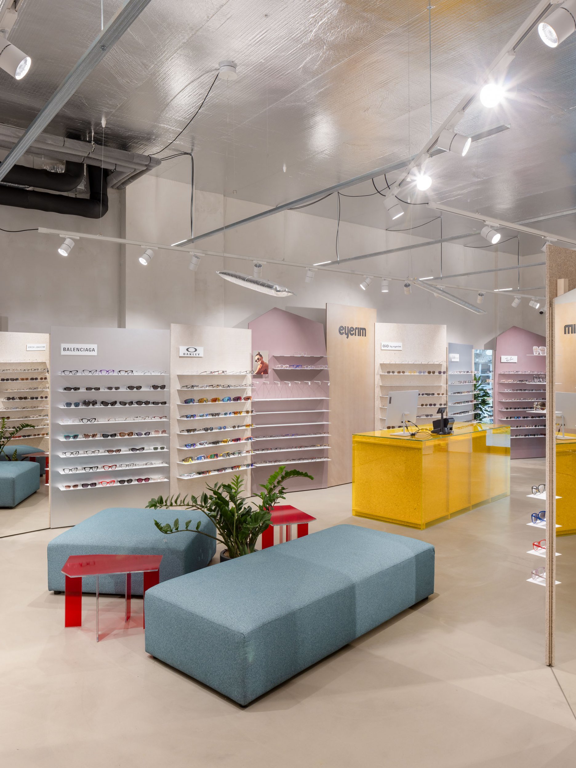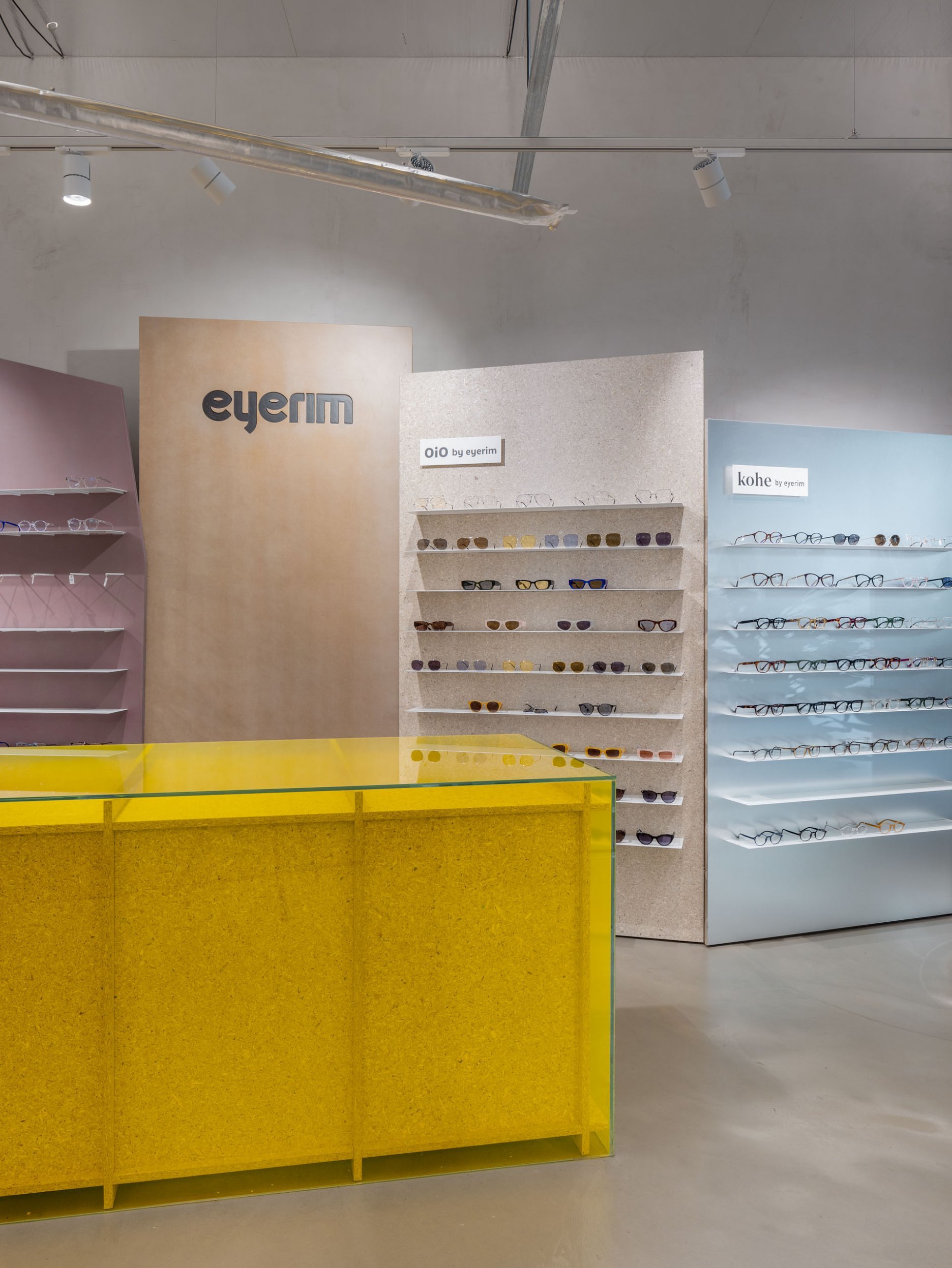 Základným princípom pri návrhu a riešení kamennej prevádzky Eyerim bolo vytvorenie funkčného spôsobu vystavovania optických rámov, ktorý by bolo možné použiť v rôznorodých priestoroch a flexibilne tak na ne reagovať.