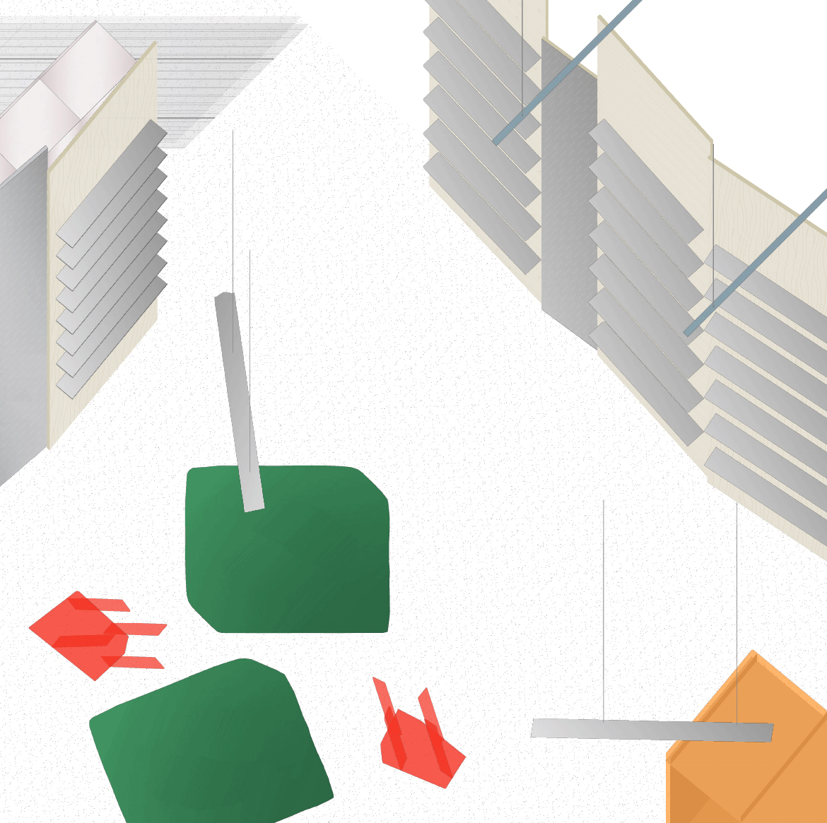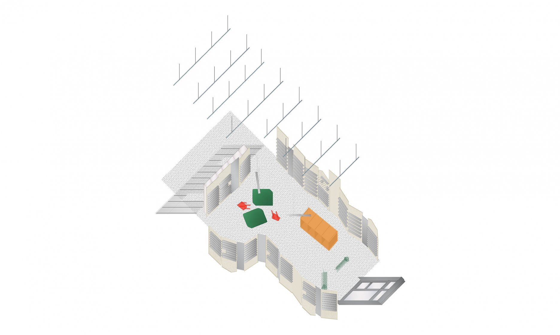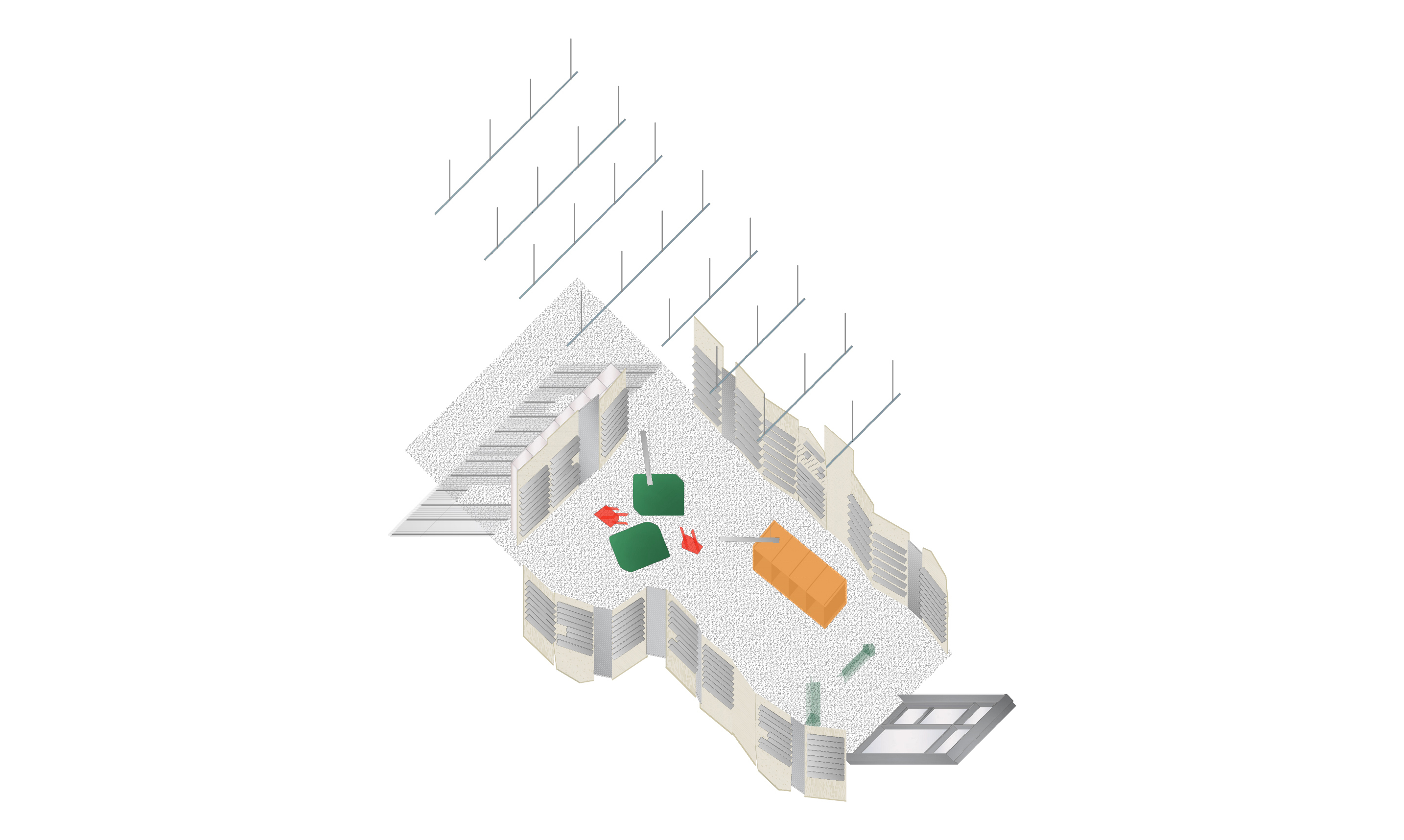Priestor staviame na vložených paneloch. Panely vnímame ako kulisu ktorú môžeme meniť a zároveň aplikovať v ďalších nových prevádzkach, no zároveň je možné už existujúcu prevádzku recyklovať v iných priestoroch jej novým usporiadaním. Vytvárame jednotný architektonický, priestorový vizuálny element a jazyk pre všetky budúce kamenné predajne Eyerim.
