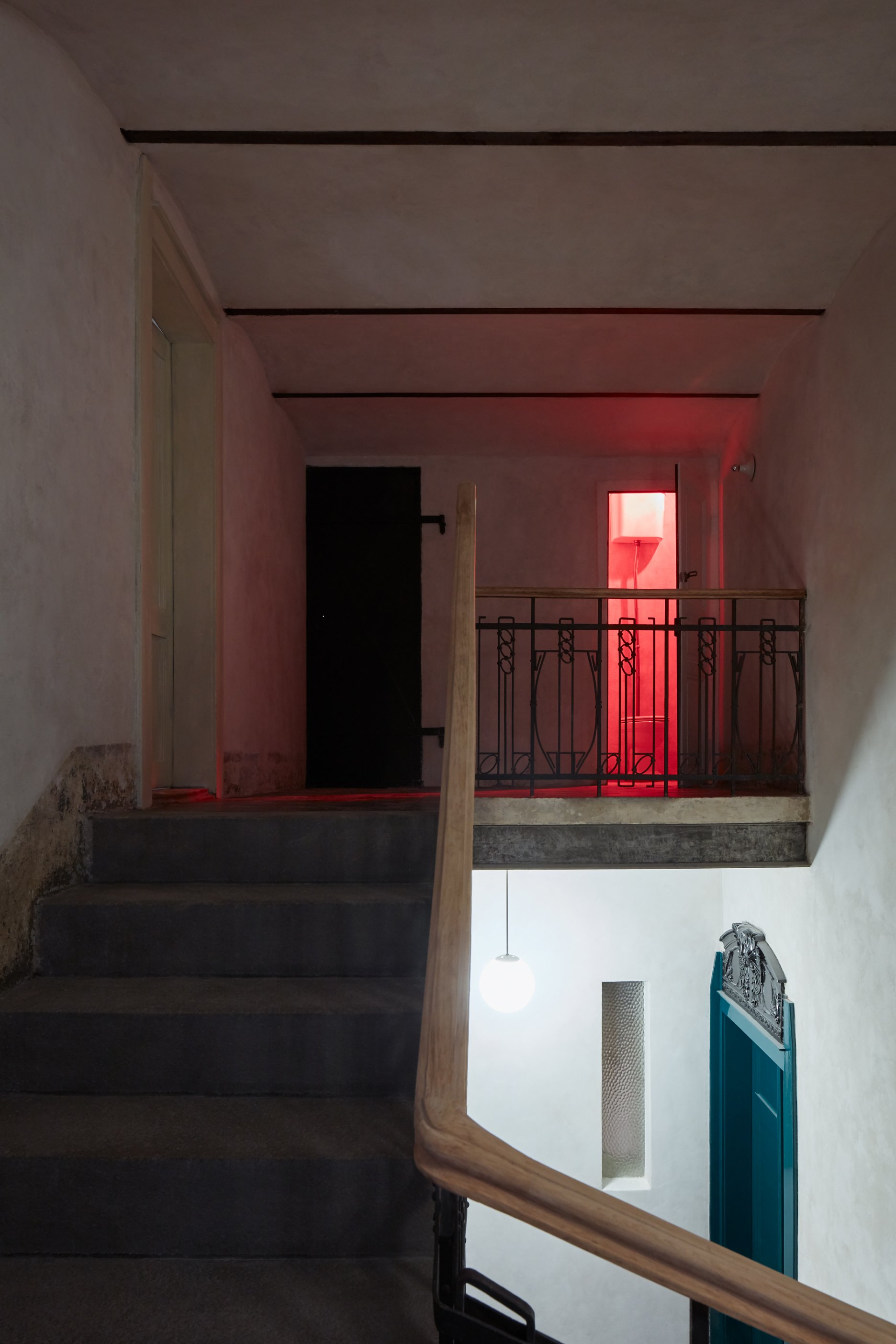 “Práčovňa” je súčasťou projektu, v rámci ktorého bolo prestavaných 13 bytov v secesnom činžovom dome v centre Prahy na krátkodobý prenájom, zážitkové pobyty a výstavy. Každý byt má inú atmosféru, podmienkou bolo zachovanie historických kvalít priestoru. Bývalá podkrovná práčovňa je štylizovaná ako “ateliér básnika”. Zaujímavé zadanie, pri ktorom mali architekti možnosť voľne interpretovať a narábať s historickou esenciou stavby.