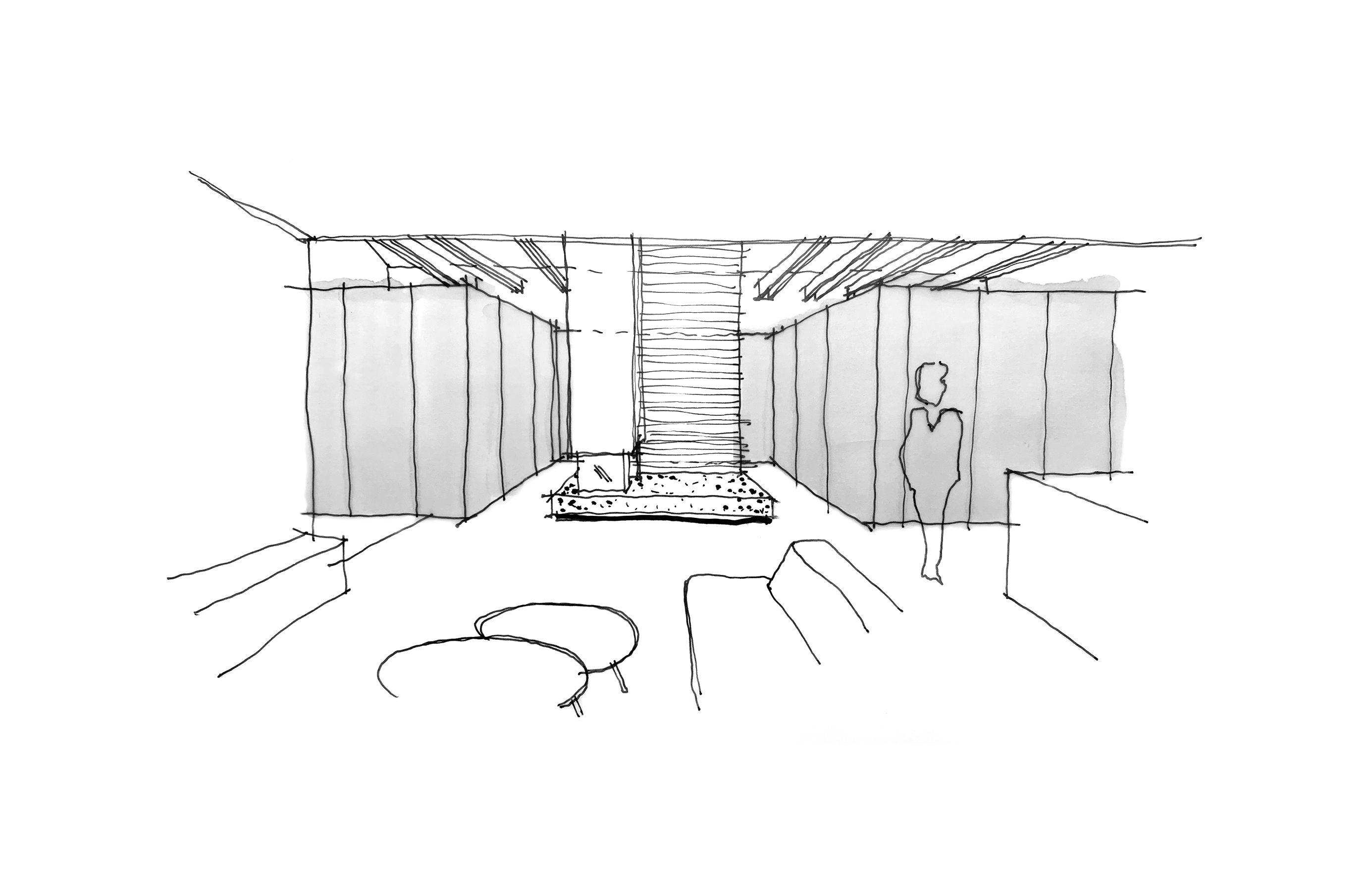 Premena konvenčného priestoru s utilitárnou dispozíciou v nadstavbe bytového domu z roku 1933 na komfortný, veľkorysý staromestský byt si vyžiadala rozsiahle zásahy do takmer všetkých jeho stavebných konštrukcií. Architektonická koncepcia prestavby bytu stojí na štyroch základných myšlienkach, ktorými sú (1) leitmotív centrálneho krbu a komína, (2) atmosféra vzdušného podkrovného bytu, (3) prirodzené denné svetlo a (4) vstavby hygienických a úložných priestorov.