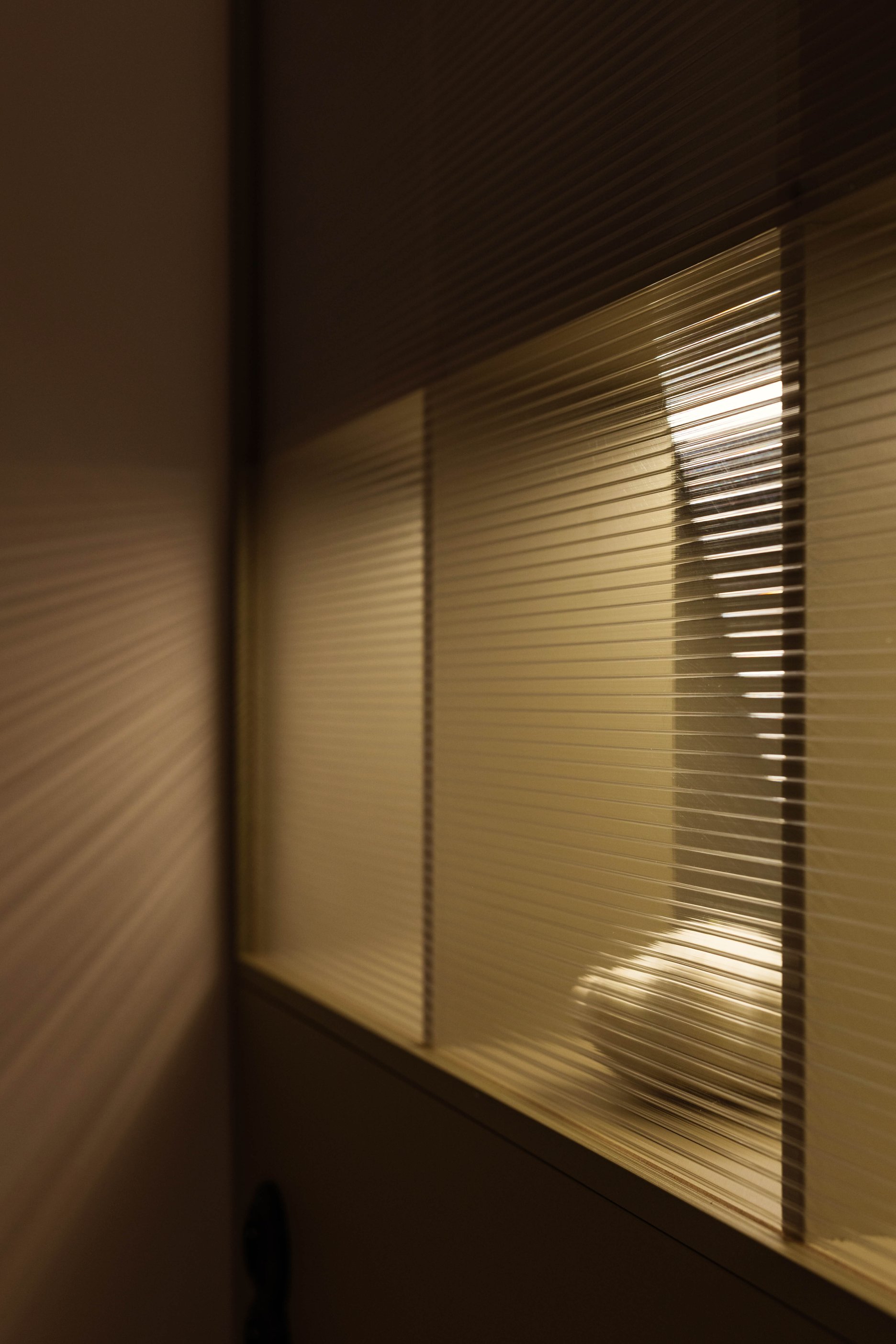 okrem funkčného osvetlenia sme sa zamerali aj na ambientne podsvietenie - zelený box je podsvietený zhora aj zdola, čím sa zdôrazňuje jeho dominantné postavenie v priestore. Podsvietenie integrované v skrini funkčne dostáva svetlo tam kde ho potrebujeme.