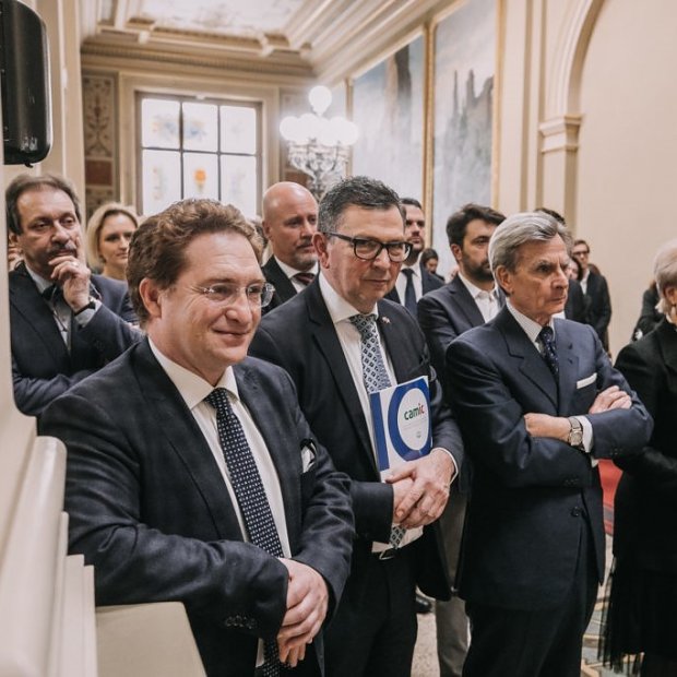 Členov privítal taliansky veľvyslanec J.E. Francesco Saverio Nisio a predseda komory Gianfranco Pinciroli. „Chceli sme si pripomenúť 30 rokov od návratu demokracie a otvorenia ekonomiky, čo je od roku 1990 znova súčasťou európskeho a svetového systému“, uviedol predseda Pinciroli s tým, že tento rok plánuje Komora mnoho akcií. Počas večera vystúpil aj súčasný riaditeľ Knihovne Václava Havla, Michael Žantovský so spomienkami a úvahami.