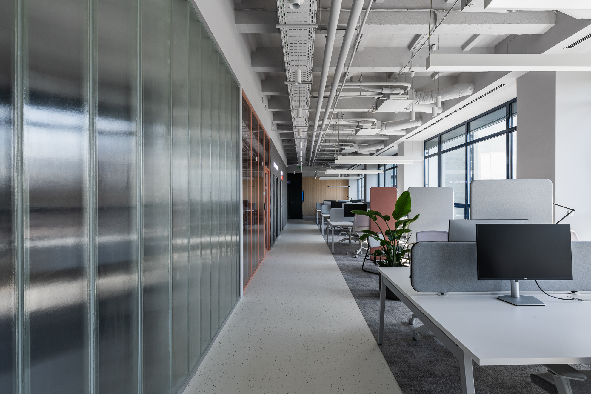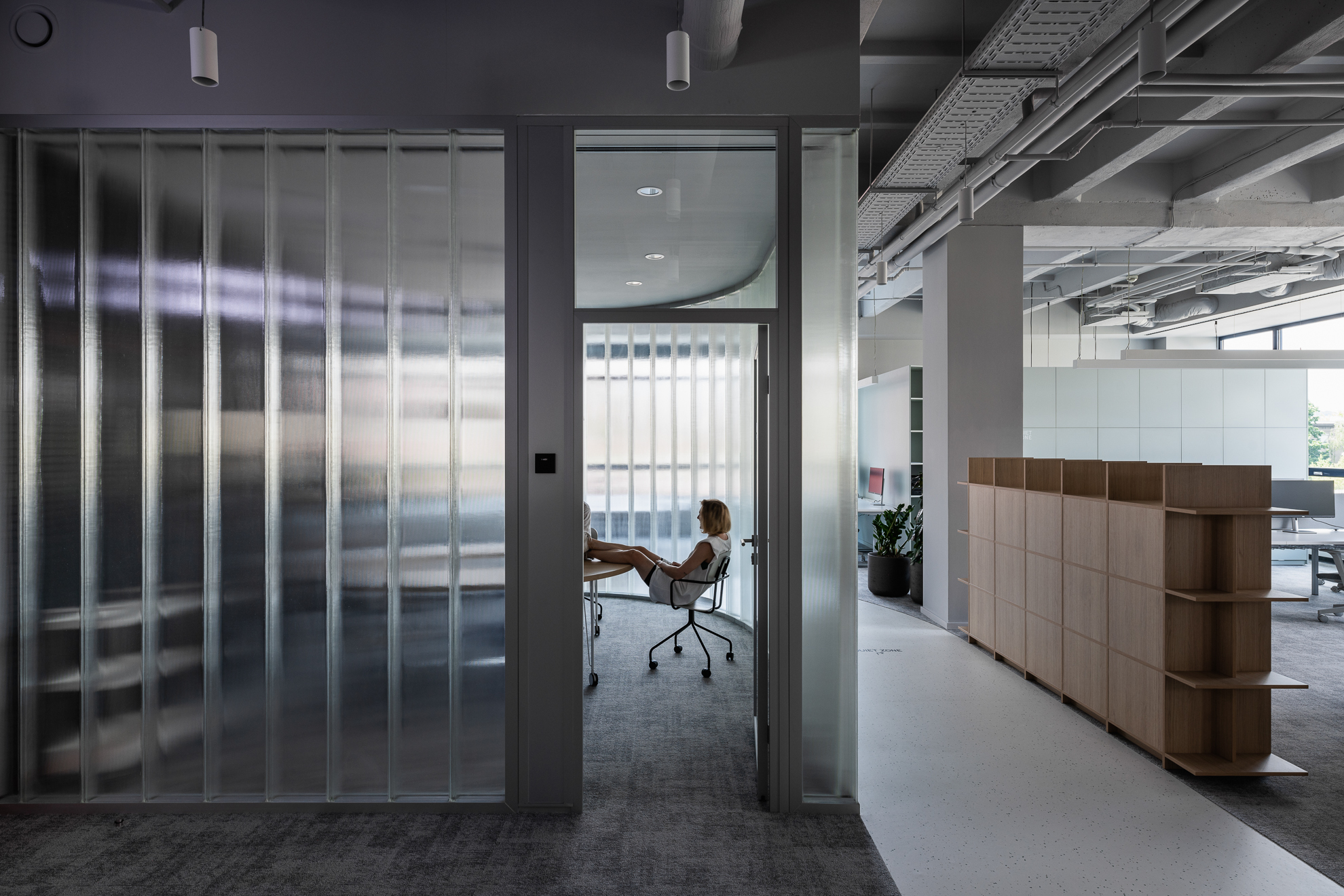 Open space určený najmä na sústredenú prácu, je predeľovaný boxami, ktoré z funkčného hľadiska vyžadujú uzavreté priestory a taktiež tvoria odhlučnenie medzi jednotlivými oddeleniami. Vďaka členeniu priestoru „vloženými boxami“ namiesto klasických priečok po strop pôsobia kancelárie odľahčene a vzdušne.