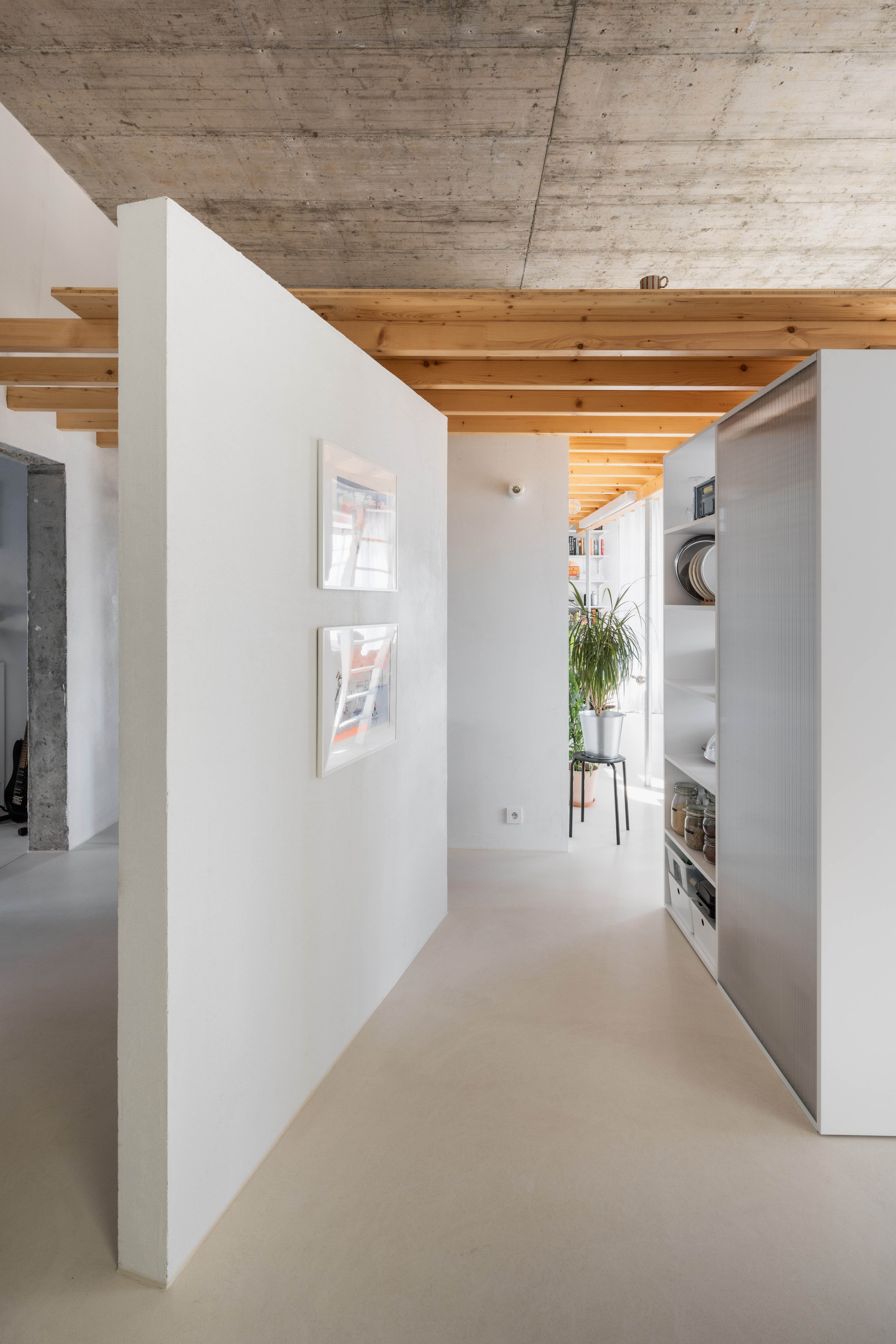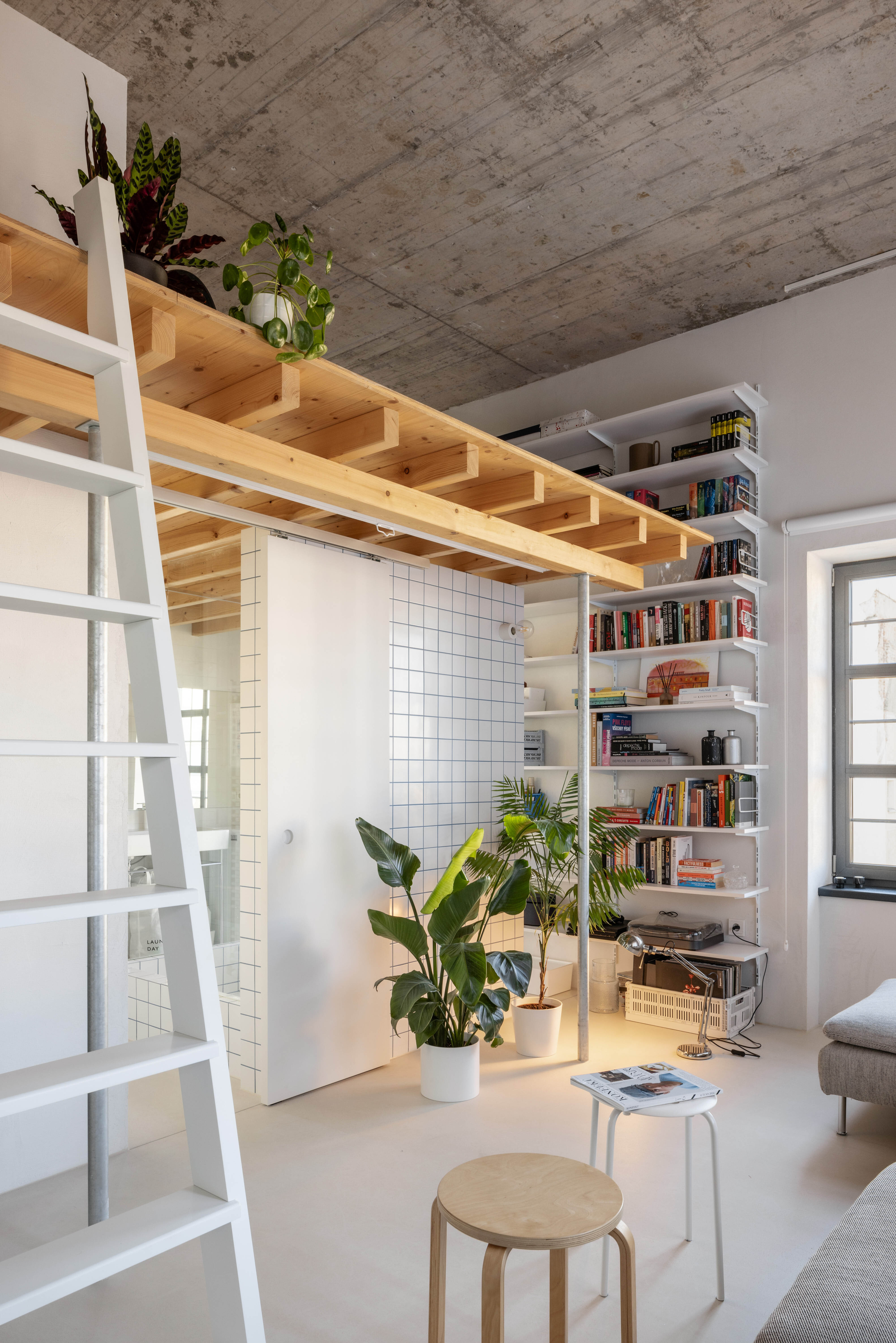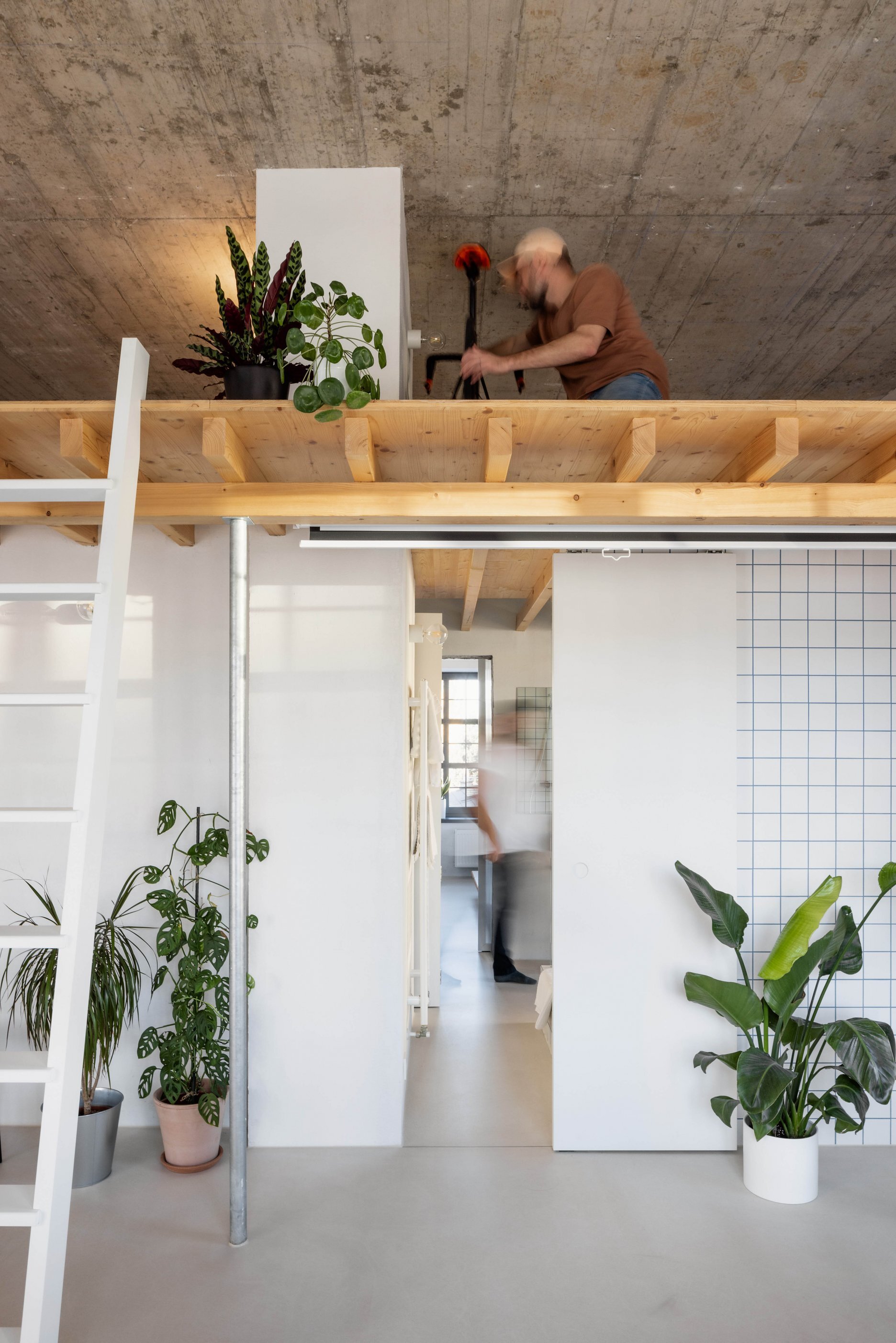 Vytvárame krajinu priestorov a medzipriestorov. Pracujeme s výškou - pridávame druhú úroveň - plato. Zväčšujeme byt o vyše 16m2 pobytového priestoru. Bavia nás hry intimity a otvorenosti, svetla a tieňa, momenty prekvapenia. Keď nevieme čo nás čaká za rohom, alebo pri odsunutí dverí, či odtiahnutí závesu. Práca s proporciou - čo stačí a čo už je veľa, alebo málo. Čo sa stane keď sa prešuchnem tadiaľto...