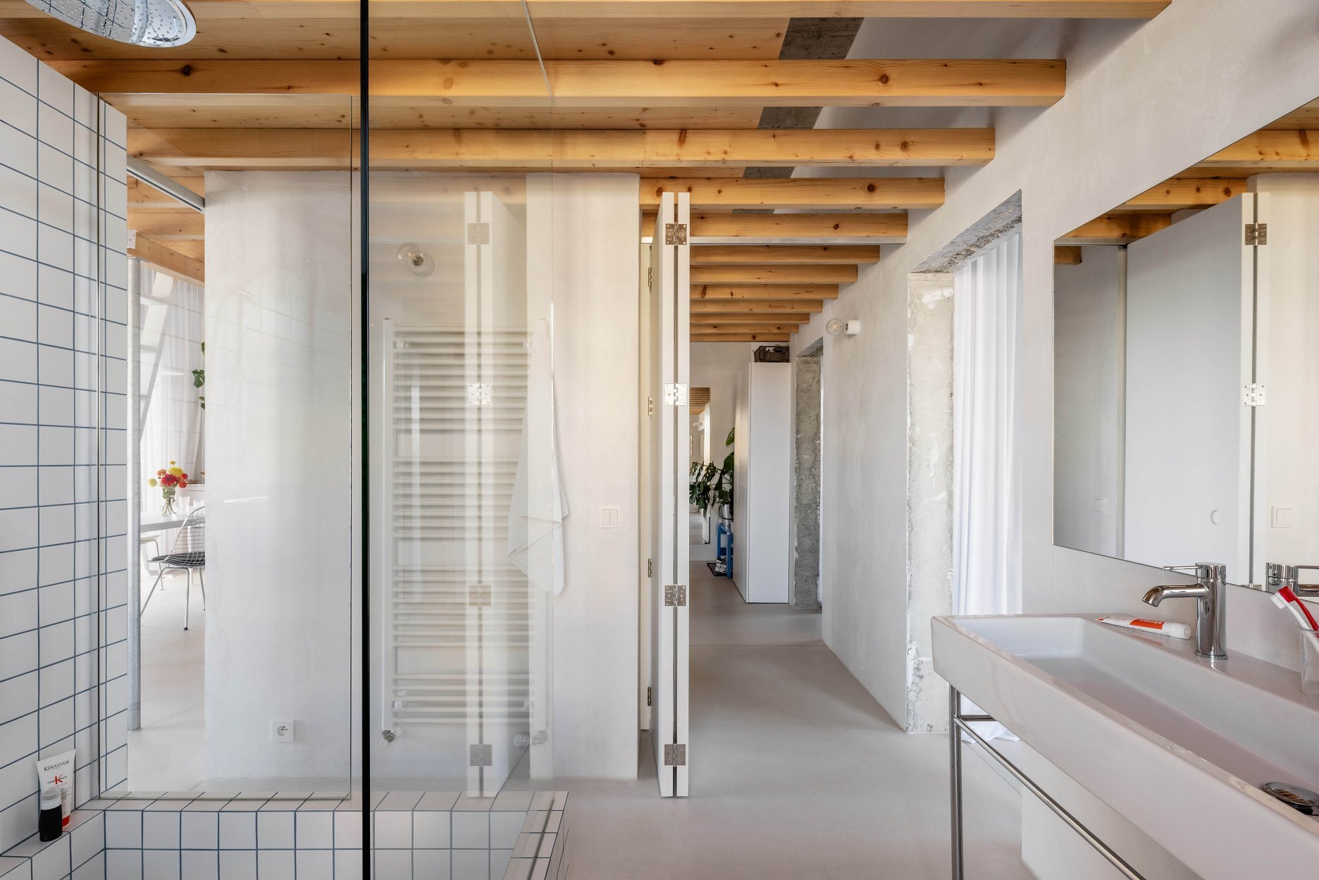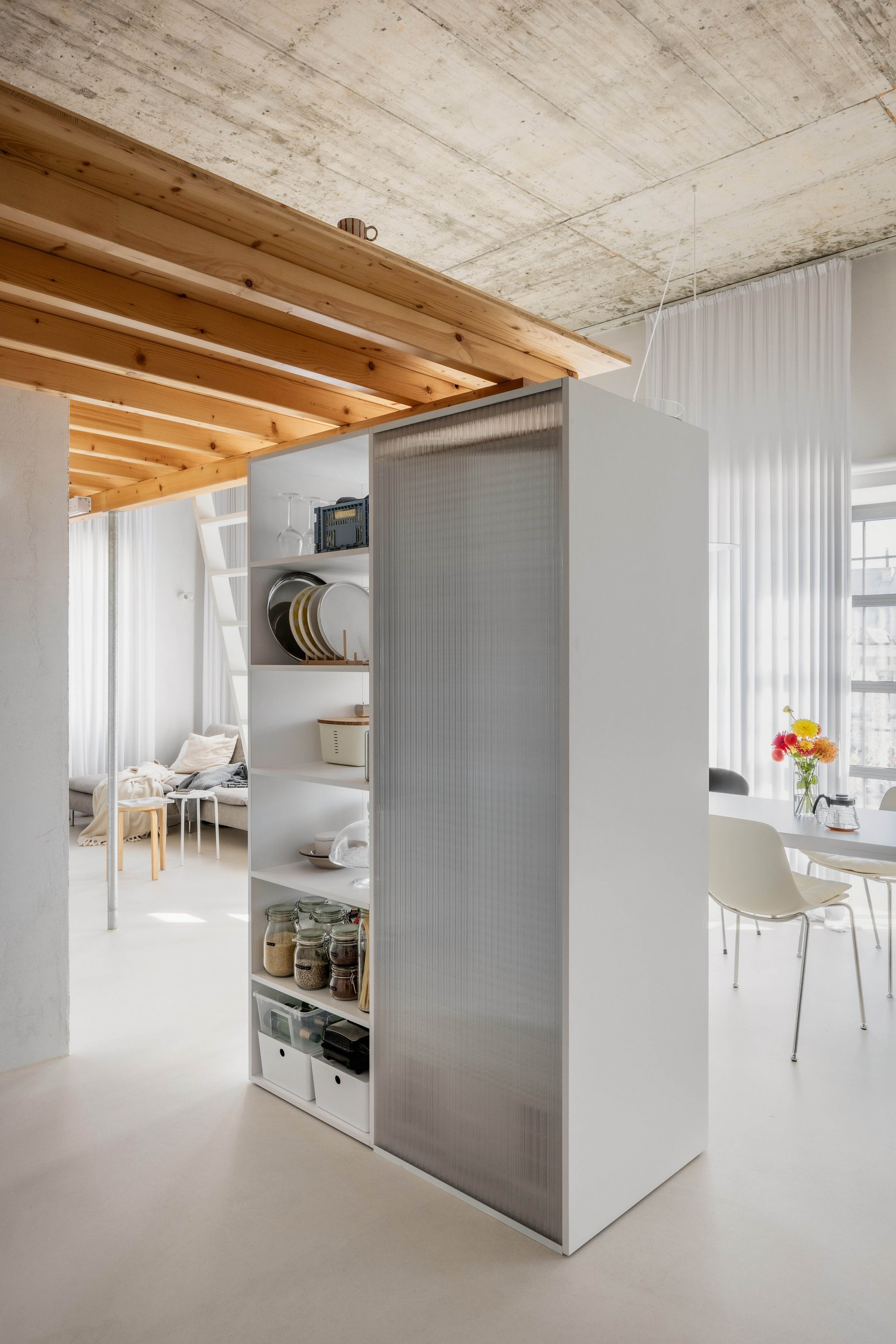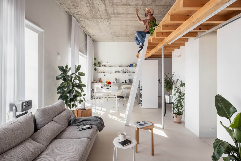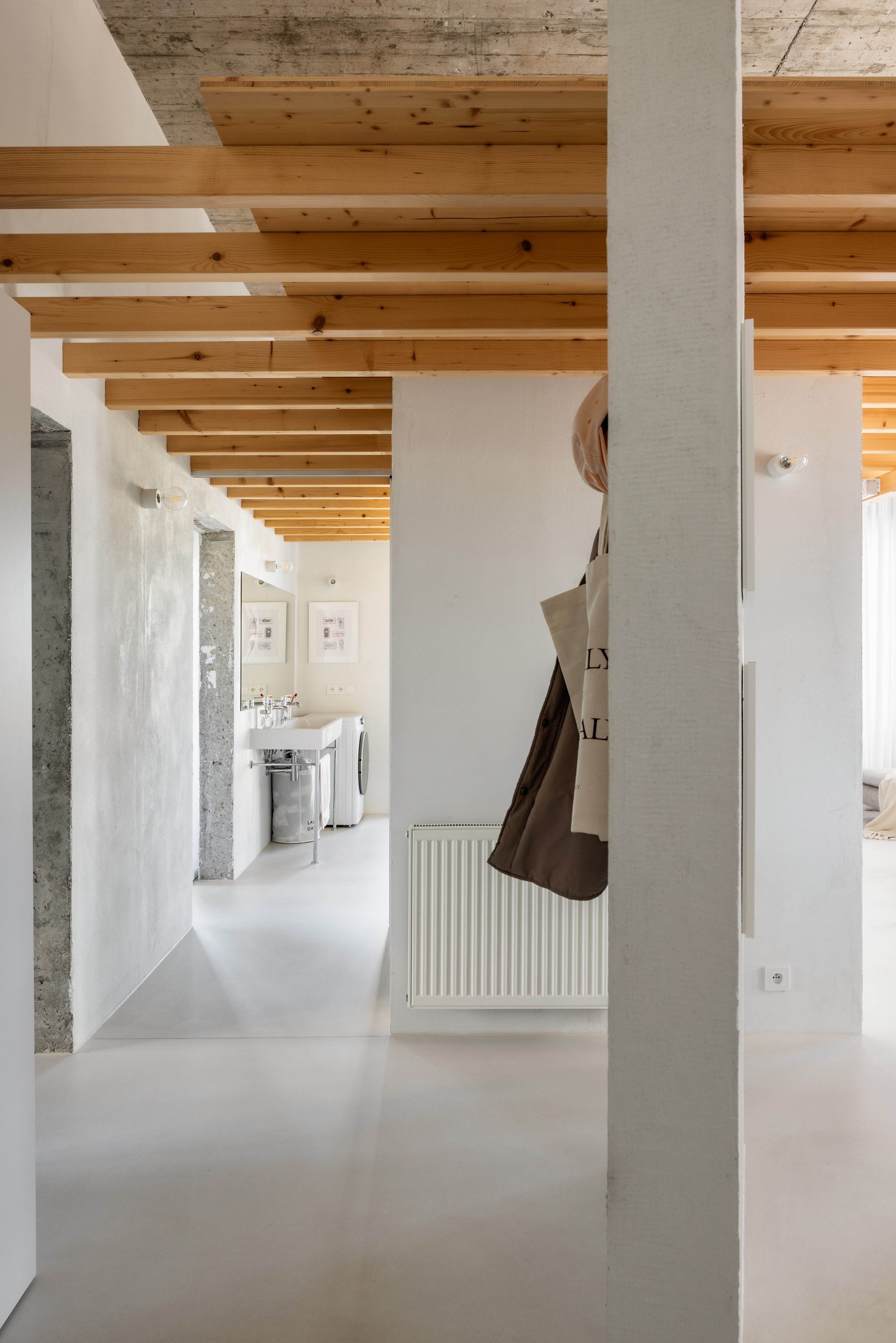 Vytvárame krajinu priestorov a medzipriestorov. Pracujeme s výškou - pridávame druhú úroveň - plato. Zväčšujeme byt o vyše 16m2 pobytového priestoru. Bavia nás hry intimity a otvorenosti, svetla a tieňa, momenty prekvapenia. Keď nevieme čo nás čaká za rohom, alebo pri odsunutí dverí, či odtiahnutí závesu. Práca s proporciou - čo stačí a čo už je veľa, alebo málo. Čo sa stane keď sa prešuchnem tadiaľto...