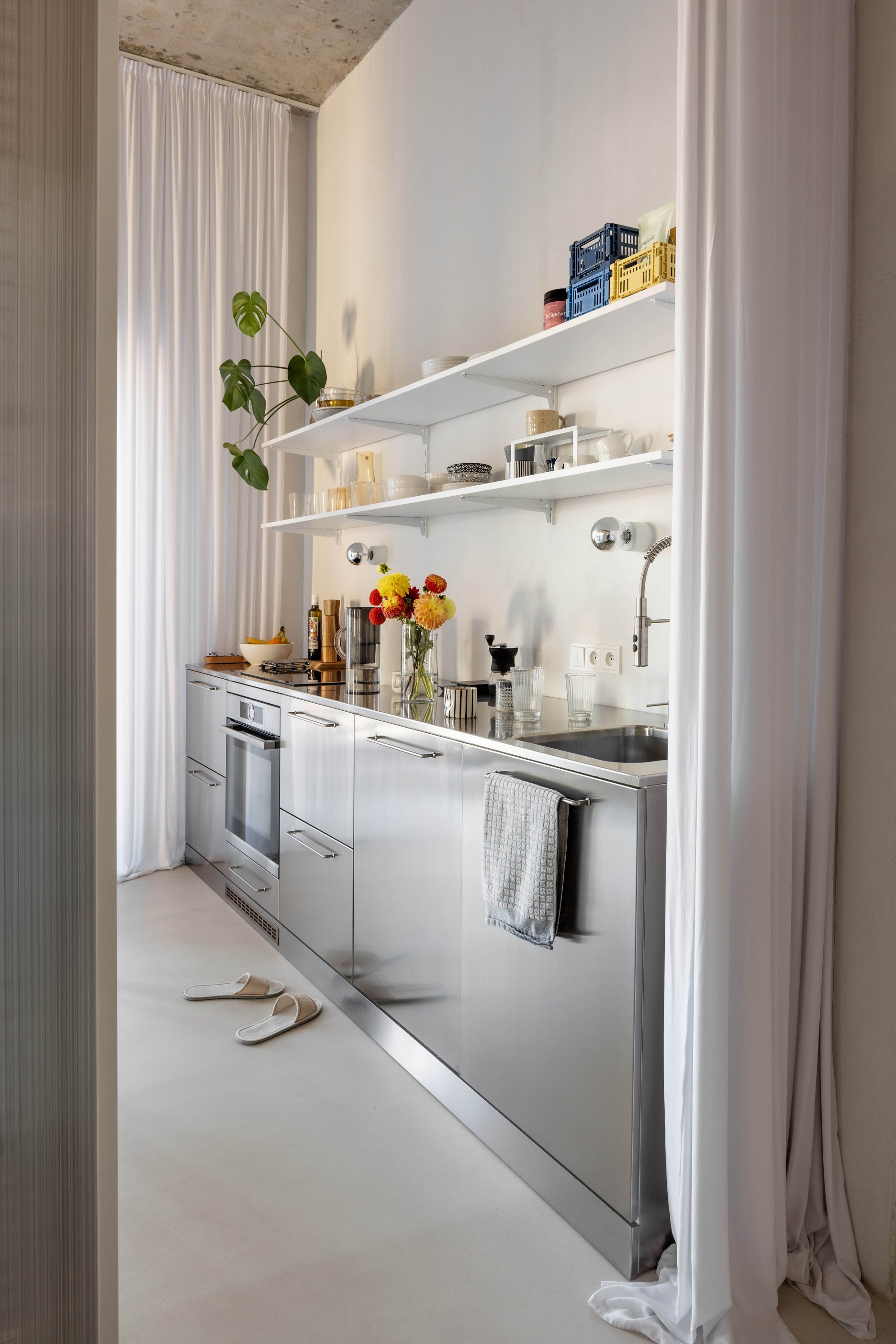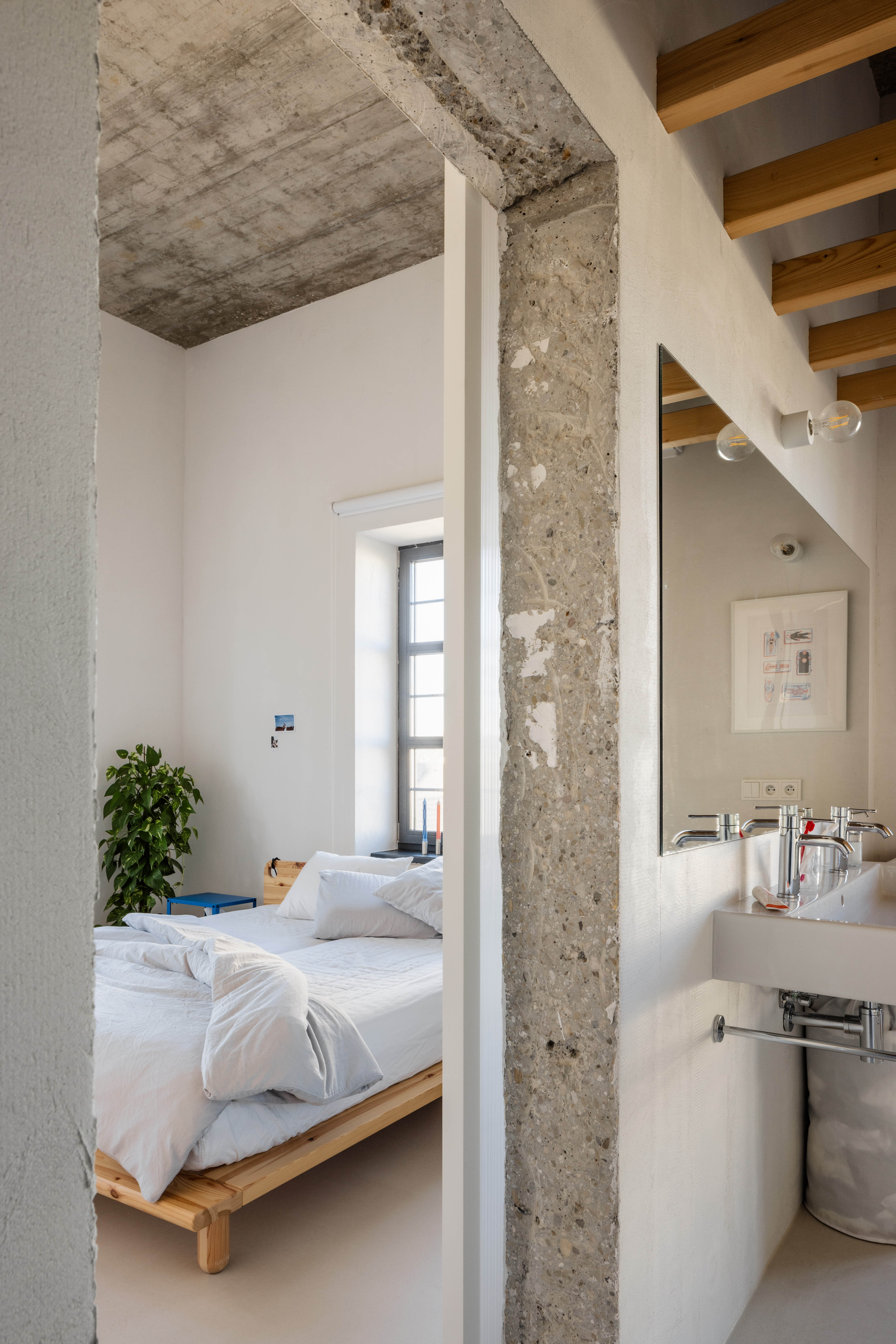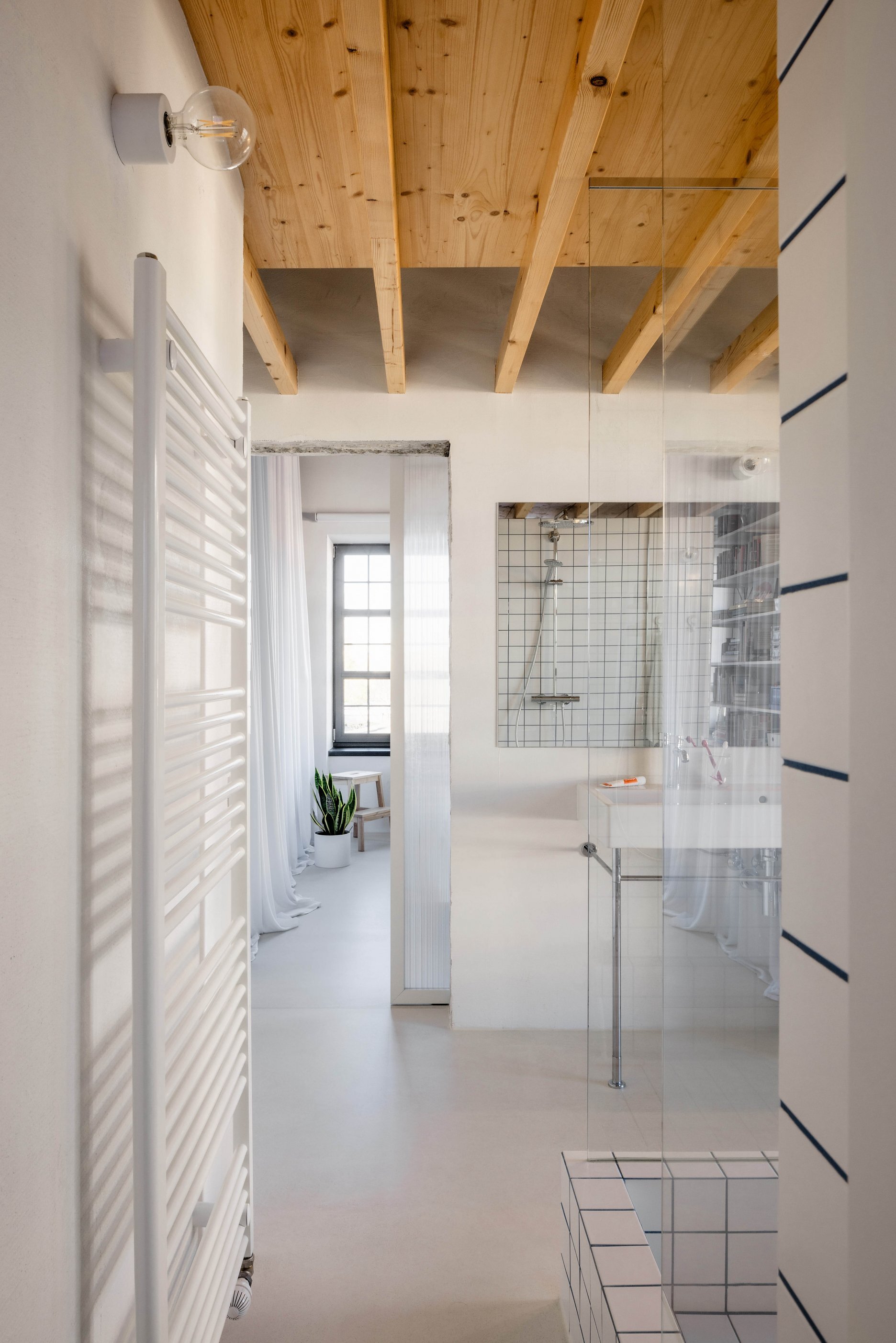 Stropy vysoké takmer 3,5 metra, orientácia bytu do troch strán, no napriek tomu štandardná developerská dispozičná schéma v inak unikátnom projekte. Návrh “debariérizuje” priestor a zbavuje ho tmavých, dlhých chodieb vo vnútri dispozície.