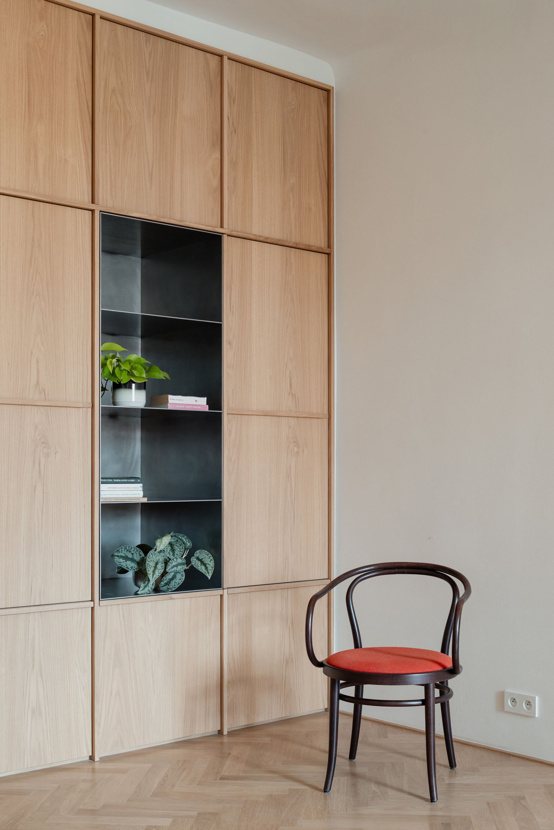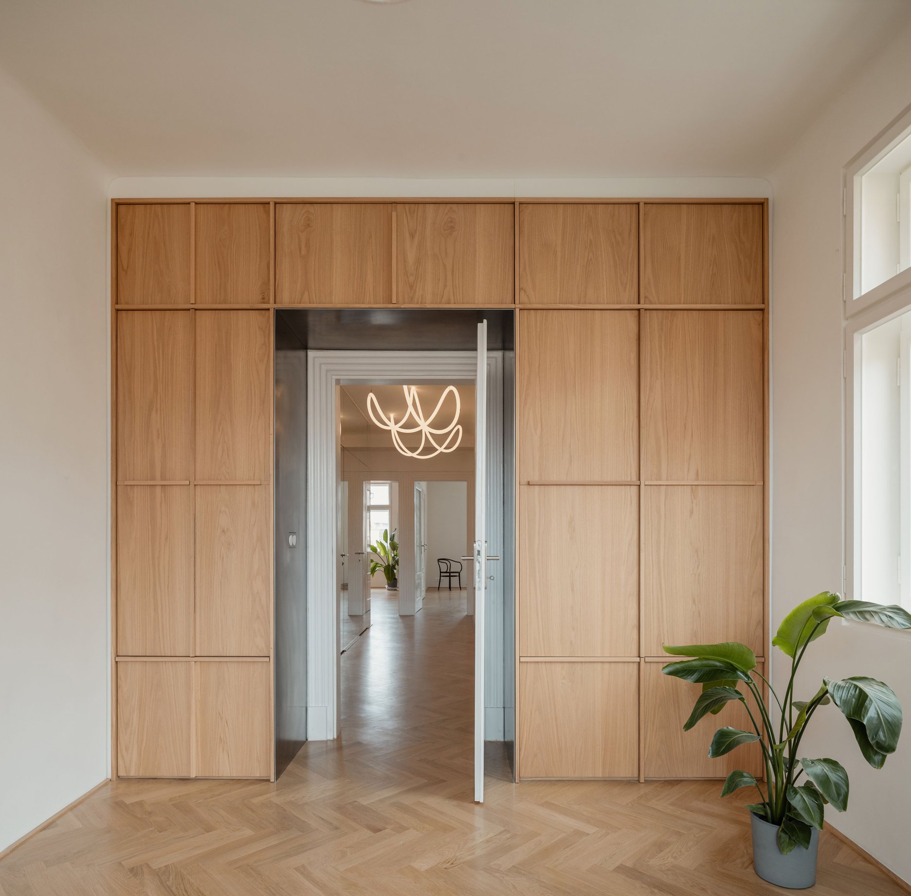 Rekonštrukcia prvorepublikového bytu z dielne ateliéru AOSI sa zameriava na obnovu pôvodnej atmosféry s dôrazom na historické detaily a solídnu materialitu nových prvkov.