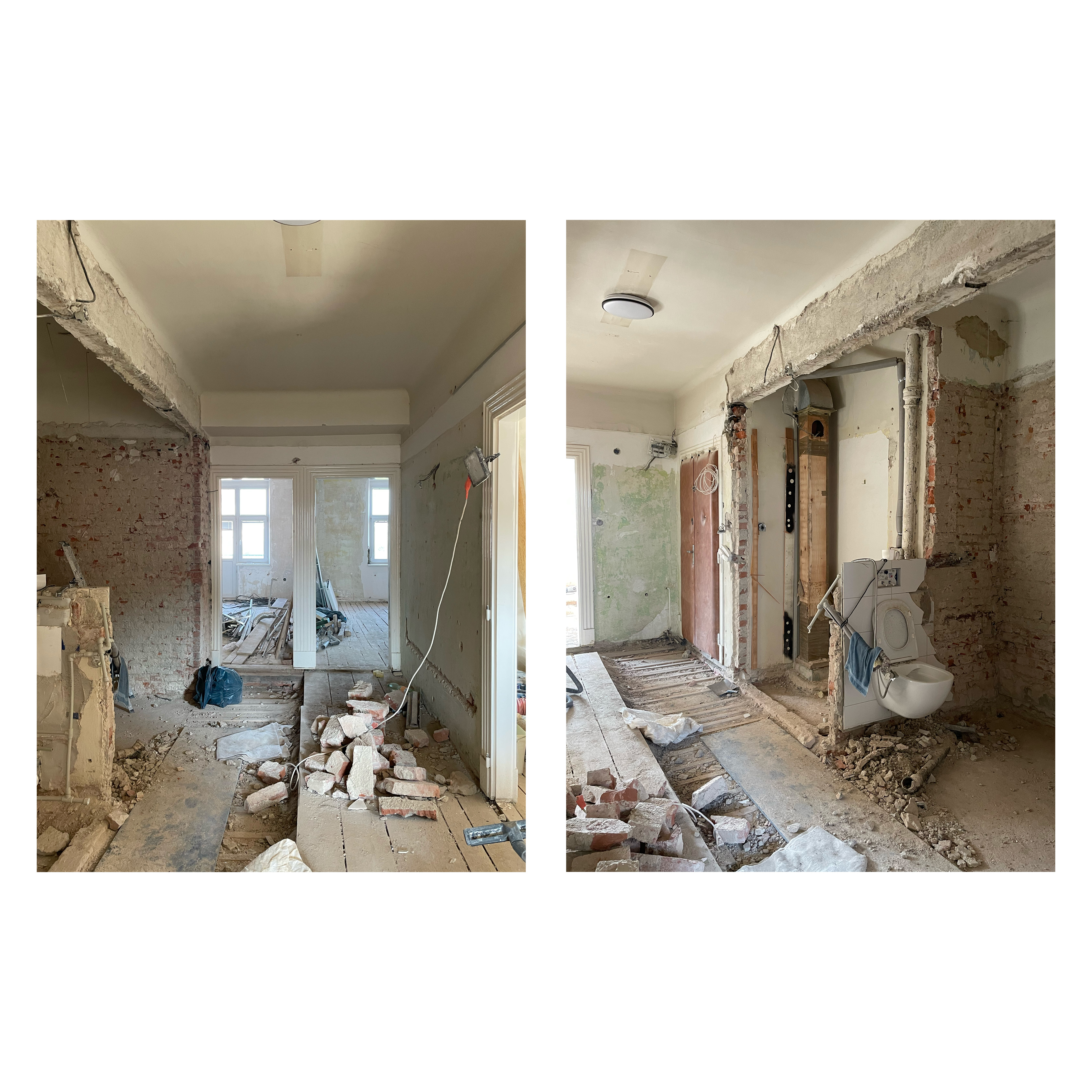 Jedným z cieľov návrhu bola obnova pôvodnej atmosféry bytu v kombinácii so súčasnými remeselnými riešeniami. Tie zahŕňajú výmenu plastových okien za drevené, renováciu zdobených zárubní a návrat drevených parkiet, ktoré prechádzajú celým bytom bez prahov.