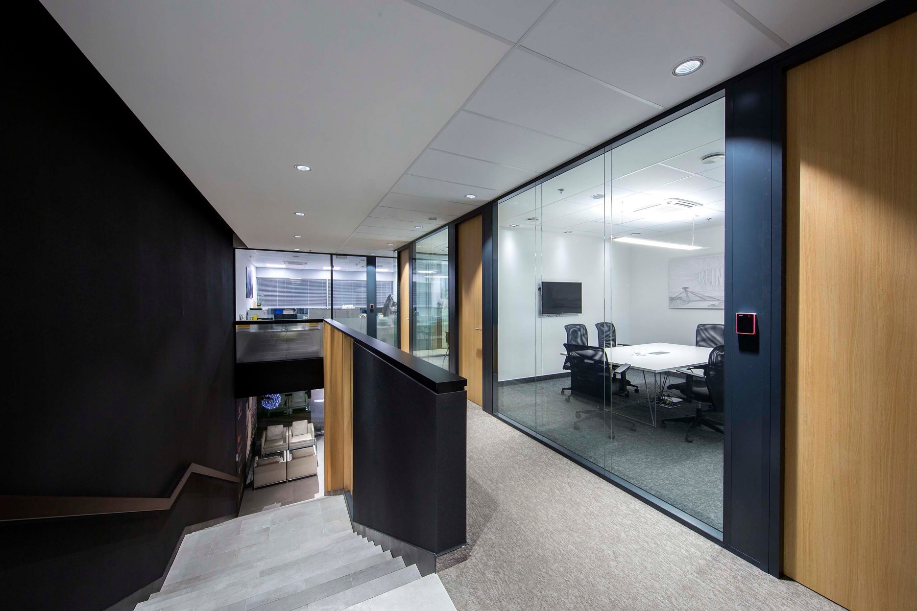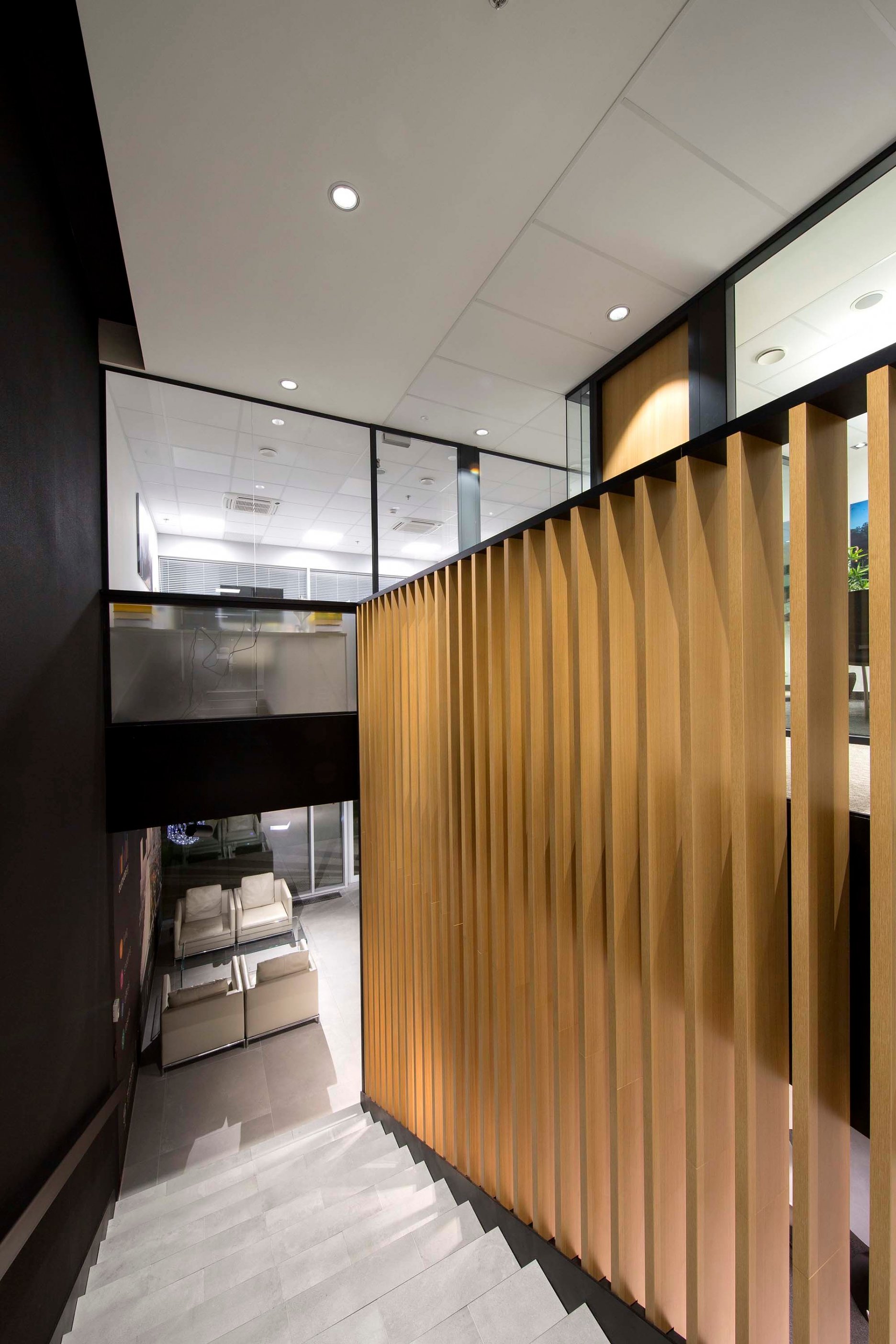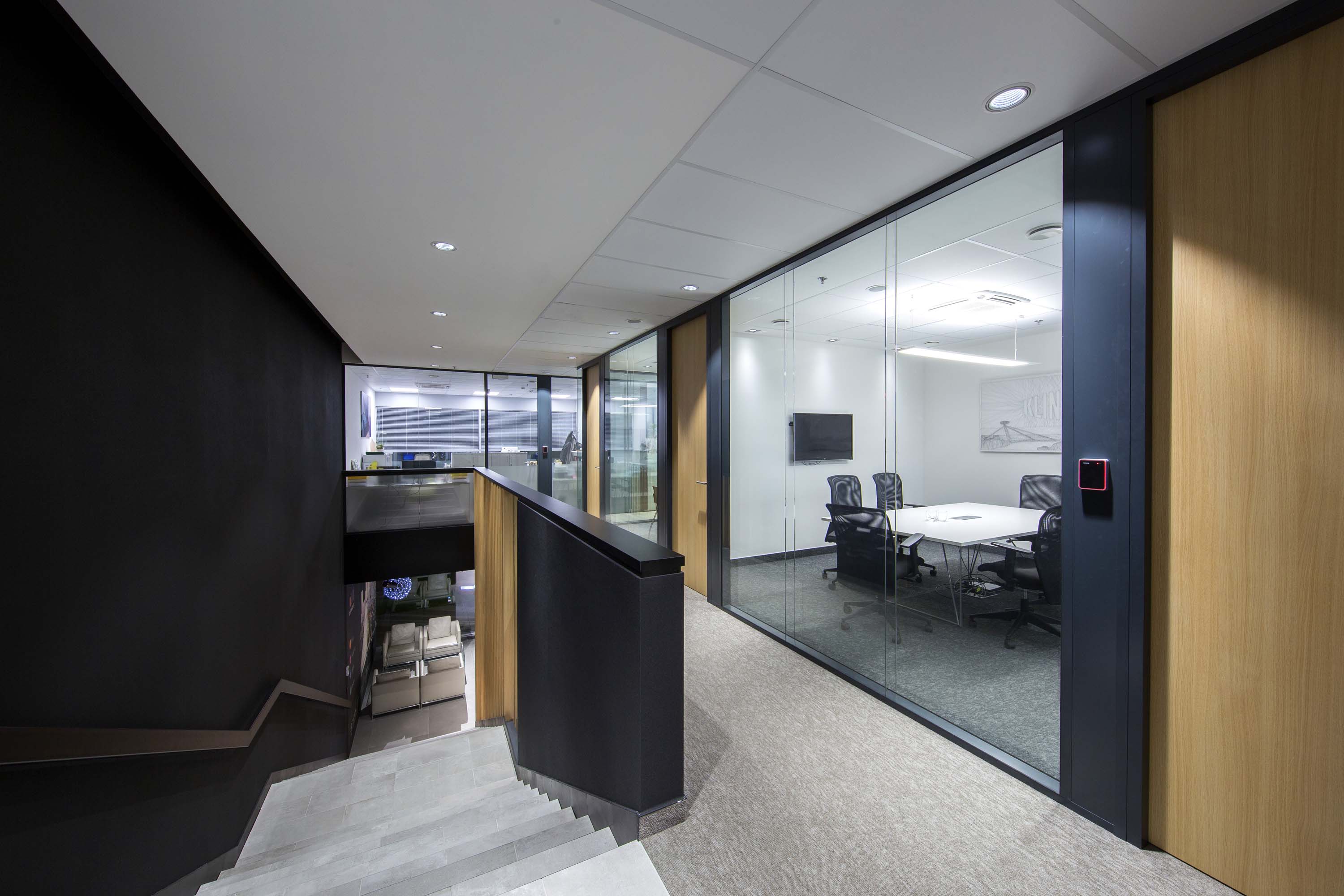 Poschodie svojim pragmatickým stvárnením zodpovedá funkcii. Kancelárie a zasadčky sú oddelené systémovými presklenými stenami. Farebnosť a materiálové riešenie striedmo odkazuje na prepojenie oboch priestorov.