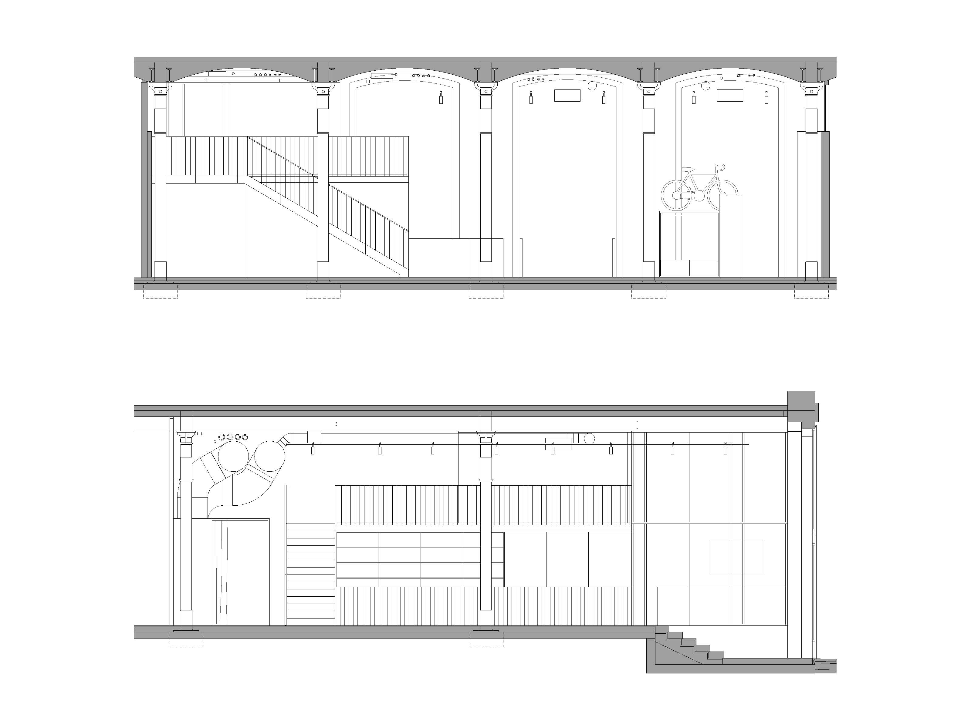 Celistvé vnímanie halového priestoru umocňujú priehľadné a priesvitné deliace konštrukcie, umiestnené len v prevádzkovo nutných miestach. Subtílne rámy zasklenia odkazujú na členenie pôvodných výplní fasády.