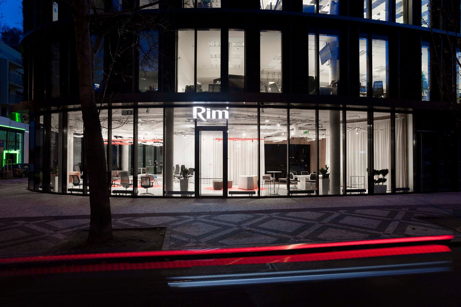 Na sklonku roka 2018 otvoril český výrobca kancelárskeho nábytku svoj nový showroom v Prahe. RIM sa sem sťahoval z pôvodných priestorov na pražských Vinohradoch, spoločnosť sa pre zmenu lokality rozhodla najmä z dôvodu plánovaného rozšírenia výstavnej plochy. Návrh showroomu zverilo vedenie firmy do rúk ateliéru VRTIŠKA & ŽÁK, s ktorým spolupracovali už pri počiatočnom výbere lokality. Spoločne vytipovali niekoľko možných lokalít a objektov, z ktorých nakoniec vyšiel víťazne rýchlo rastúci pražský Karlín a nová kancelárska budova Butterfly.