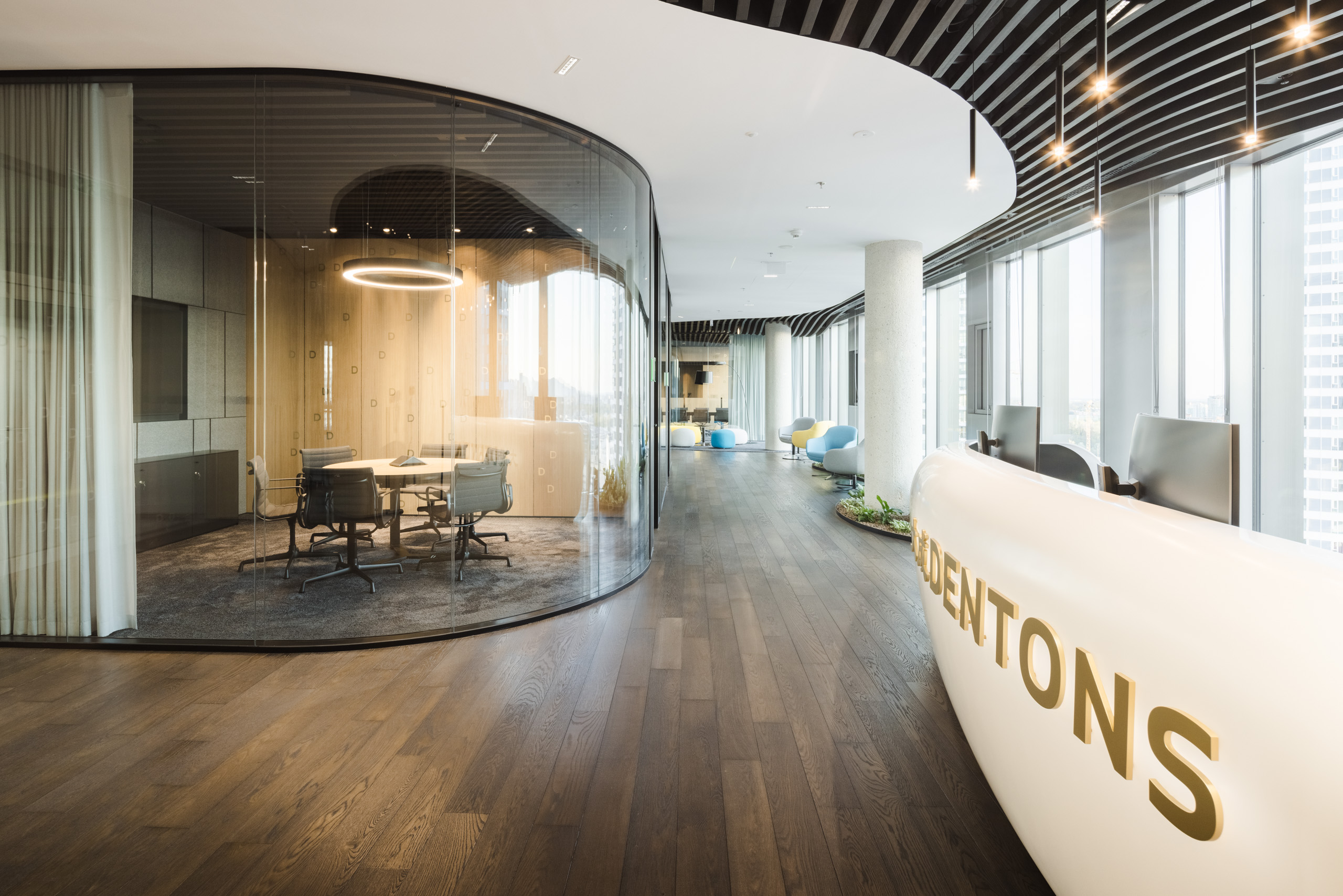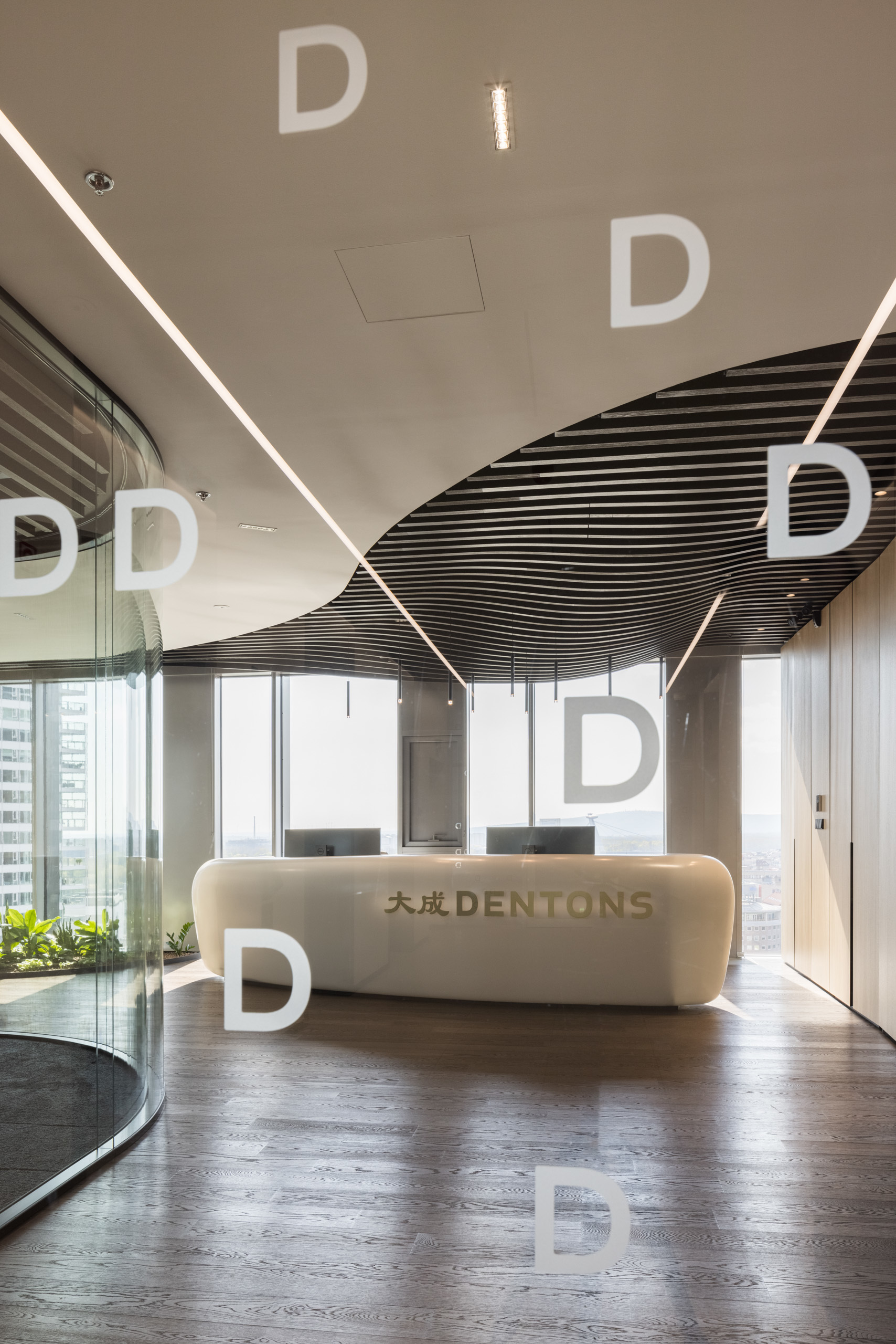 Priestory bratislavského sídla právnickej spoločnosti Dentons zaberajú celé 14. podlažie práve dokončeného objektu Sky Park Offices v novovznikajúcej štvrti Starého mesta s industriálnou minulosťou. Organizácia podlažia vychádza zo zadania klienta a jeho design reaguje na charakteristické krivky architektúry objektu.
