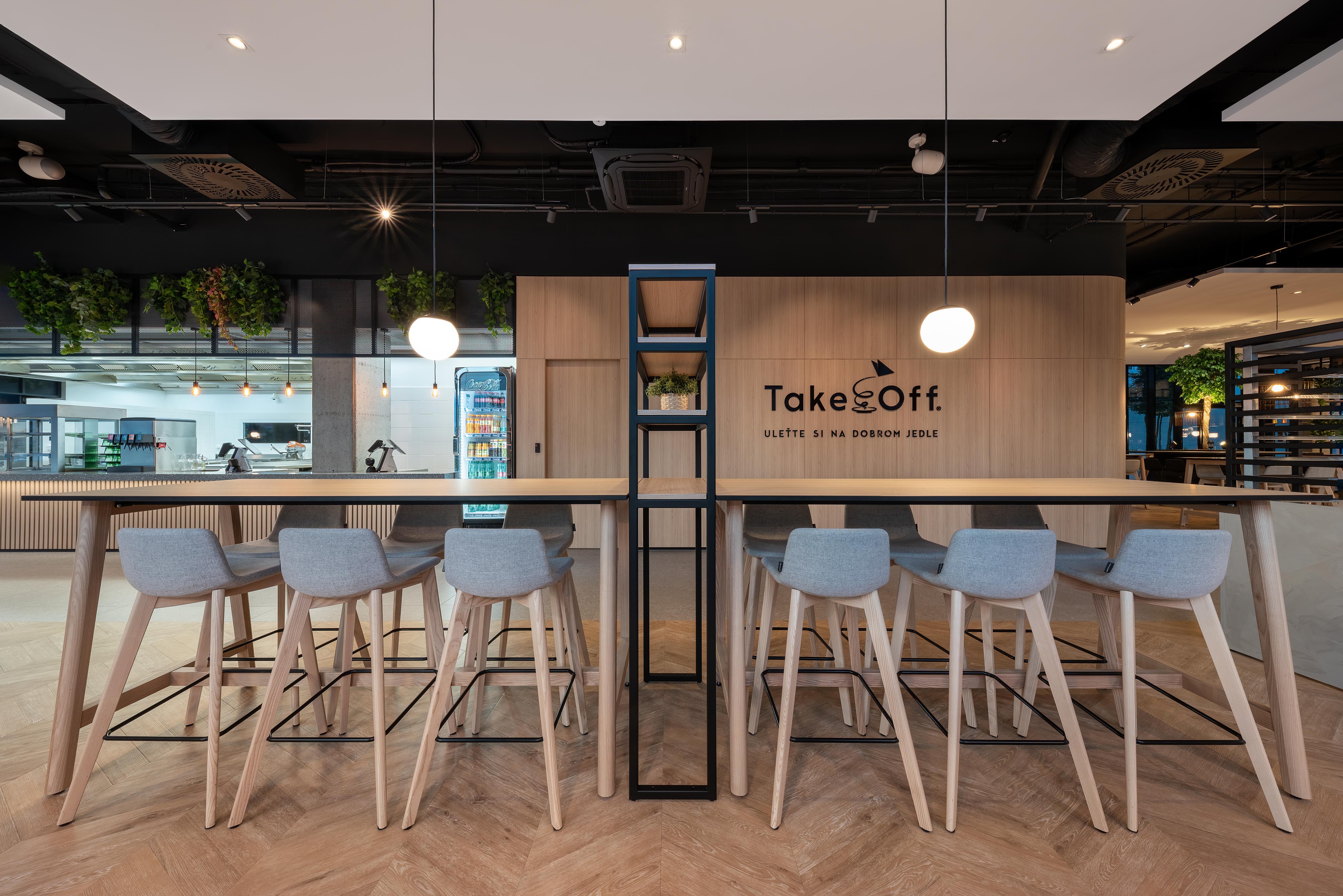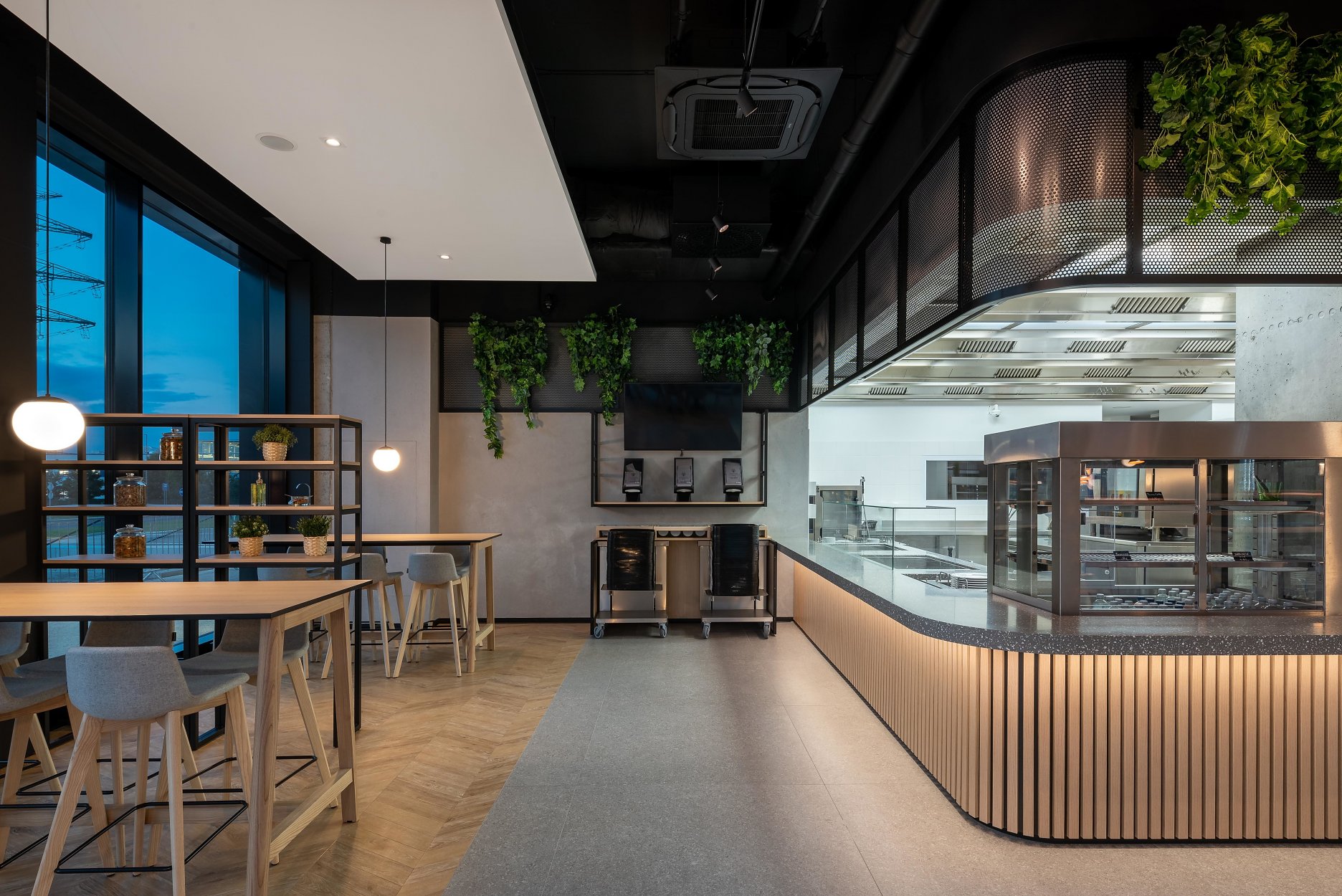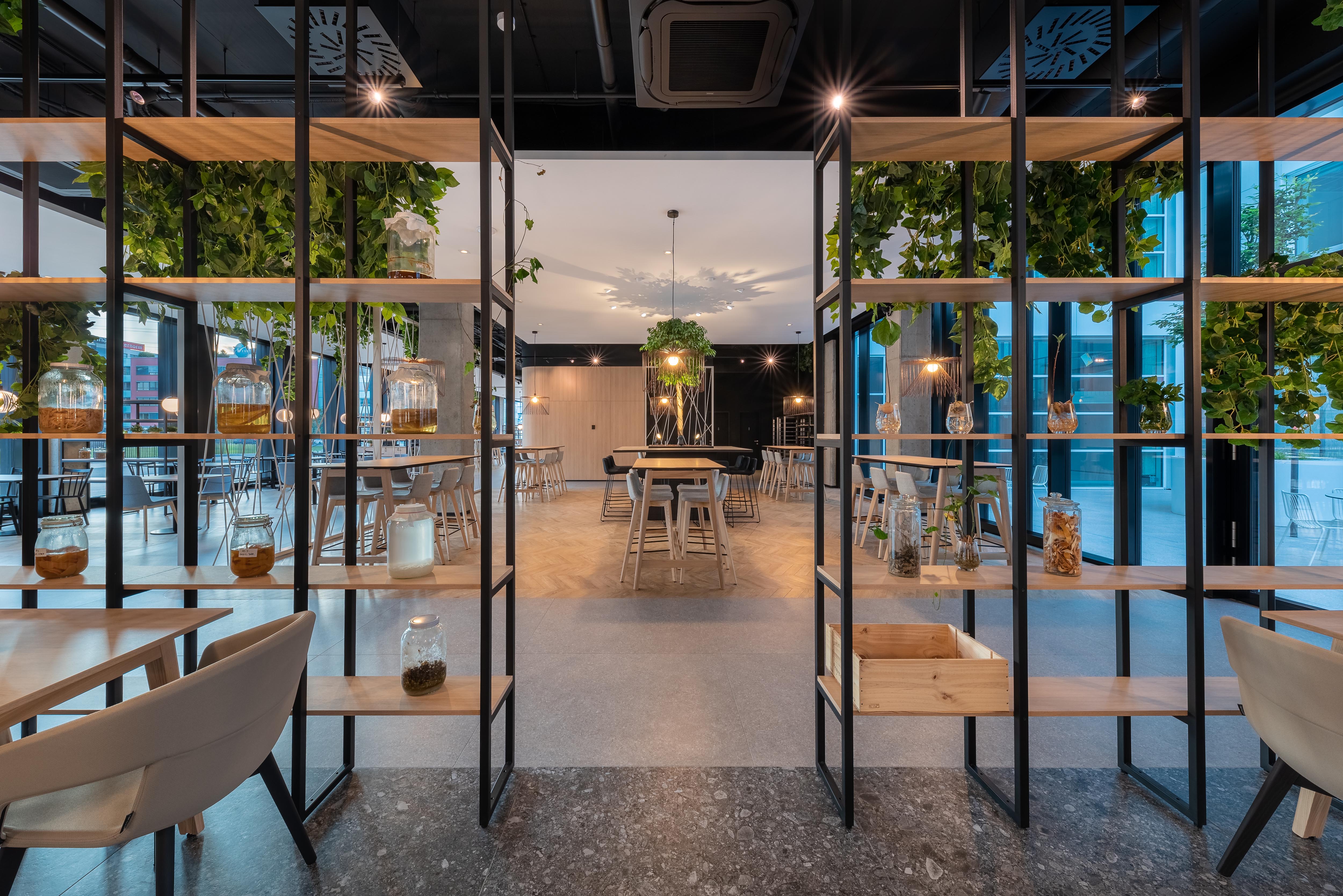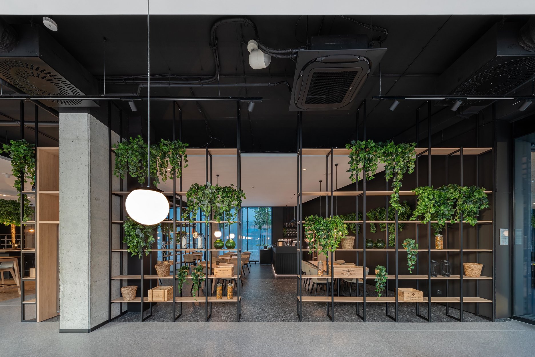 Reštaurácia a kaviareň v obchodno-administratívnej budove Galvaniho Business Center 5. Interiér s výmerou 673m² zastrešuje okrem stravovania aj rôzne eventy a pracovné akcie spojené s dobrým jedlom. Priestor je preto členený do viacerých prevádzkových zón, ktoré sú vzájomne odlíšené použitými materiálmi a povrchmi. Celková farebnosť a spoločné prvky, plynúce celým interiérom, zjednocujú zóny do prehľadného a otvoreného celku.