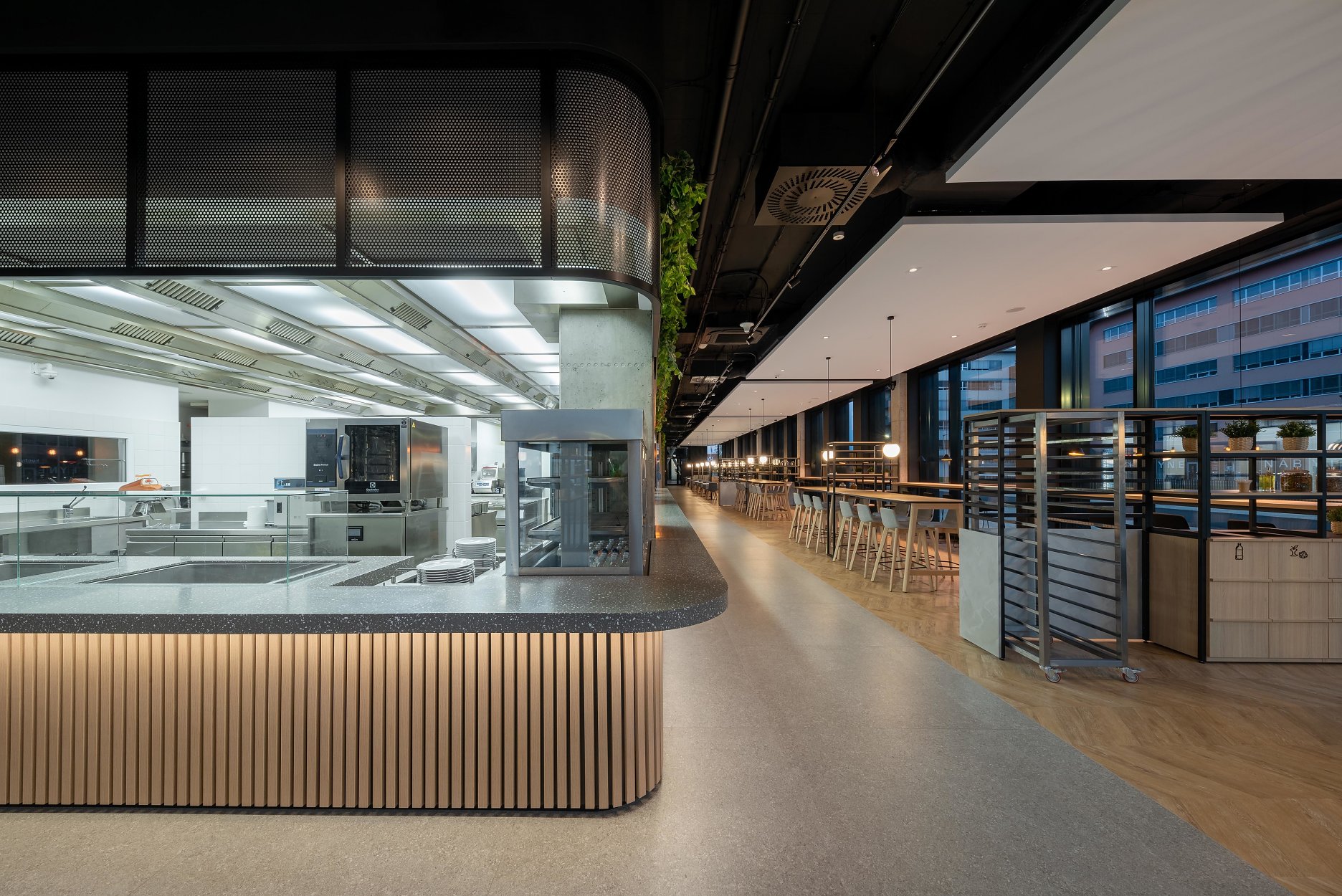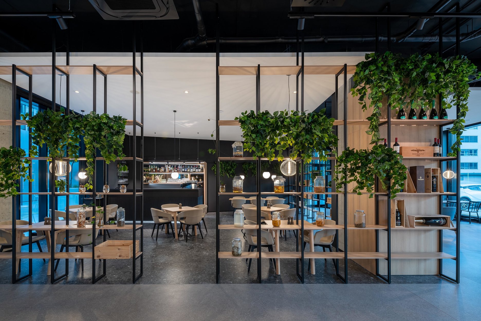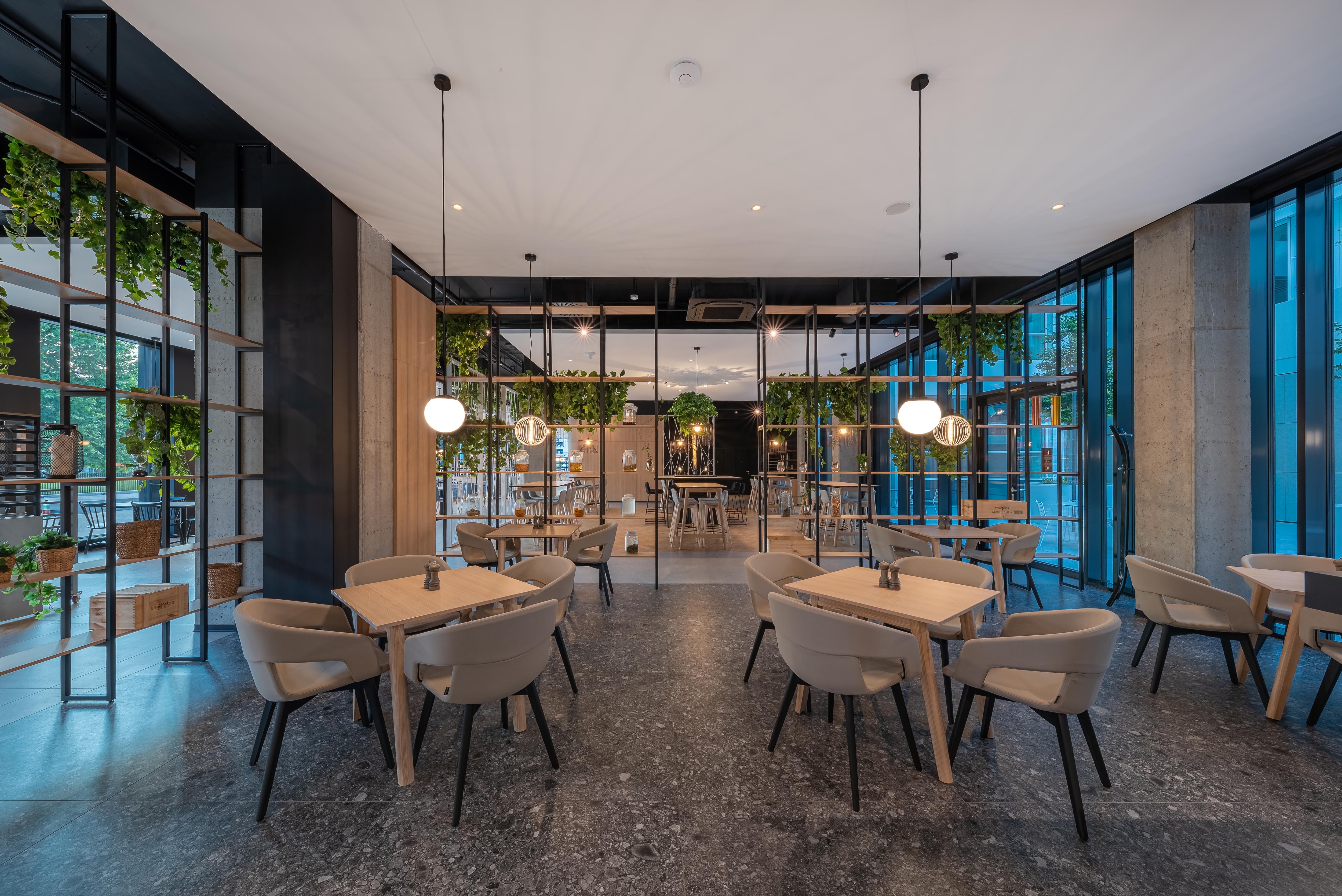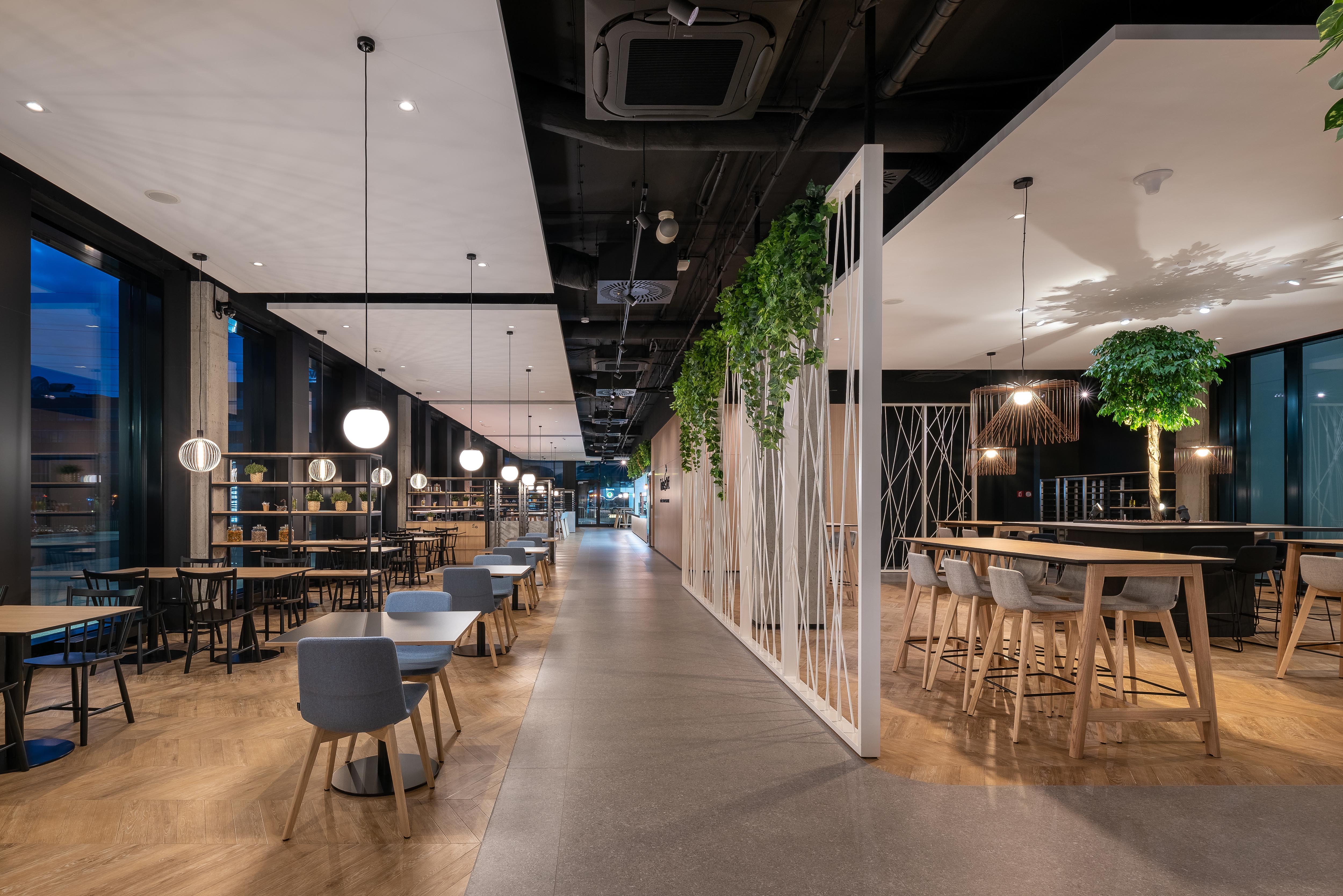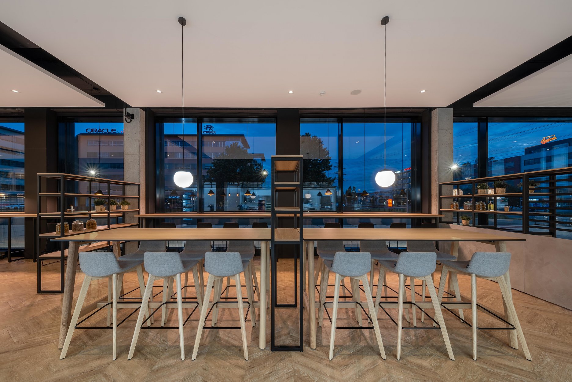 Reštaurácia a kaviareň v obchodno-administratívnej budove Galvaniho Business Center 5. Interiér s výmerou 673m² zastrešuje okrem stravovania aj rôzne eventy a pracovné akcie spojené s dobrým jedlom. Priestor je preto členený do viacerých prevádzkových zón, ktoré sú vzájomne odlíšené použitými materiálmi a povrchmi. Celková farebnosť a spoločné prvky, plynúce celým interiérom, zjednocujú zóny do prehľadného a otvoreného celku.