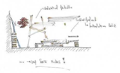 Nové inštalácie ako sú kabeláže, potrubia, reťaze, laná sú priznané. Nie sú ničím iným, ako tým čo v skutočnosti sú. Technologické zvody sú použité ako viditeľné konštrukčné detaily - určitý druh "negatívneho designu".