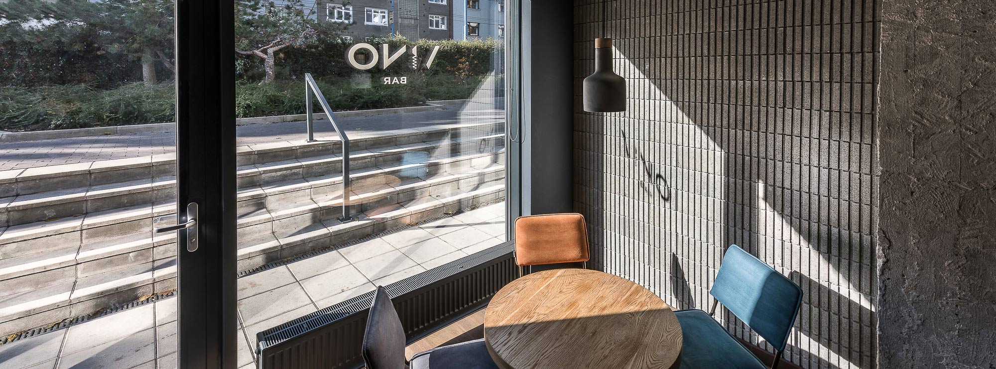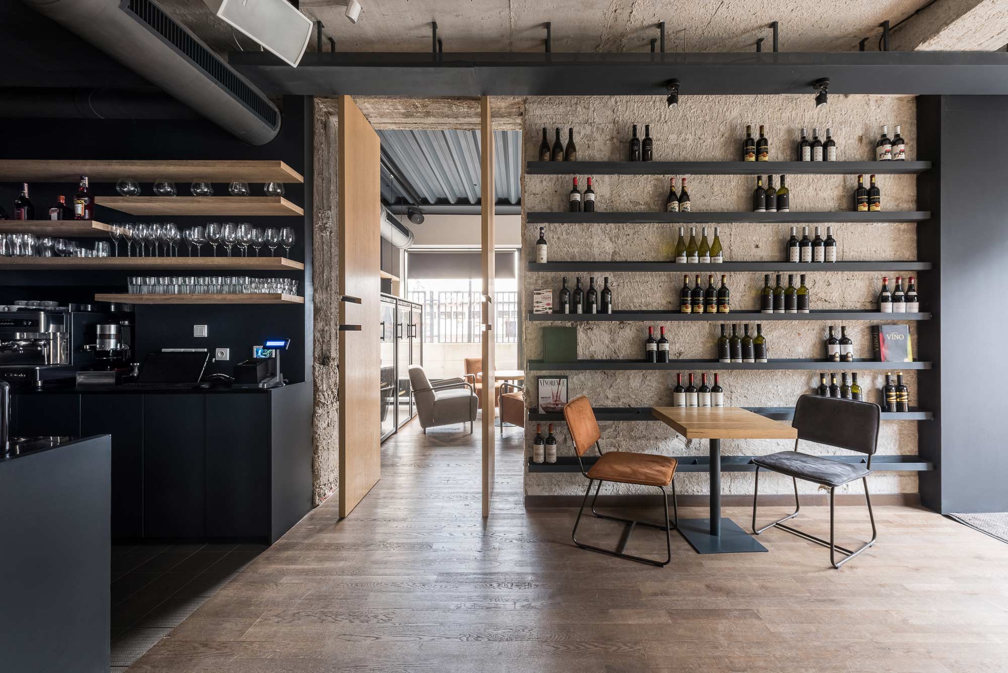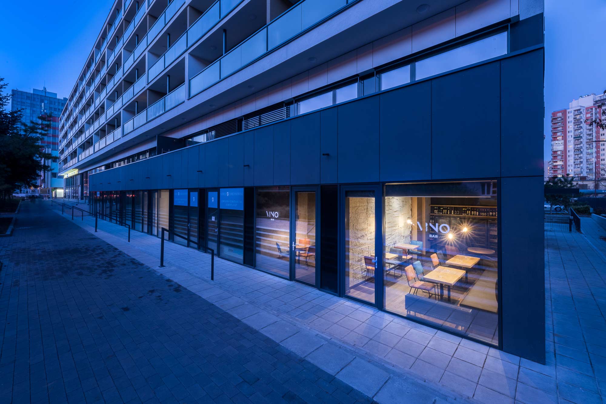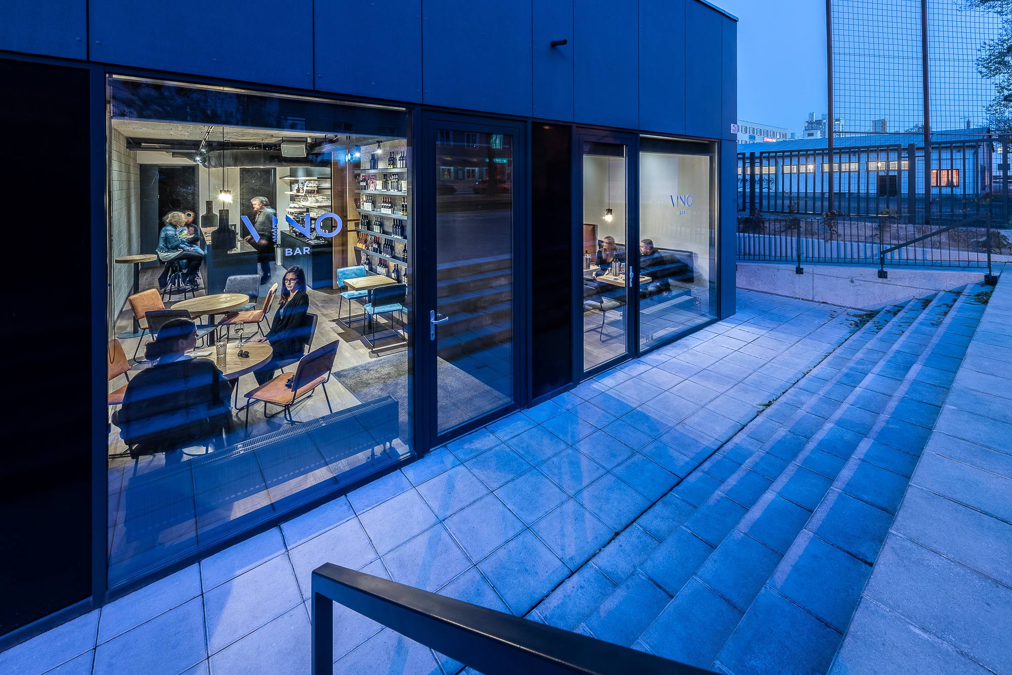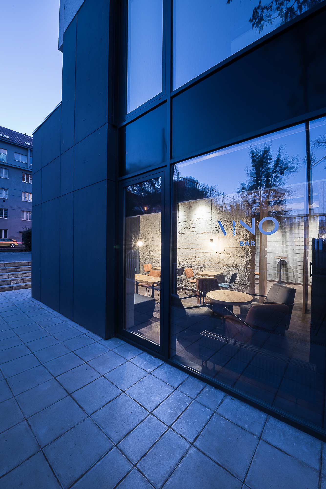 Vino Bar sa nachádza v zrekonštruovanej administratívnej budove na Miletičovej ulici č. 5 v Bratislave, ktorú náš ateliér nedávno realizoval. Budova prešla kompletnou rekonštrukciou na moderný polyfunkčný objekt s hlavnou funkciou bývania.