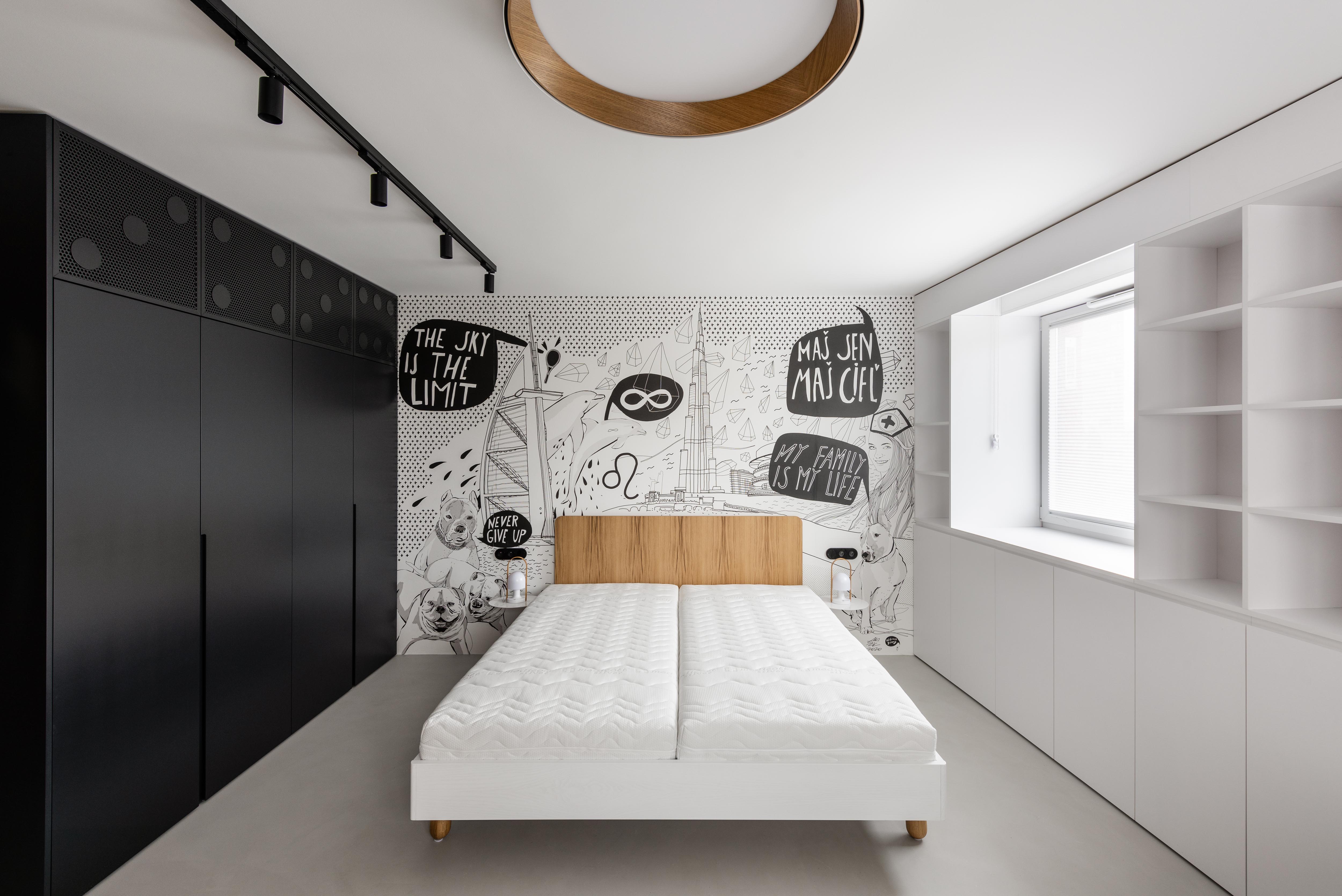 Mezonetový byt s výmnerou 125 m2, netradičným asymetrickým pôdorysom a rozsiahlou terasou s výhľadom na Bratislavský hrad. Návrh ateliéru RB ARCHITECTS sa nesie v duchu efektívneho využitia priestoru, s dôrazom na dostatok úložných kapacít. Kompletná infraštruktúra bytu je integrovaná do zjednotených nábytkových celkov. Precízne detaily vyzdvihujú čistotu riešenia a materiálovú kompozíciu.