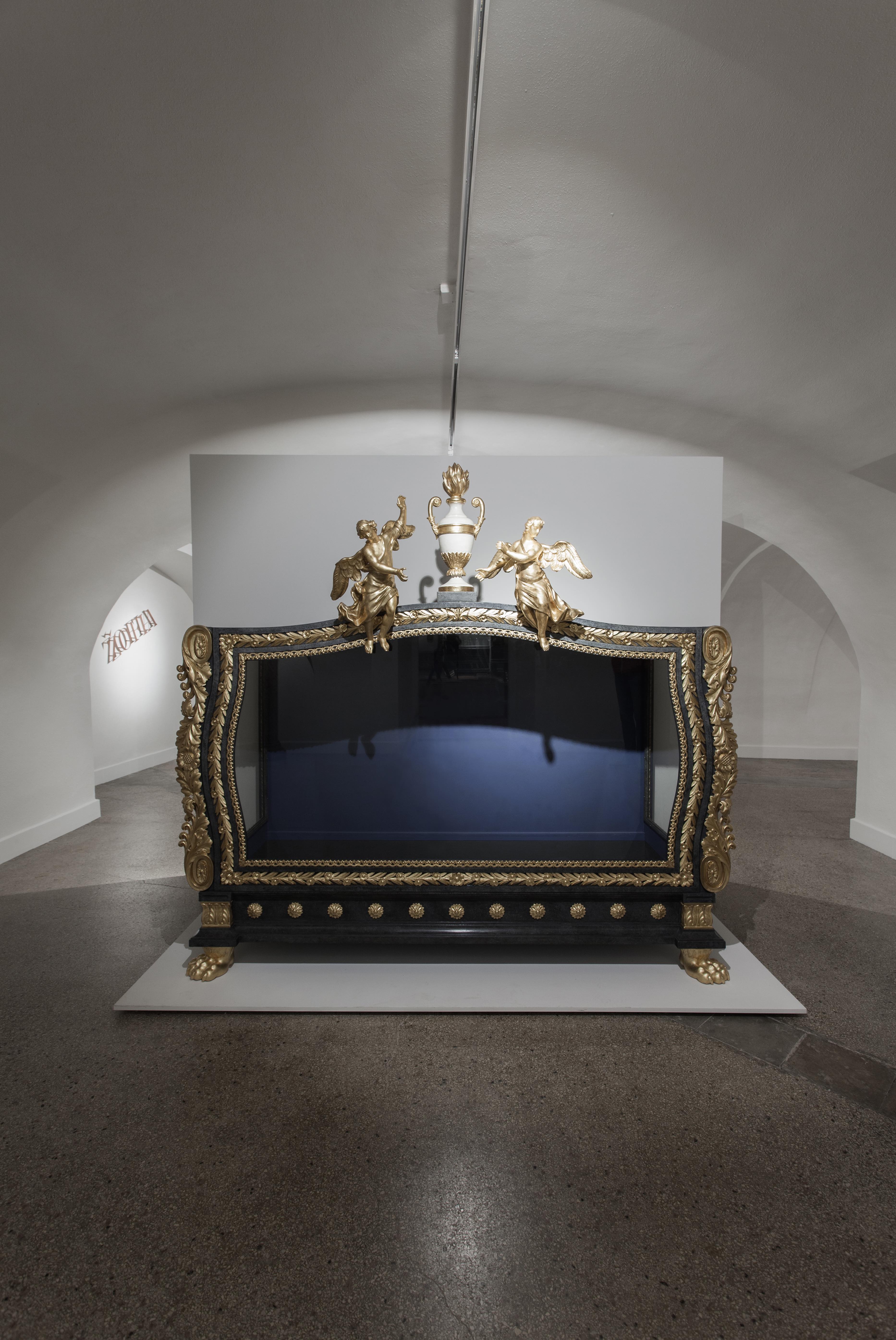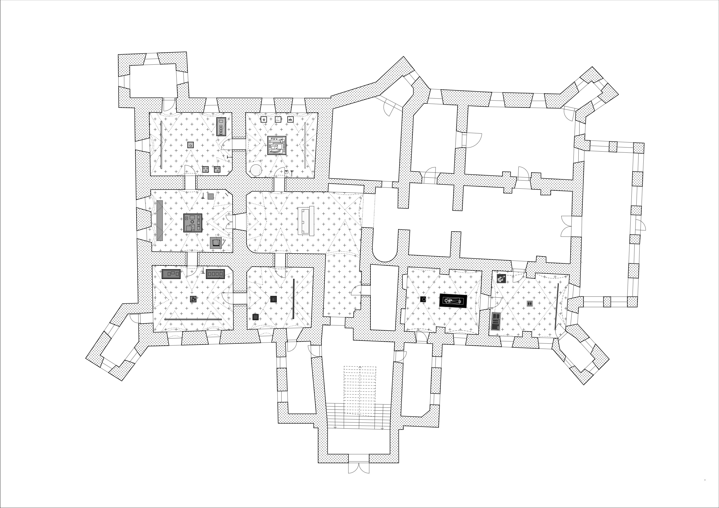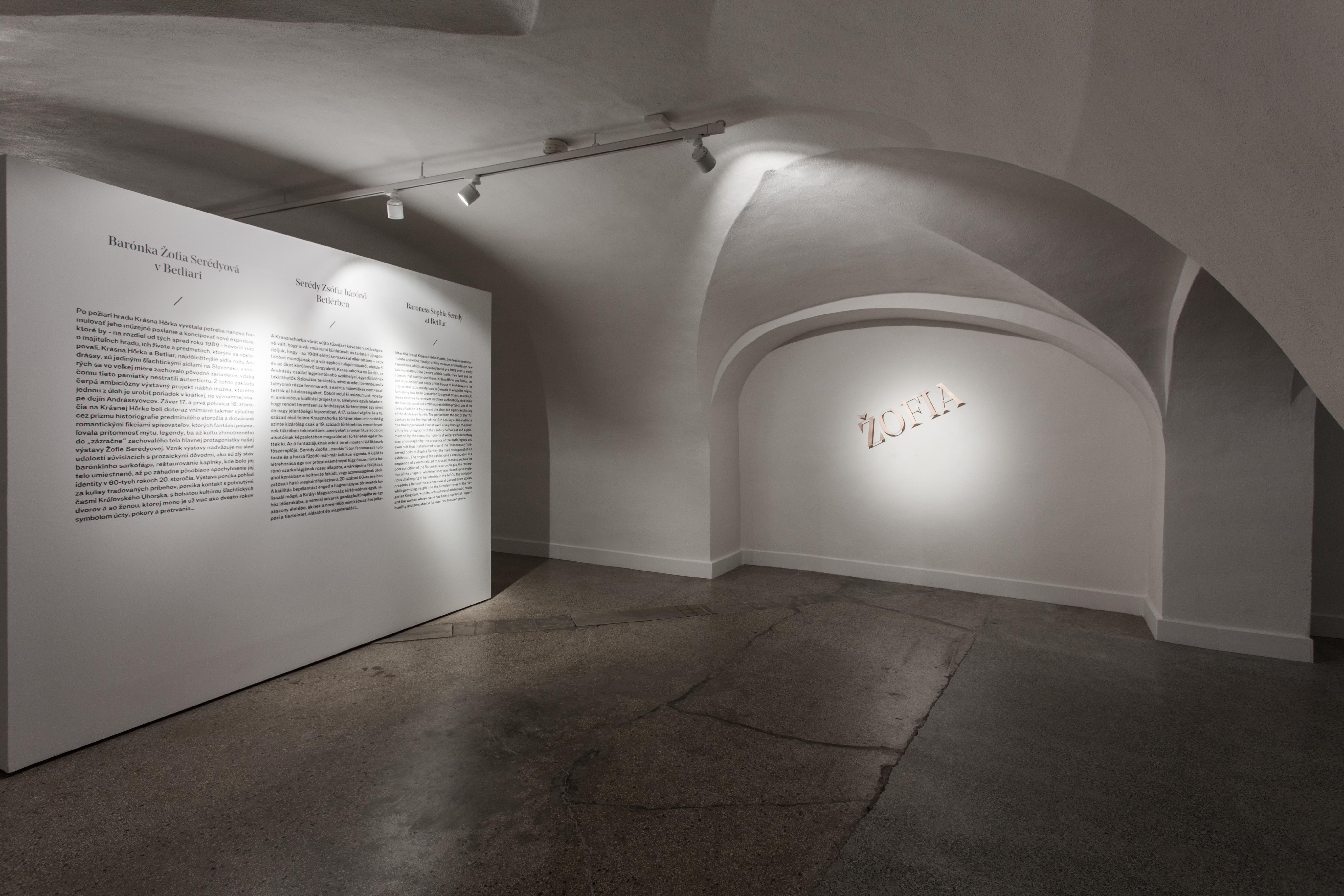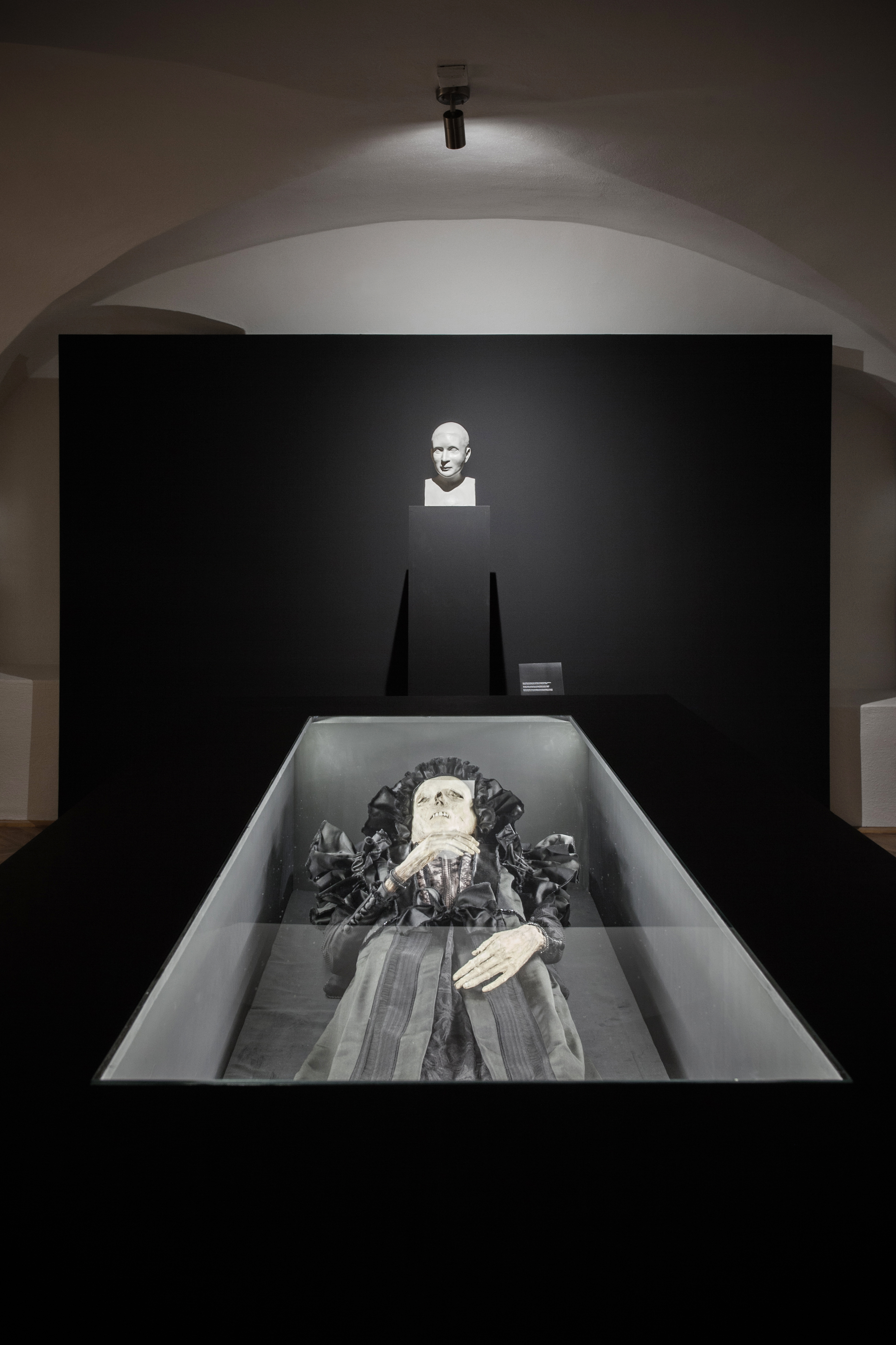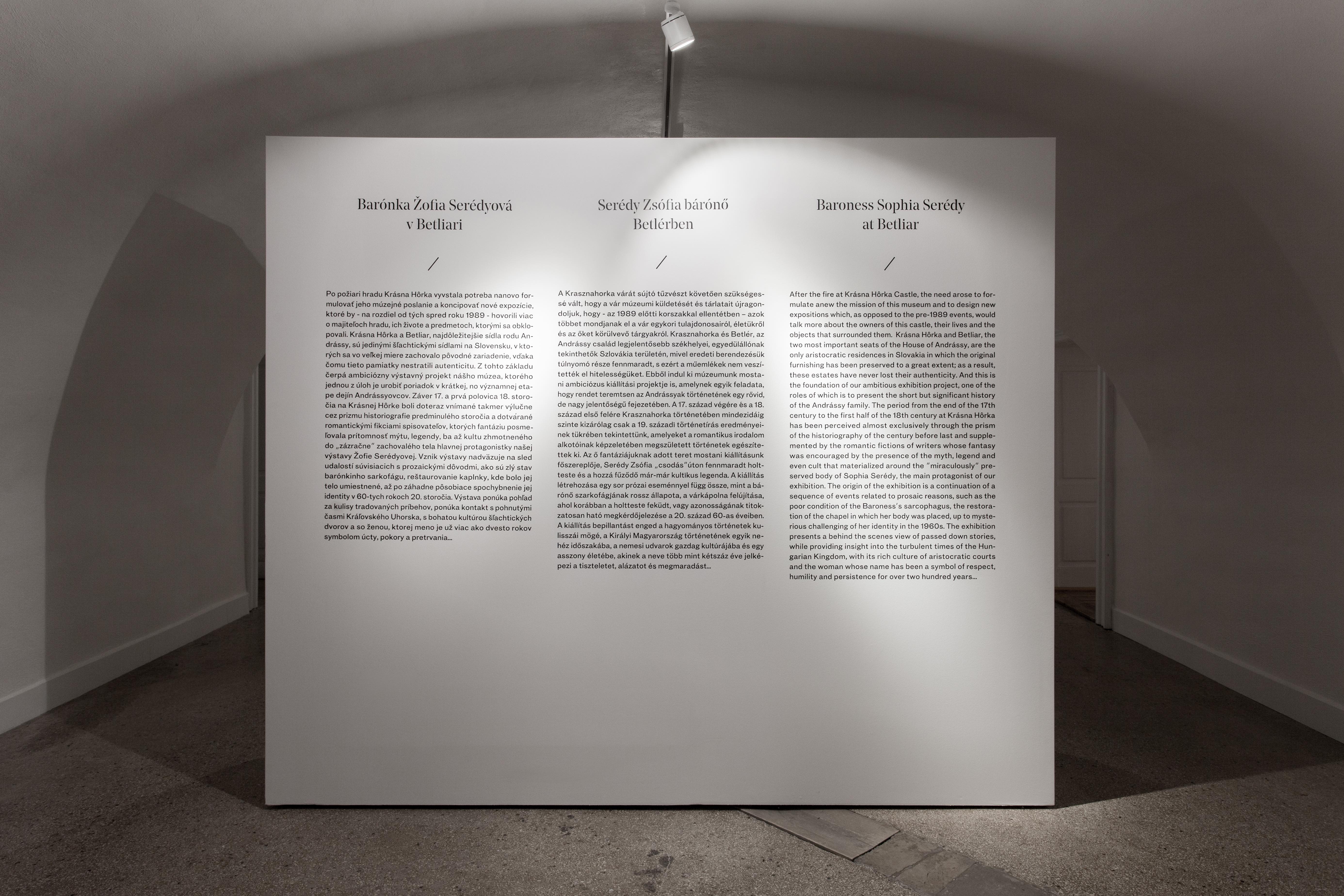 "Návrh sme poňali ako cestu jej životom, výstavný systém v jednotlivých miestnostiach postupne prechádza od bielej cez odtiene šedej až do úplne čiernej farby samotného katafalku, v ktorom je uložené mumifikované telo grófky," približuje koncept výstavy Andrej Olah.