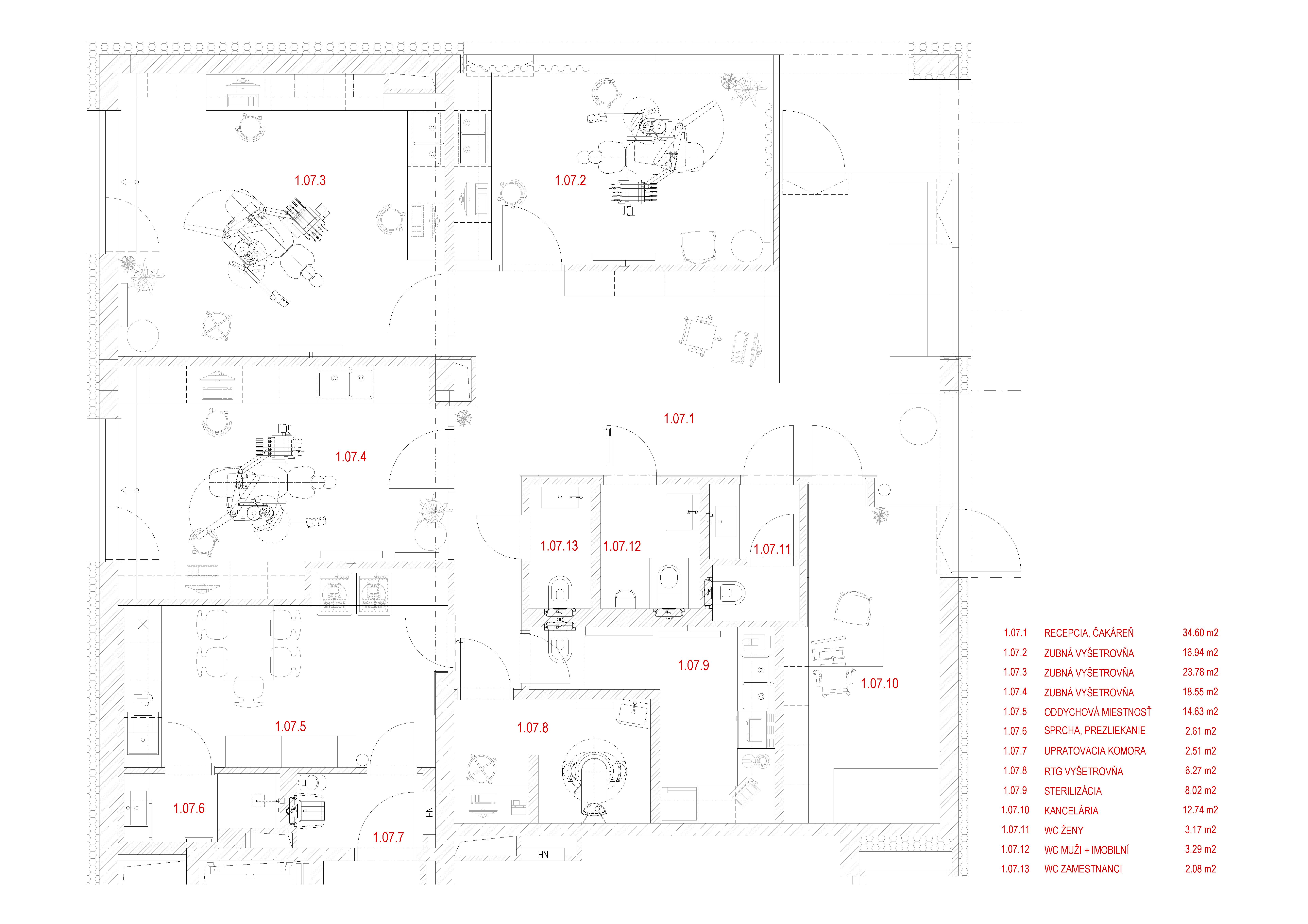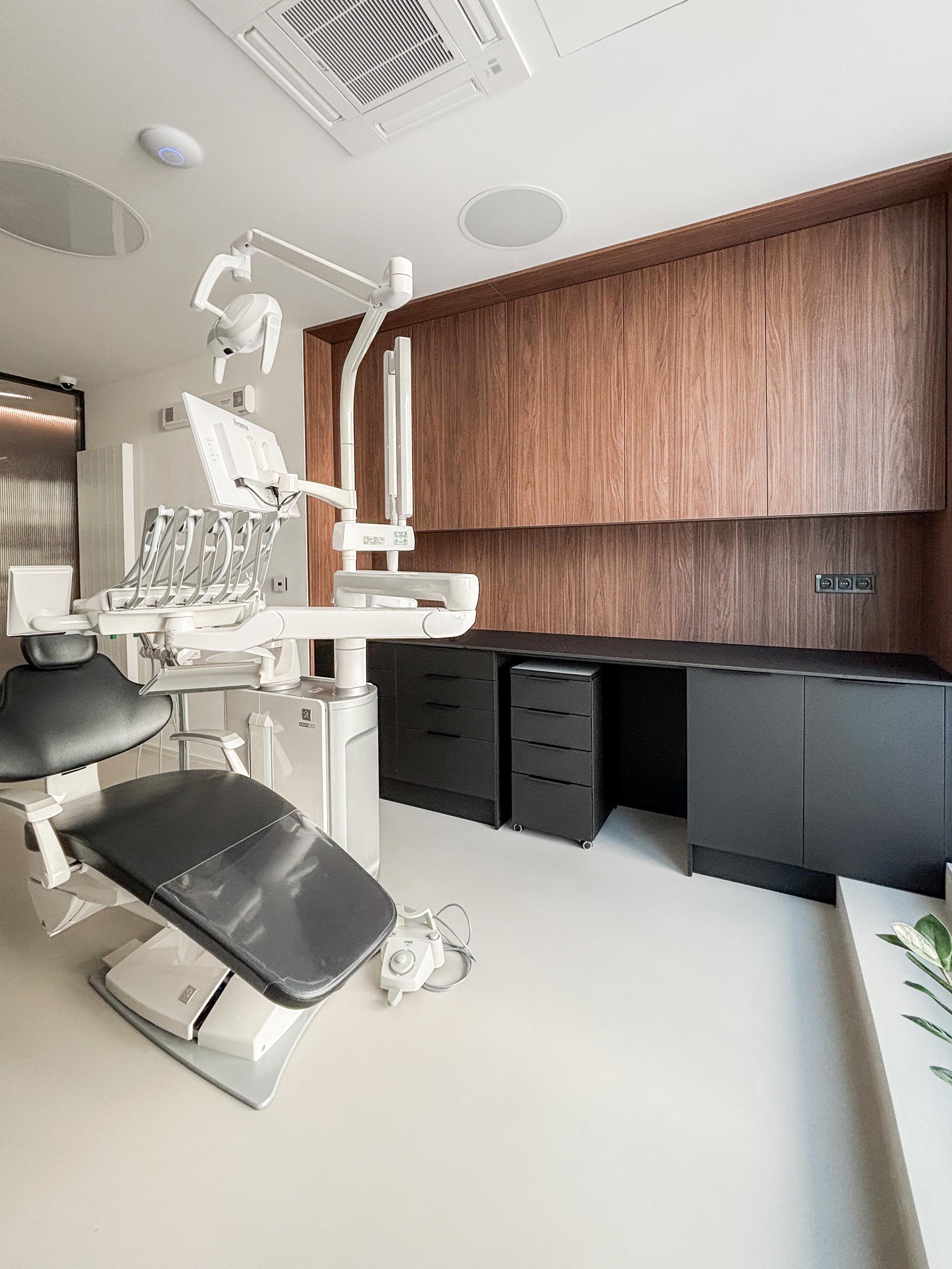 Projekt rieši zmenu užívania pôvodne obchodného priestoru v bytovom dome na zubnú kliniku. Súčasťou zadania bol návrh interiéru aj koordinácia stavebných a technologických úprav tak, aby prevádzka spĺňala požiadavky zdravotníckeho zariadenia. Klient požadoval tri ambulancie, kanceláriu, RTG miestnosť, miestnosť sterilizácie, personálne zázemie so sprchou, dostatočné zázemie pre personál a prístup do prevádzky z garáže.