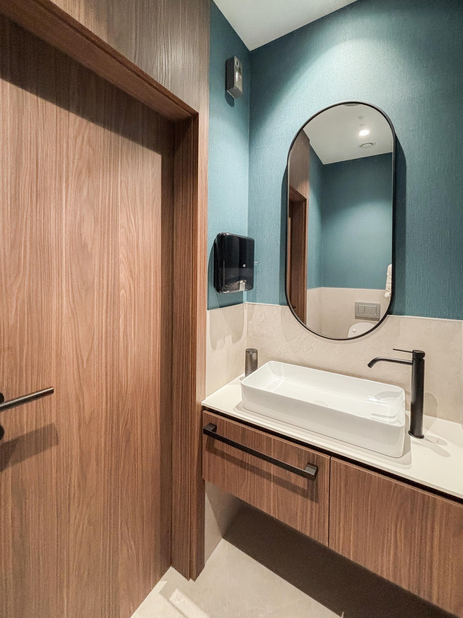 Do priestorov ambulancií zvolili architekti liatu antistatickú podlahu. Osvetlenie tvoria zapustené stmievateľné svietidlá s možnosťou nastavenia teploty bieleho svetla. Pracovné pulty a úložné priestory sú organizované do funkčných blokov a pracovné plochy dopĺňajú veľkoformátové keramické zásteny. Stolárske obklady sú navrhnuté s odolným, ľahko udržiavateľným povrchom s dôrazom na prevádzku a údržbu.