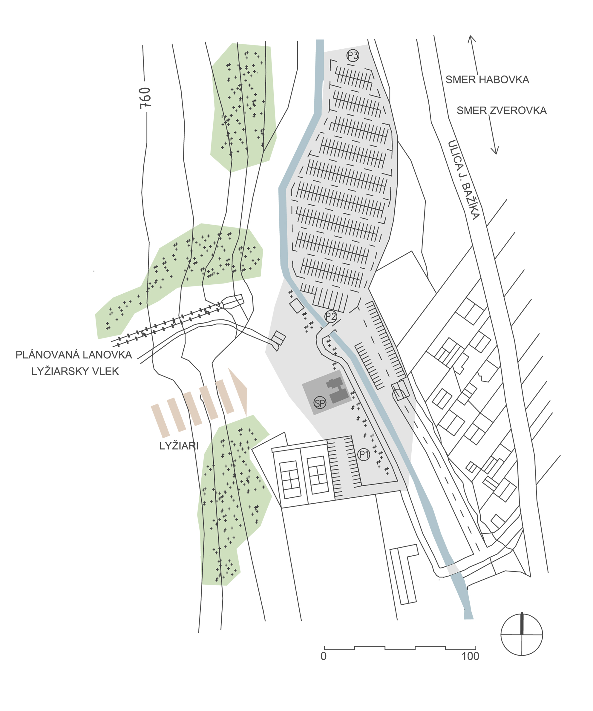Jeho poloha vychádza z typologickej prípravy, ktorá znázorňuje pohyb lyžiarov a pohyb peších a ich súčasné fungovanie bez vzniku rizika. Pohyb lyžiarov je úzko spätý s polohou nástupnej stanice plánovanej lanovky.