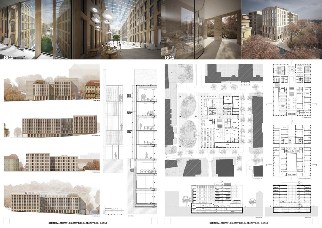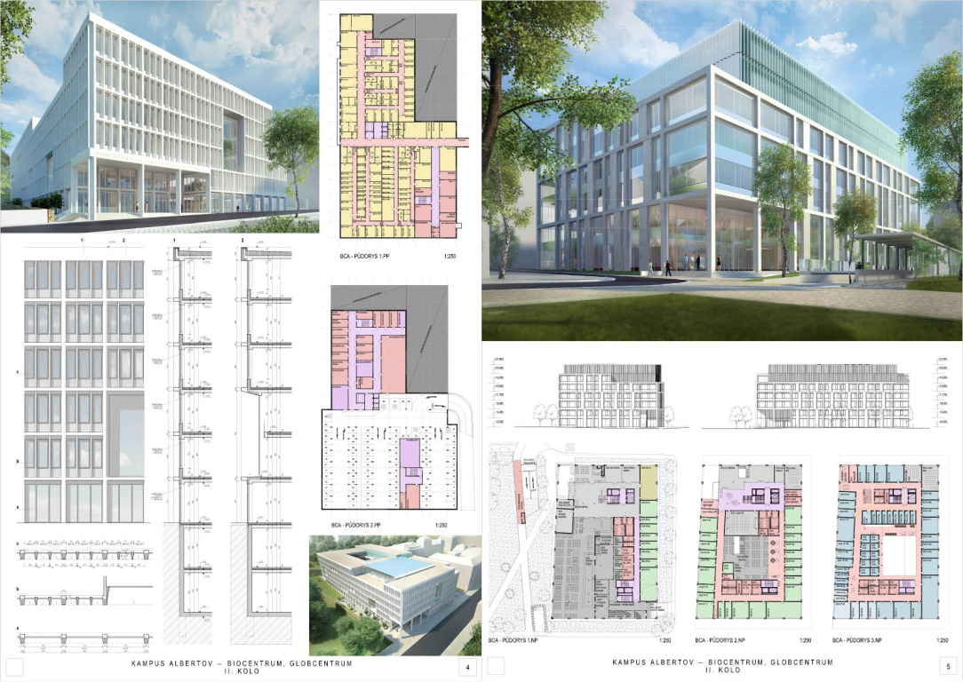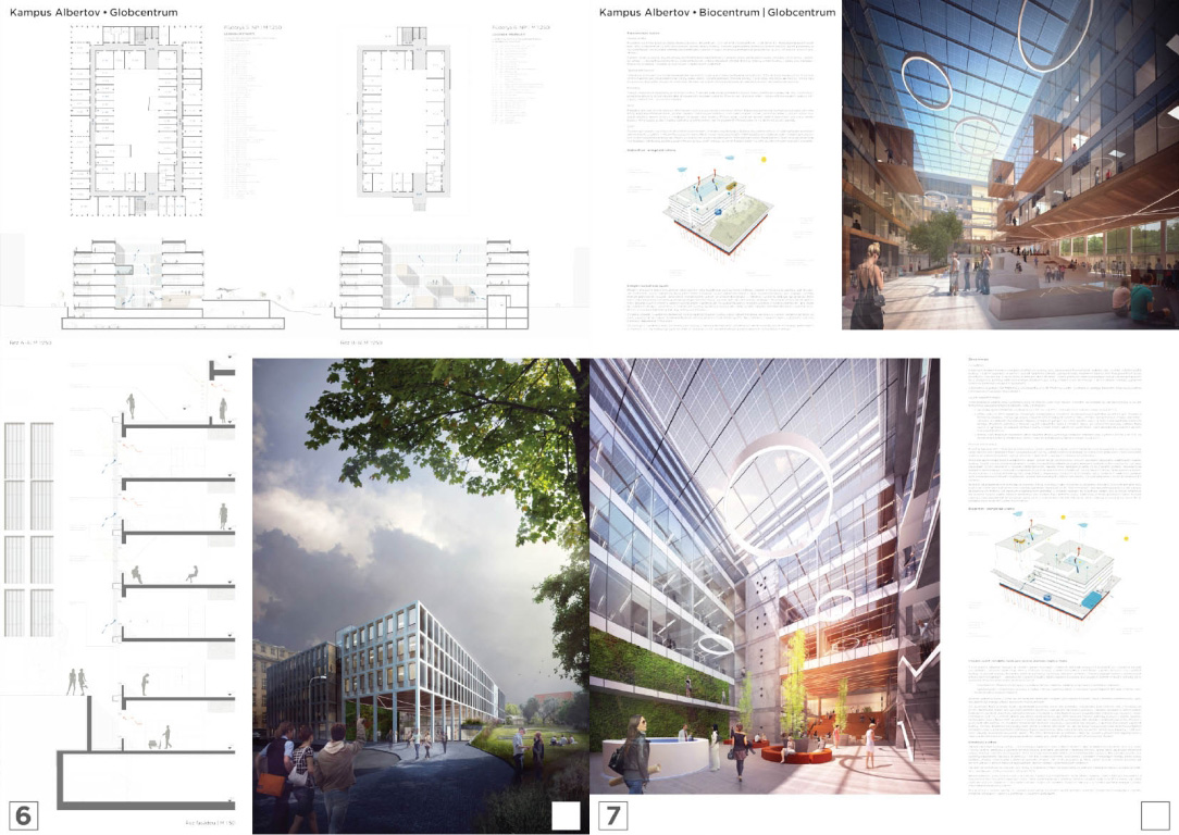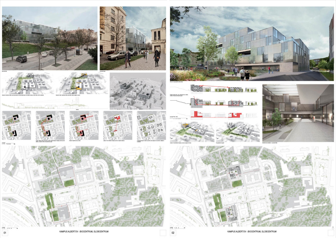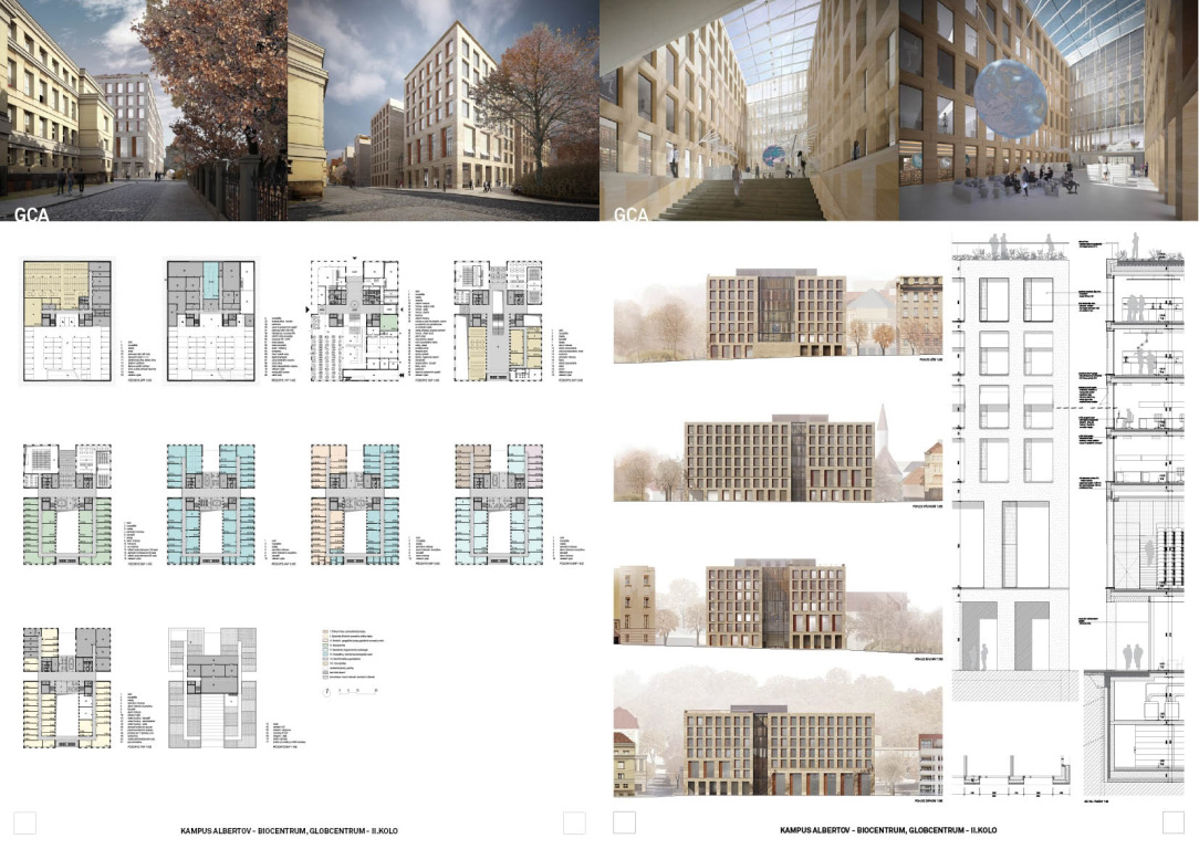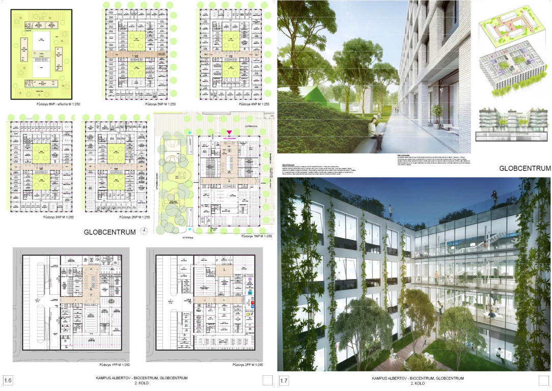 V architektonickej súťaži na návrh kampus Albertov si prvú cenu odnieslo štúdio Znamení čtyř - architekti, druhé miesto získal Ateliér M1 architekti. (Takto farebne sú označené víťazné návrhy aj v nasledujúcej grafickej prezentácii návrhov, ktoré postúpili do druhého kola súťaže). Keďže sa odborná porota rozhodla neudeliť tretiu cenu, na finálnej podobe dvoch budov, ktoré vyrastú na území Prahy budú spolupracovať iba dva spomínané ateliéry.