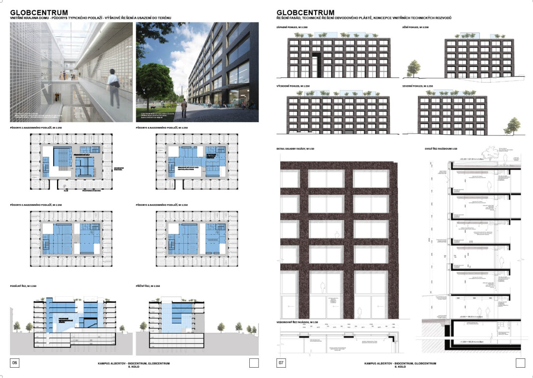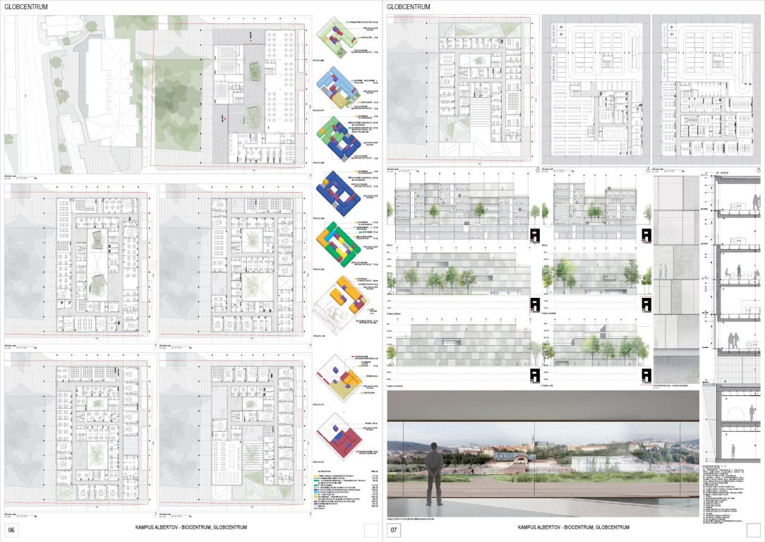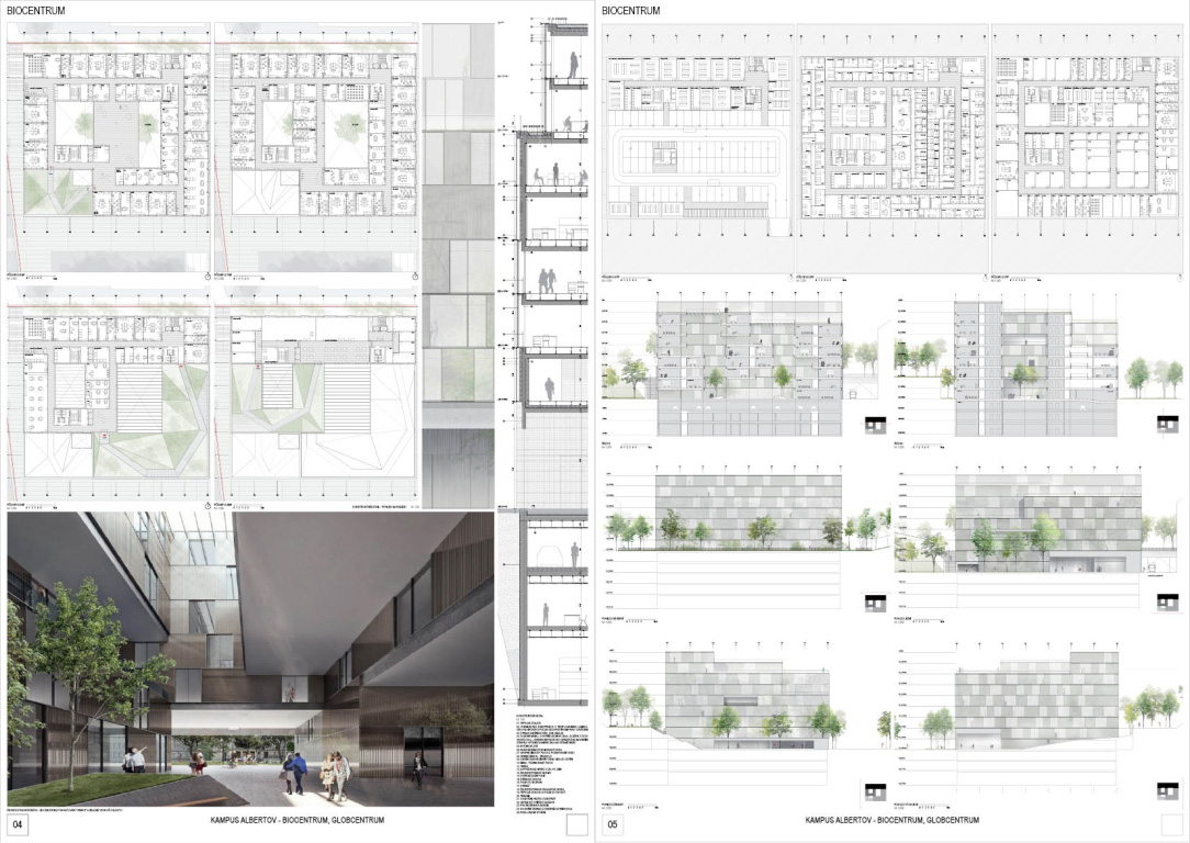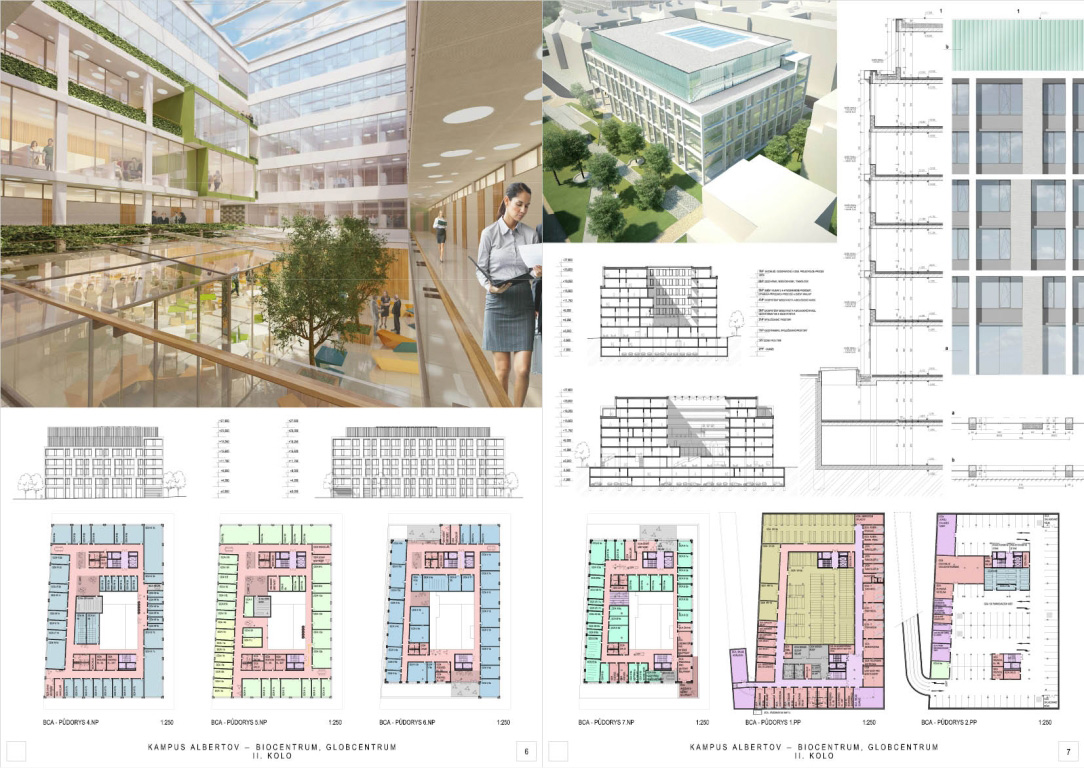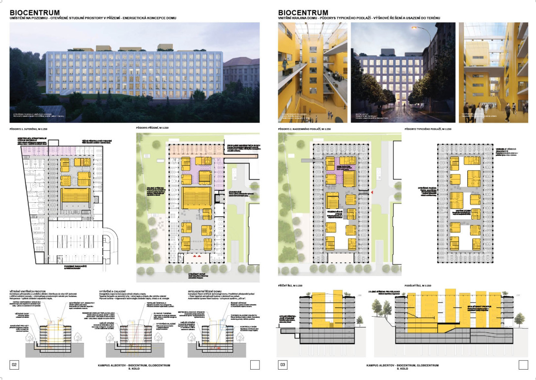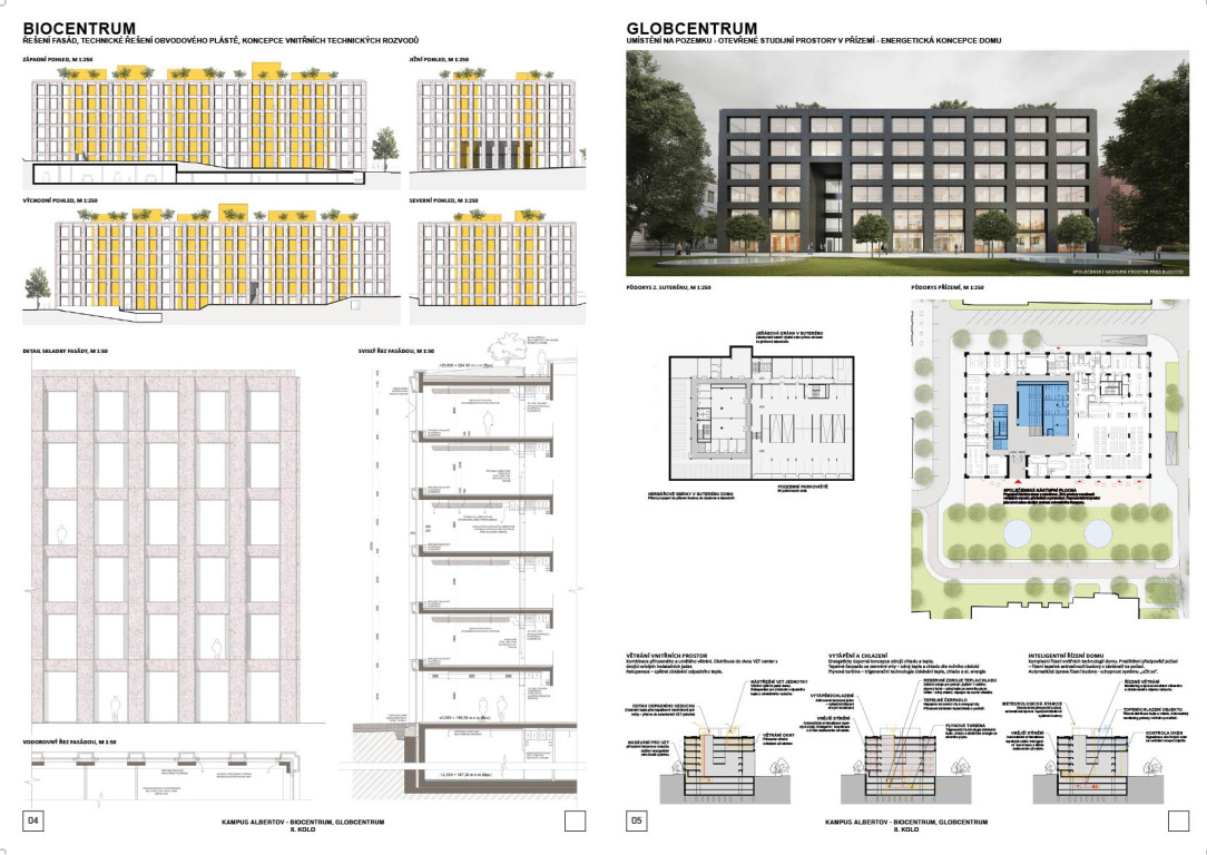 V architektonickej súťaži na návrh kampus Albertov si prvú cenu odnieslo štúdio Znamení čtyř - architekti, druhé miesto získal Ateliér M1 architekti. (Takto farebne sú označené víťazné návrhy aj v nasledujúcej grafickej prezentácii návrhov, ktoré postúpili do druhého kola súťaže). Keďže sa odborná porota rozhodla neudeliť tretiu cenu, na finálnej podobe dvoch budov, ktoré vyrastú na území Prahy budú spolupracovať iba dva spomínané ateliéry.