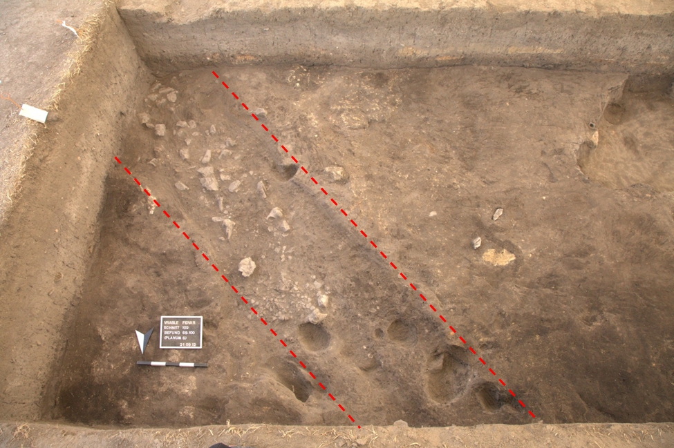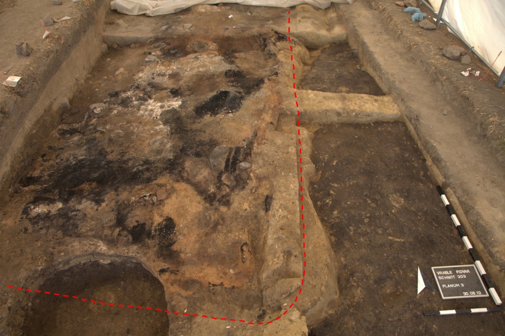 V areáli opevnenej osady sme sa sústredili prevažne na odkryv obydlí. Zistili sme, že domy mali štandardizované rozmery. Ich dĺžka sa pohybovala v rozmedzí 10 – 15 m a šírka v rozpätí 6 – 8 m. Medzi domami sa nachádzala ulička široká približne 1 m. Je zaujímavé, že bola vyplnená prevažne kuchynským odpadom (rozbitými nádobami, zvieracími kosťami), nefunkčnými pracovnými nástrojmi a drobným lomovým kameňom. Zdá sa teda, že domáci odpad nebol sústredený na nejakom centrálnom mieste (smetisku), ale bol jednoducho vyhodený a zhromaždený v priestore medzi domami. Zápach rozkladajúceho sa odpadu musel byť v letných mesiacoch neznesiteľný...