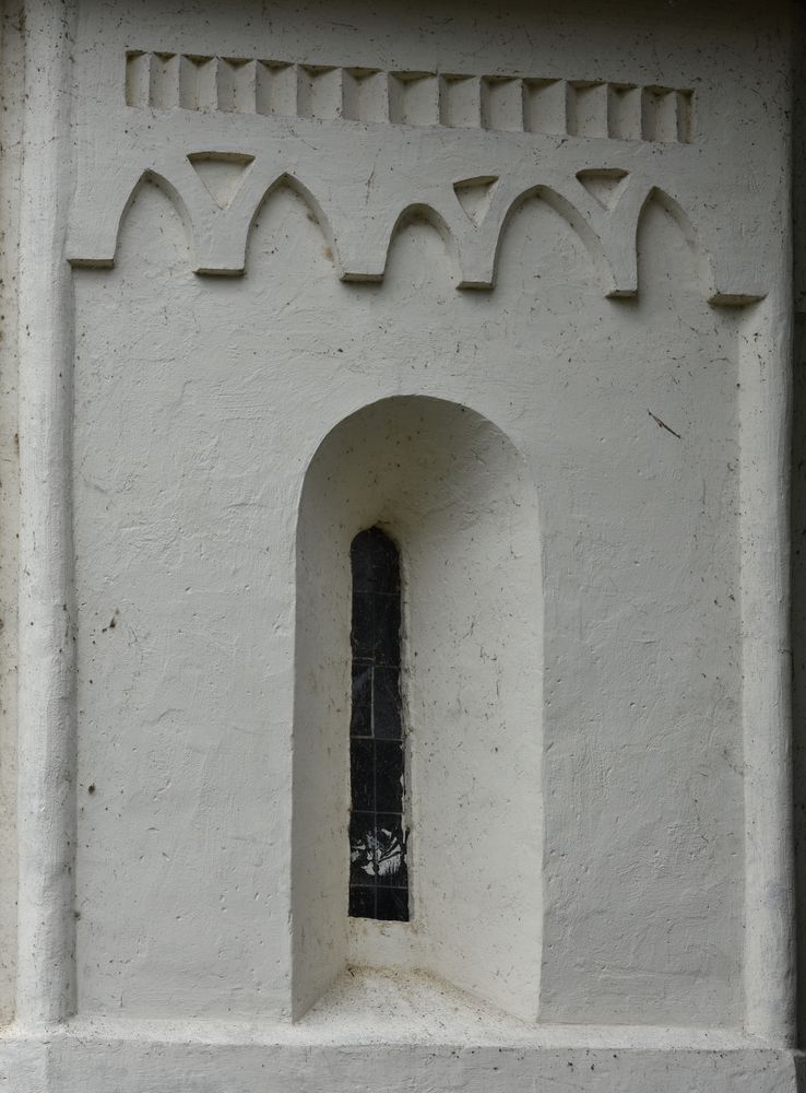 Hornú časť fasád pôvodnej rotundy zdobí zuborez, pod ktorým sa zachoval aj románsky oblúčikový vlys, u nás takisto ojedinelého obkročného typu (podobný bol nedávno objavený v Jelke). Zaujímavé sú aj nárožné prípory valcového tvaru, ktoré na Slovensku nájdeme len na niekoľkých stavbách (Bíňa, Šamorín, Turčianske Jaseno).