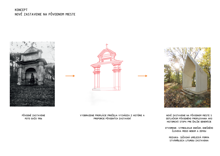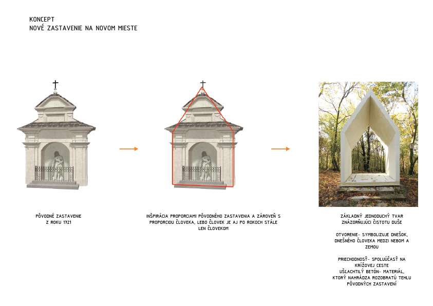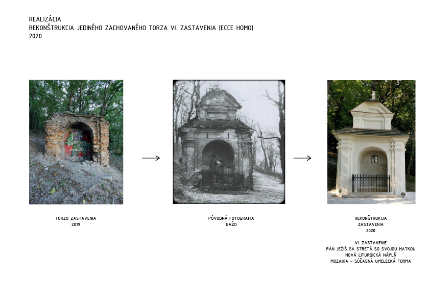Architekti a zároveň lokálpatrioti so vzťahom k tomuto miestu sú prítomní za aktivitami vedúcimi k oživeniu pomaly zabudnutého pútnického miesta v starom meste. Na začiatku stáli pred neľahkou úlohou. Pôvodné zastavenia krížovej cesty z prelomu konca 17. a 18. storočia boli cielene zdevastované a zničené za komunistického režimu pri budovaní Pražskej ulice. Okolo zachovaného zvyšku kamennej cesty boli donedávna jednotlivé zastavenia vyobrazené na drevených tabuliach pribitých na stromoch. Kopec medzičasom zarástol lesom...