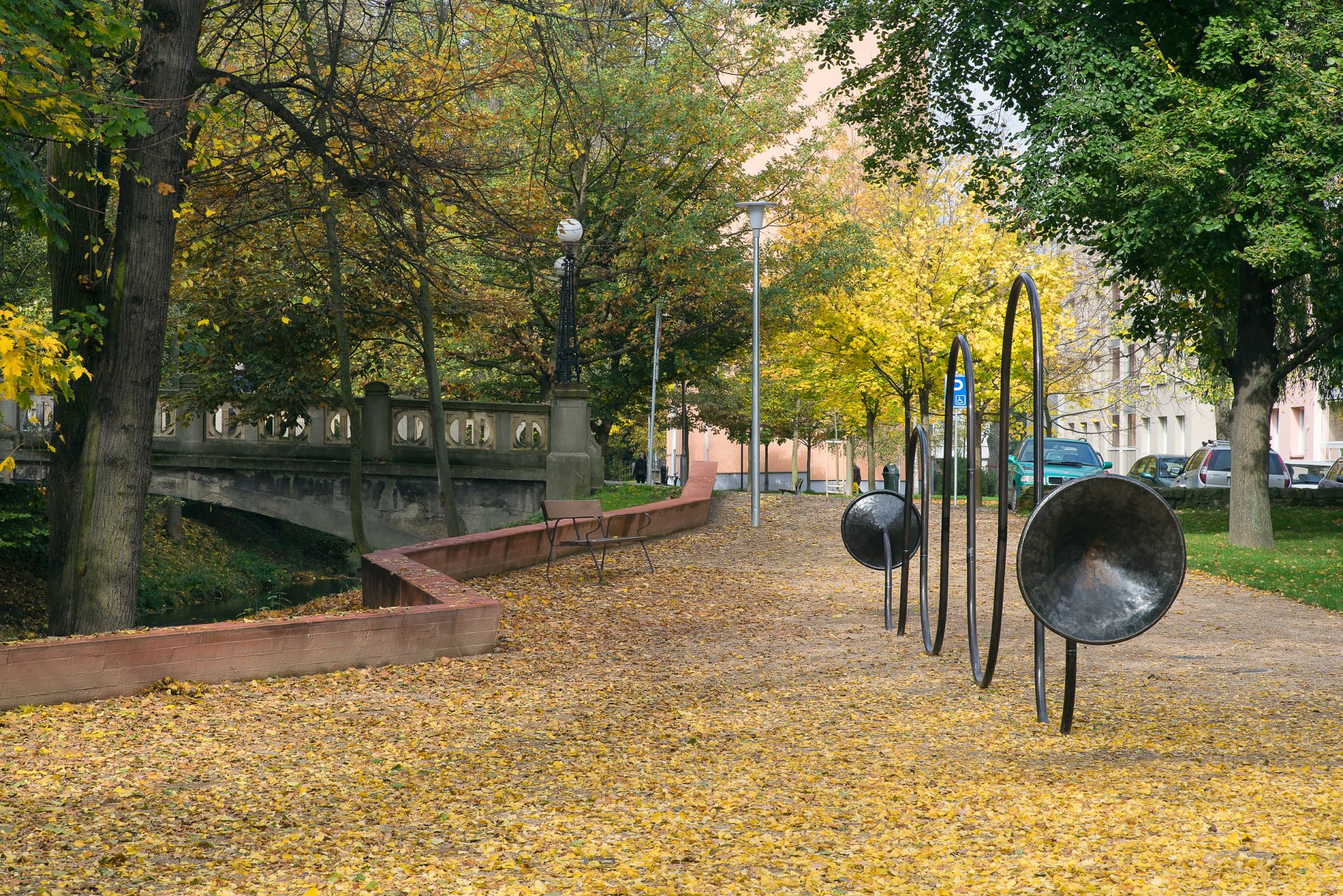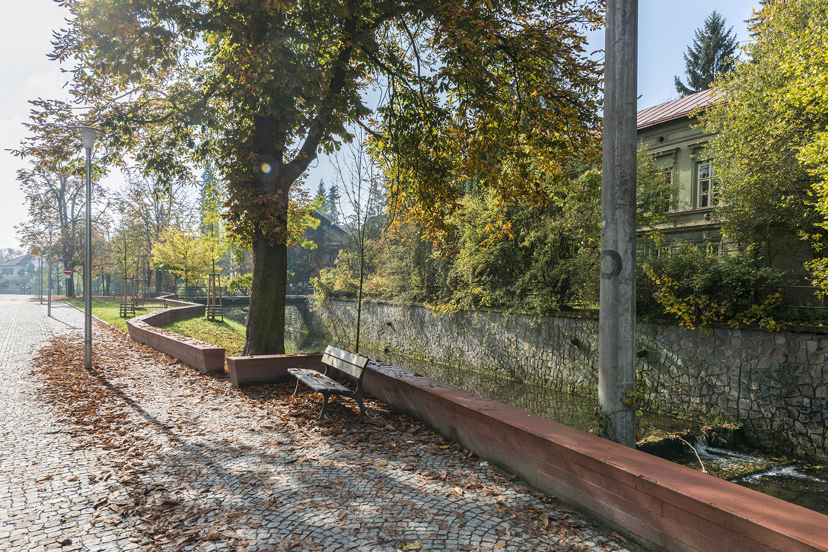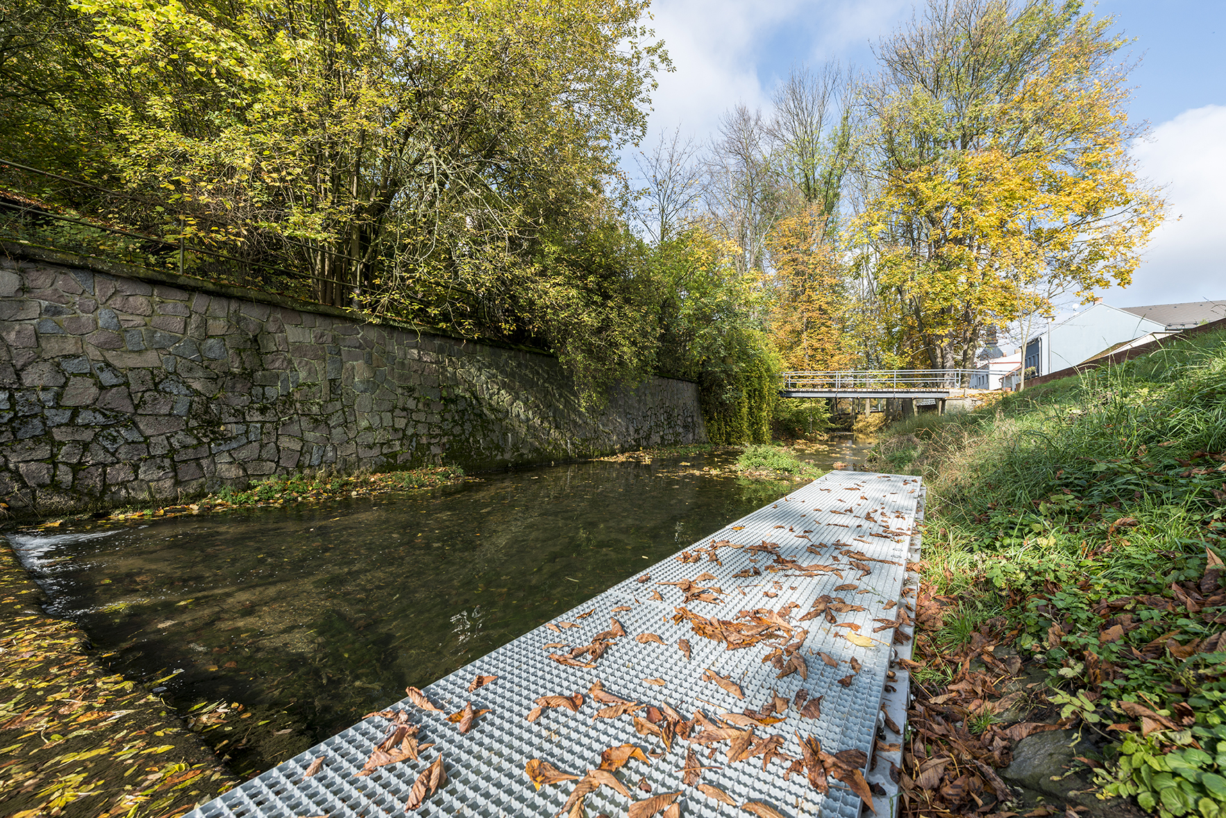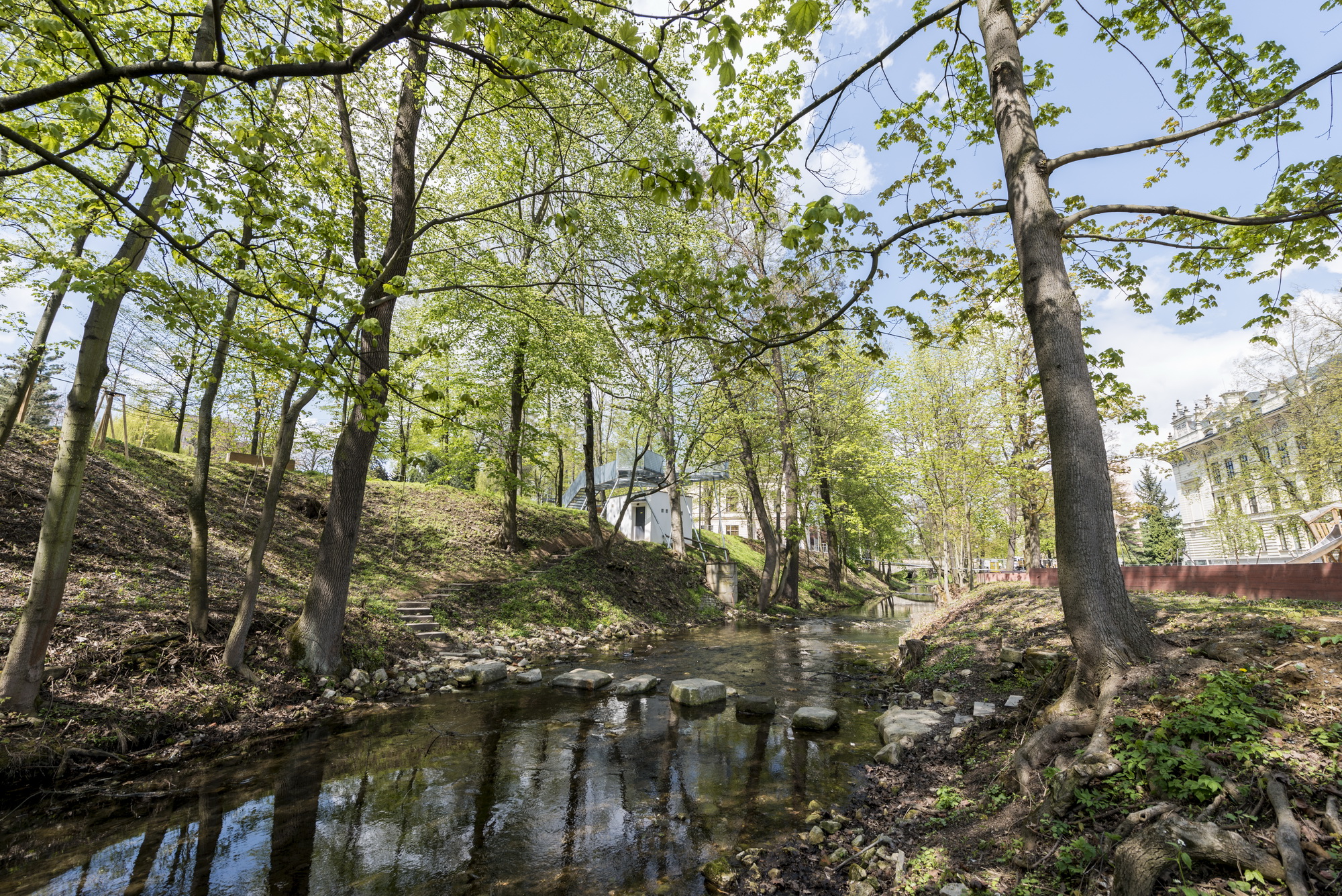 Lepší prístup k rieke aj nové možnosti jej prechodu umožňuje kamenný brod, nová visutá lávka a sklápacie móla. Nevzhľadný objekt vodárne nad riečkou architekti využili na vytvorenie vyhliadky. Park pri Smetanovom dome doplnil pavilón so zelenou strechou a s posedením pod vysokými stromami.