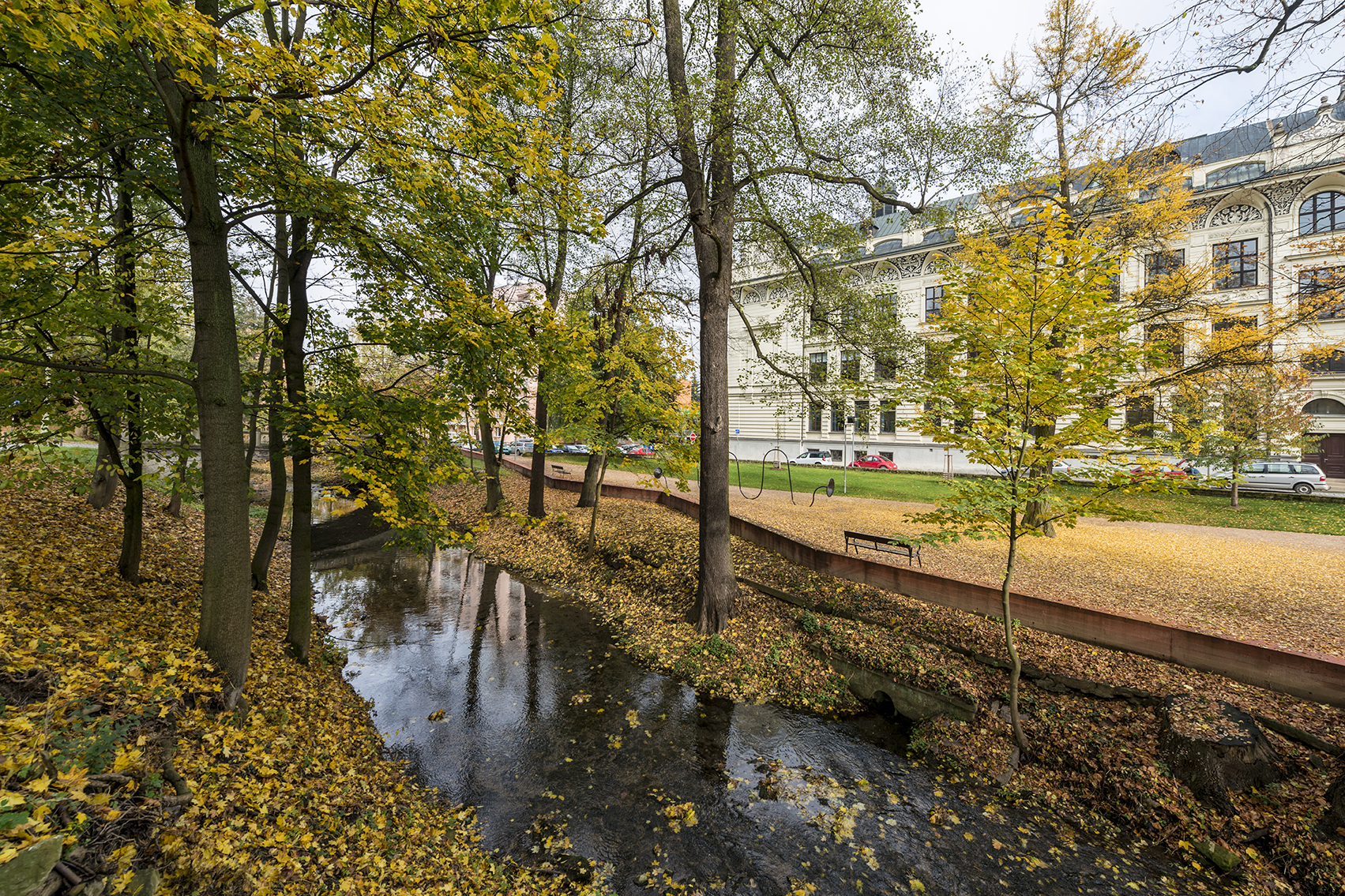 Úprava nábrežia riečky Loučná v centre mesta nadväzuje na úsek, ktorý bol už skôr realizovaný podľa návrhu ateliéru Josefa Pleskota. Zanedbaná plocha bývalých mestských sadov bola od Pleskotovej promenády oddelená múrom. Ploty znemožňovali voľný pohyb pozdĺž rieky.
