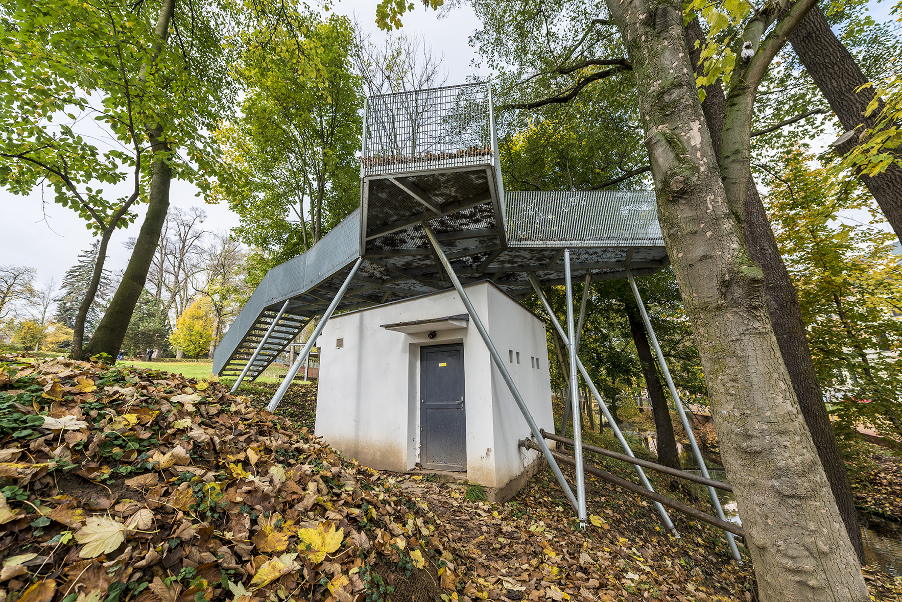 Pás svahovitých brehov rieky Loučná bol zámerne ponechaný s minimálnymi umelými zásahmi, ktoré by mohli narušiť ich prírodný charakter. Ten architekti vnímali ako jednu z najväčších hodnôt v území. Priestor je zachovaný vo svojej divokosti a sprístupnený iba na vybraných miestach ľahkými mólami z pororoštov a vyhliadkou umiestnenou v úrovni korún stromov nad objektom vodárne.