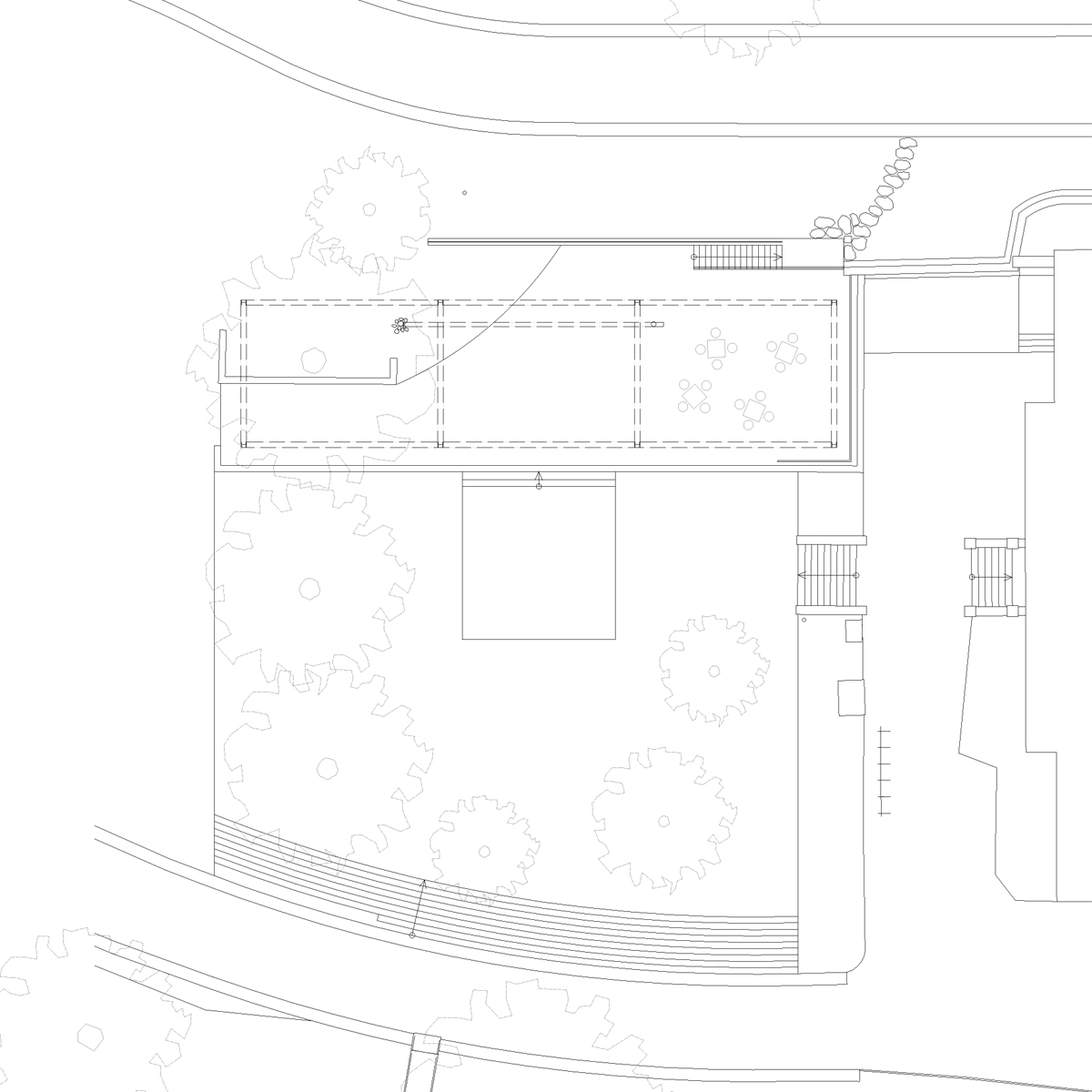 Architektonické riešenie berie ohľad na nenáročnú údržbu frekventovaných verejných priestorov. Prírodná časť v bezprostrednom kontakte s riekou ostáva nedotknutá.