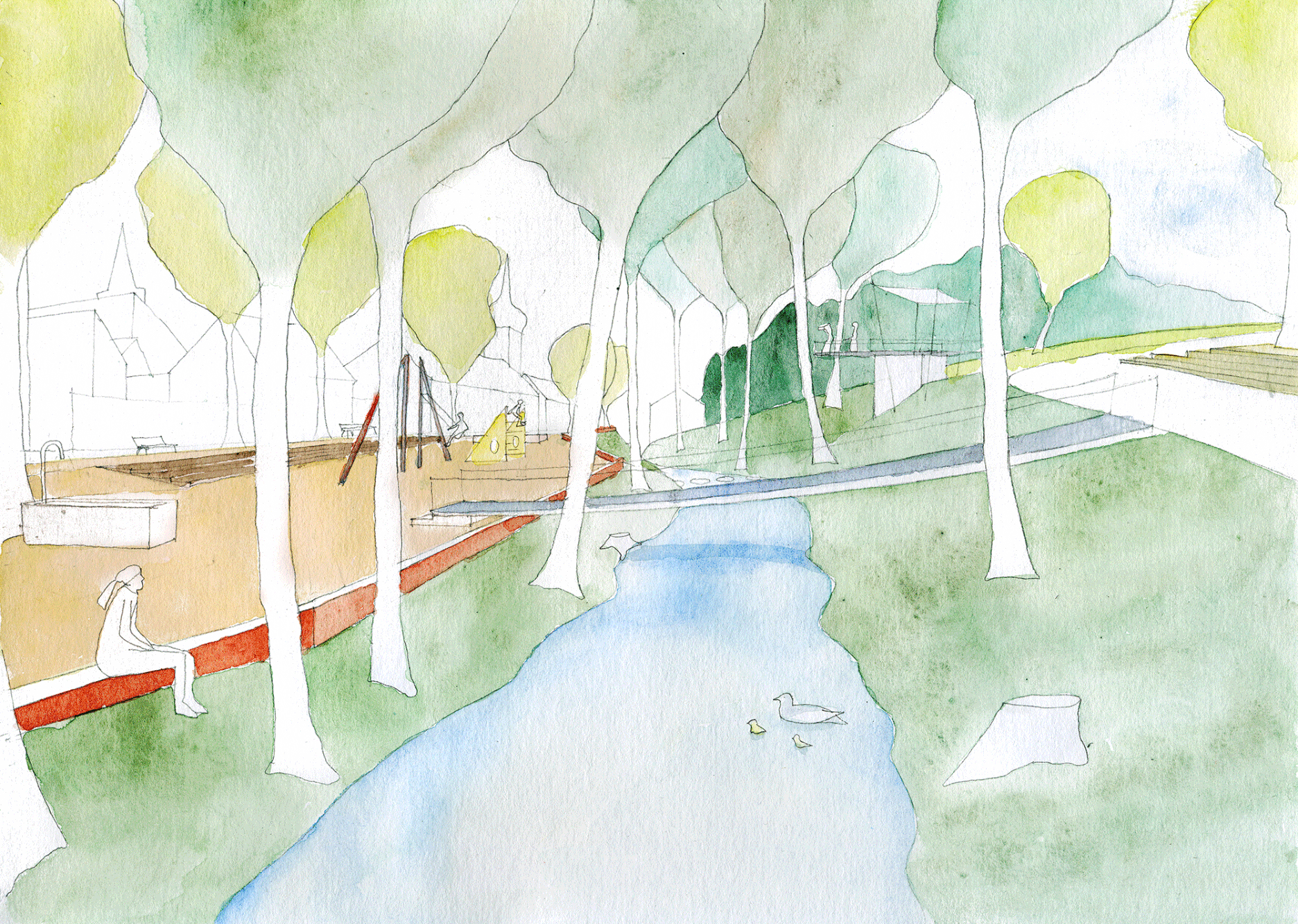 Cieľom projektu bolo opätovné sprístupnenie rieky a vytvorenie priestoru pre trávenie voľného času v jej okolí. Architekti prepojili pôvodne oddelené priestory ulice, nábrežia, rieky a parku.