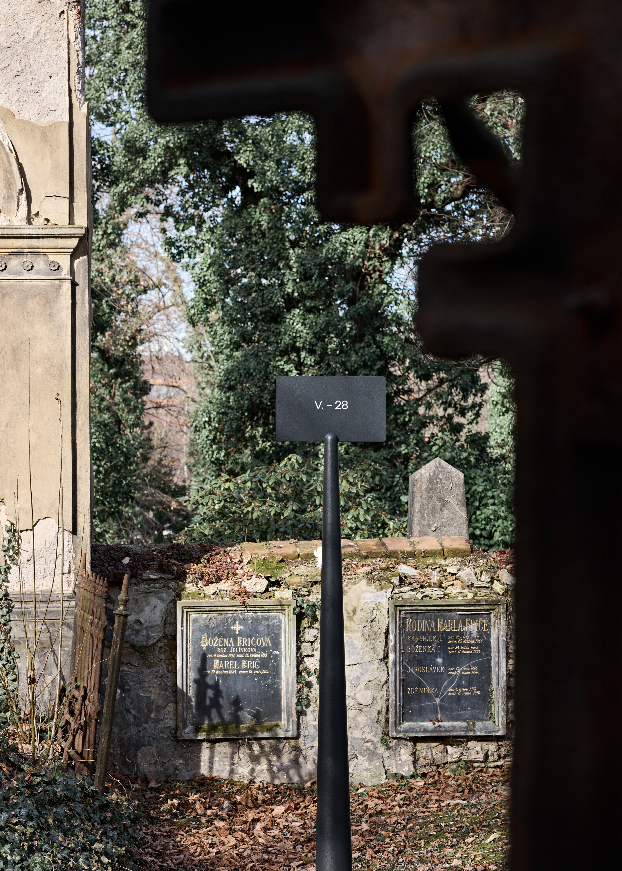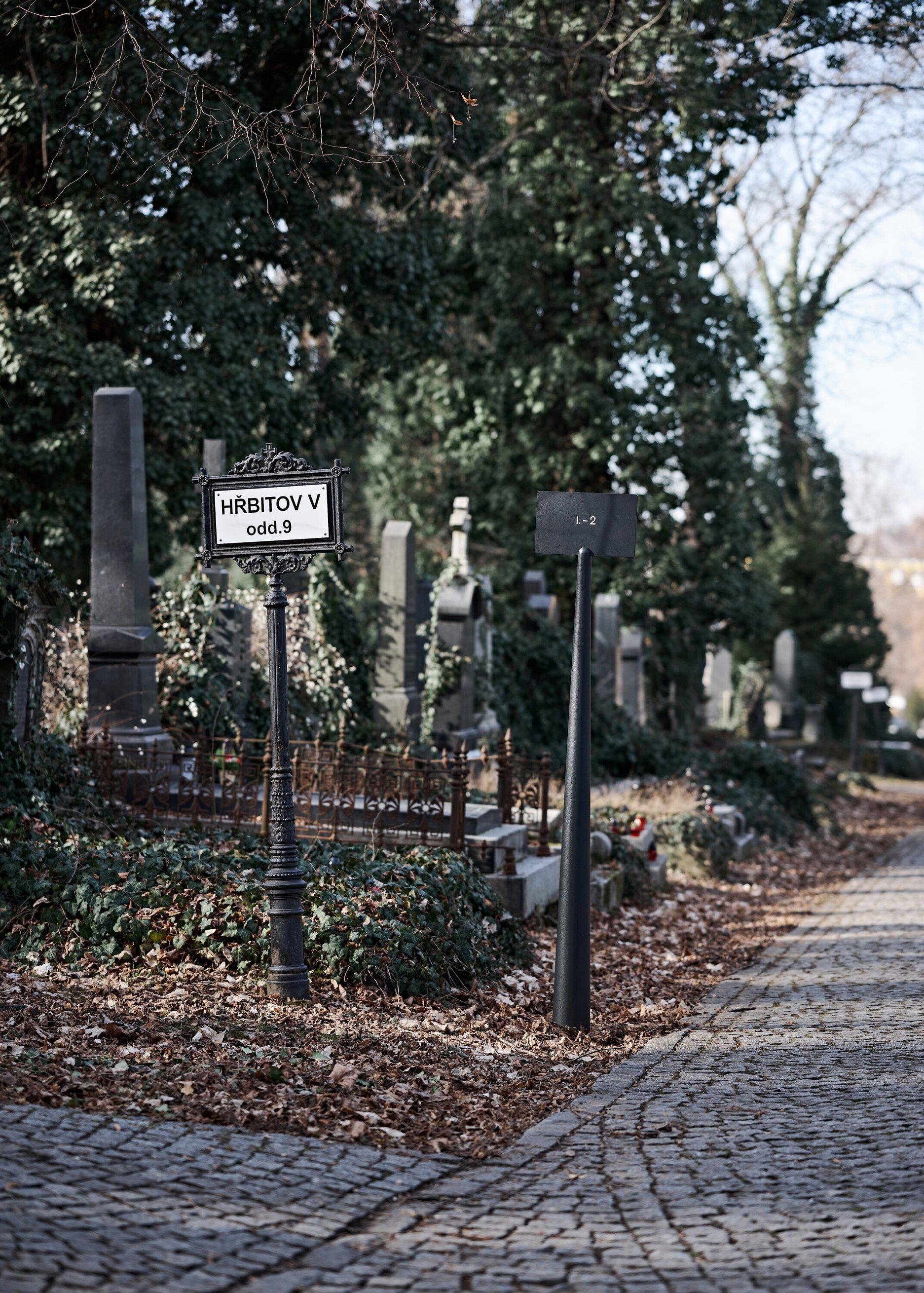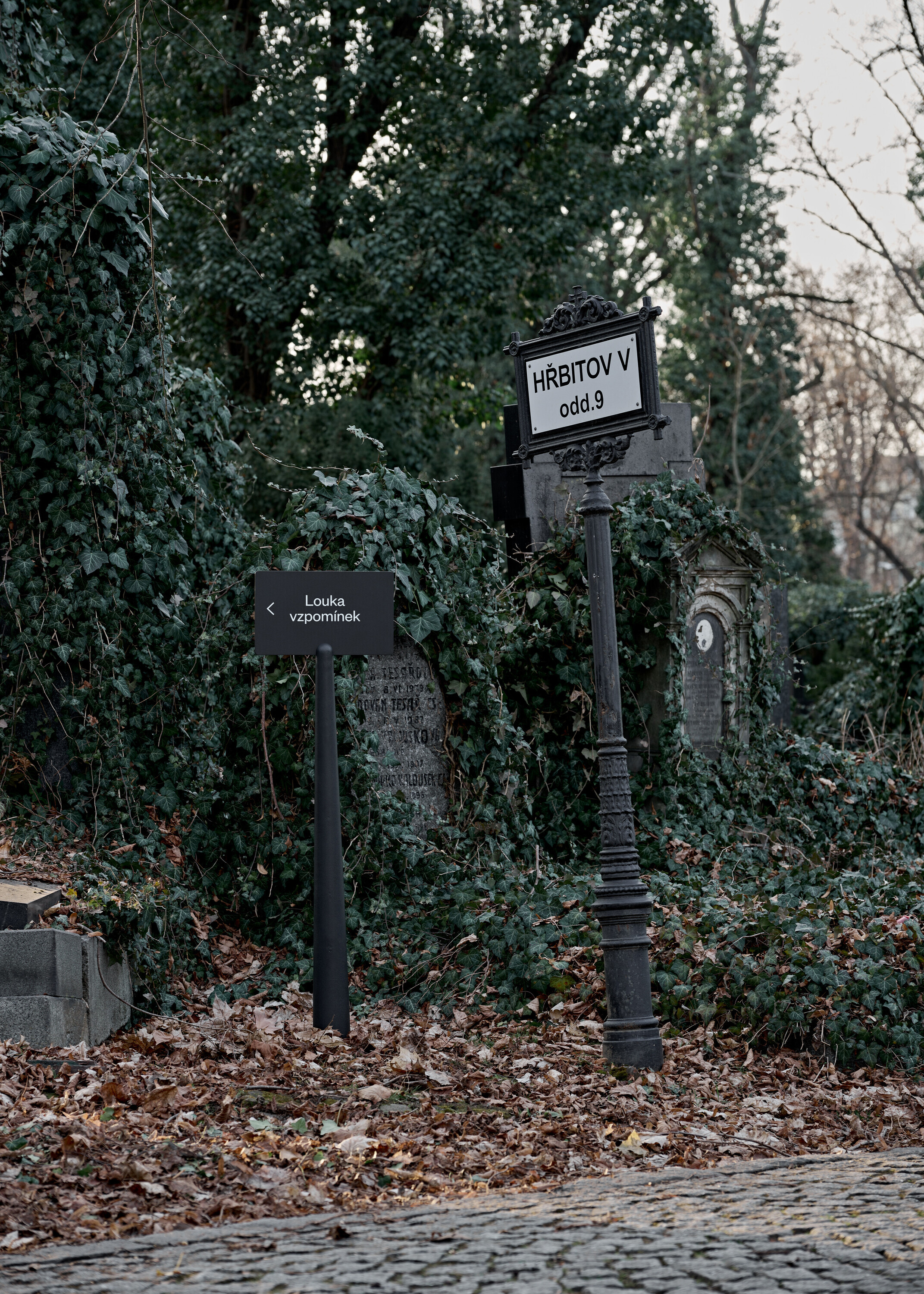 Tridsaťtri cintorínov: presne toľko spravuje príspevková organizácia Hřbitovy a pohřební služby hlavního města Prahy (HPS), ktorá v týchto dňoch na jednom z nich začína montovať prvé prototypy nového orientačného systému. Ten navrhla dizajnérska dvojica Eduard Herrmann a Josef Tomšej.