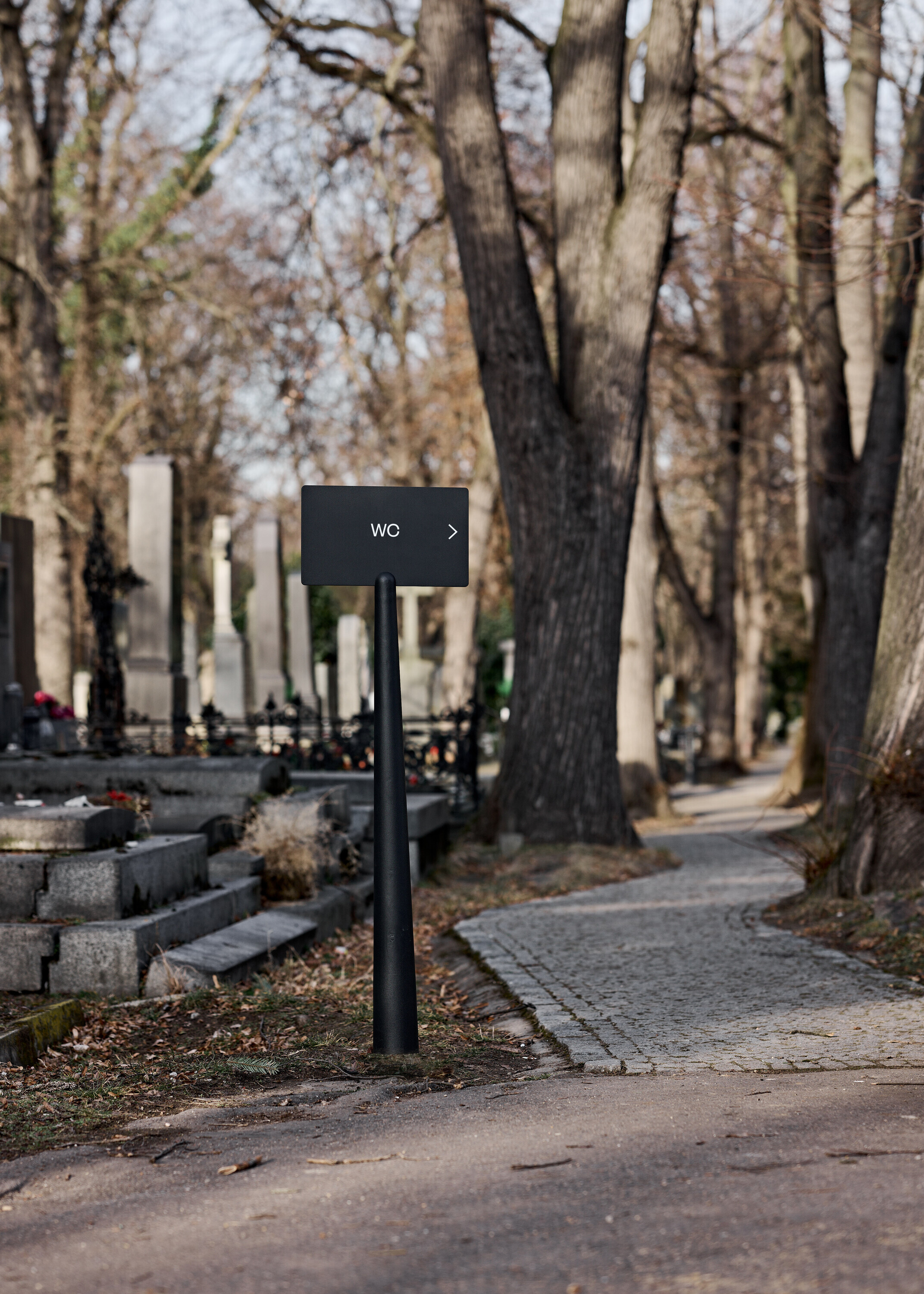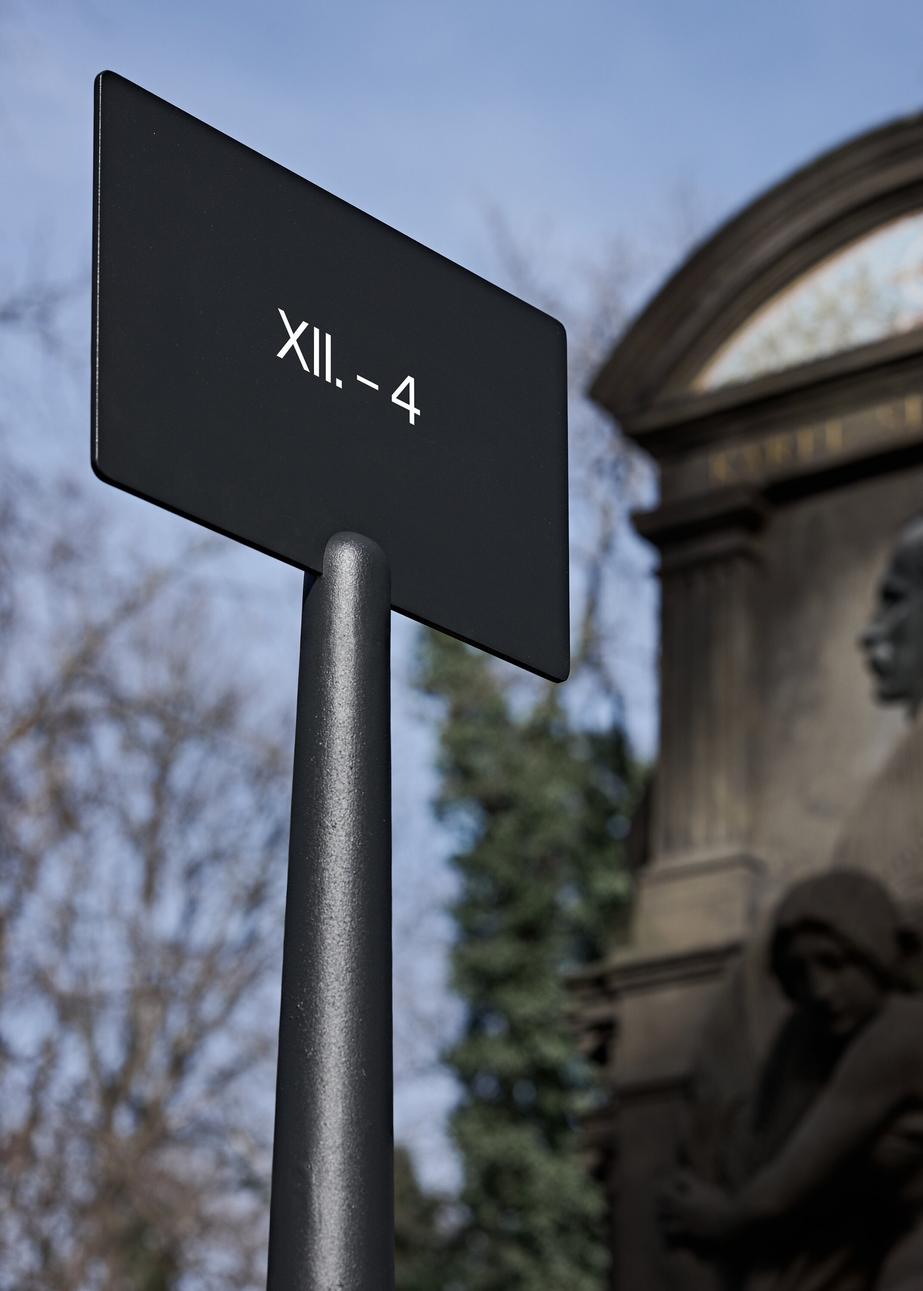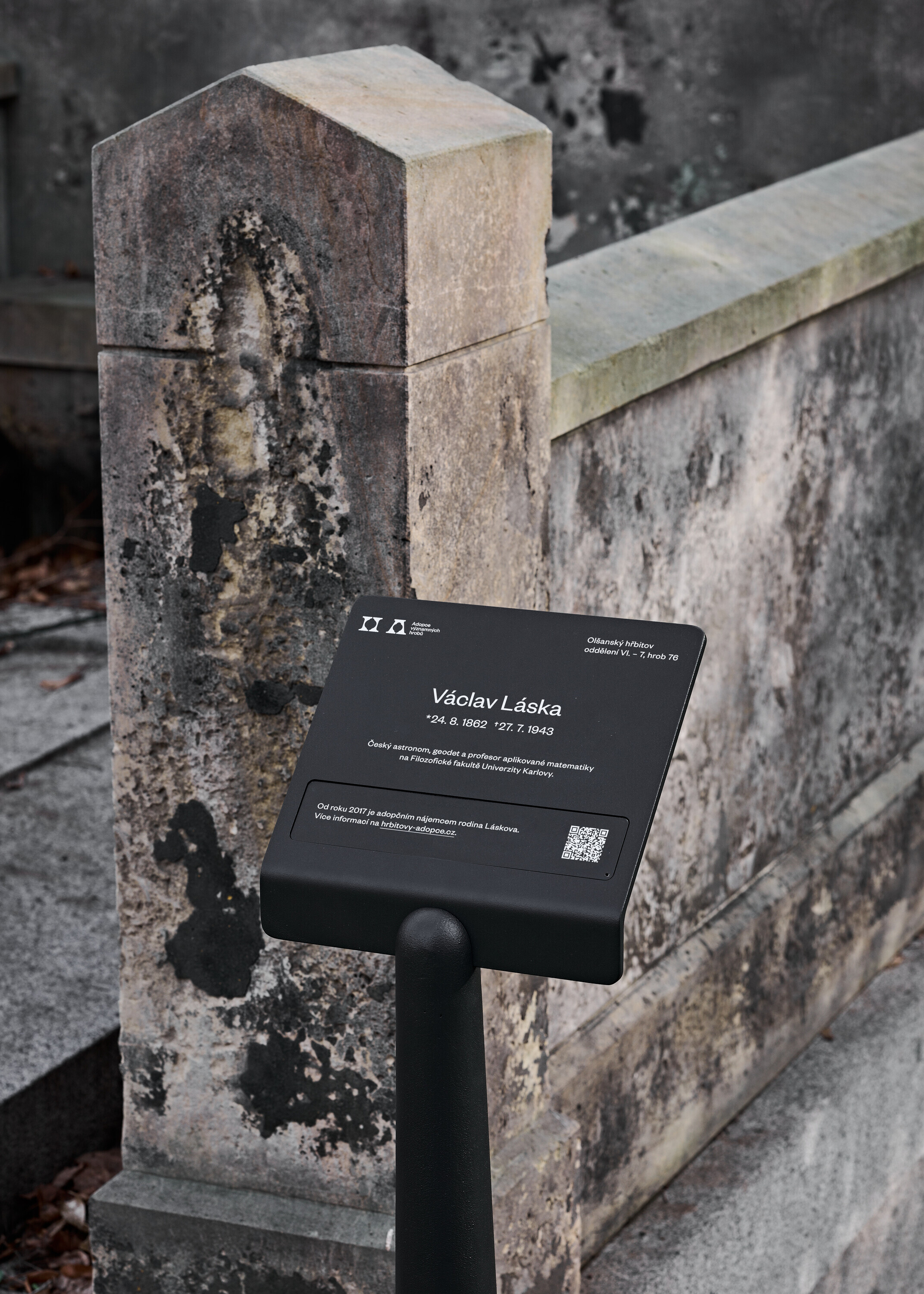 Tridsaťtri cintorínov: presne toľko spravuje príspevková organizácia Hřbitovy a pohřební služby hlavního města Prahy (HPS), ktorá v týchto dňoch na jednom z nich začína montovať prvé prototypy nového orientačného systému. Ten navrhla dizajnérska dvojica Eduard Herrmann a Josef Tomšej.