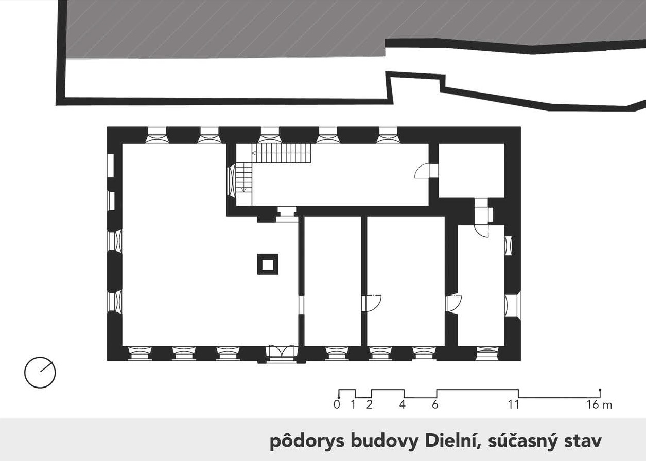 -lokalizácia dreveného schodiska do podkrovia (v súčasnosti už len v torzálnom stave)