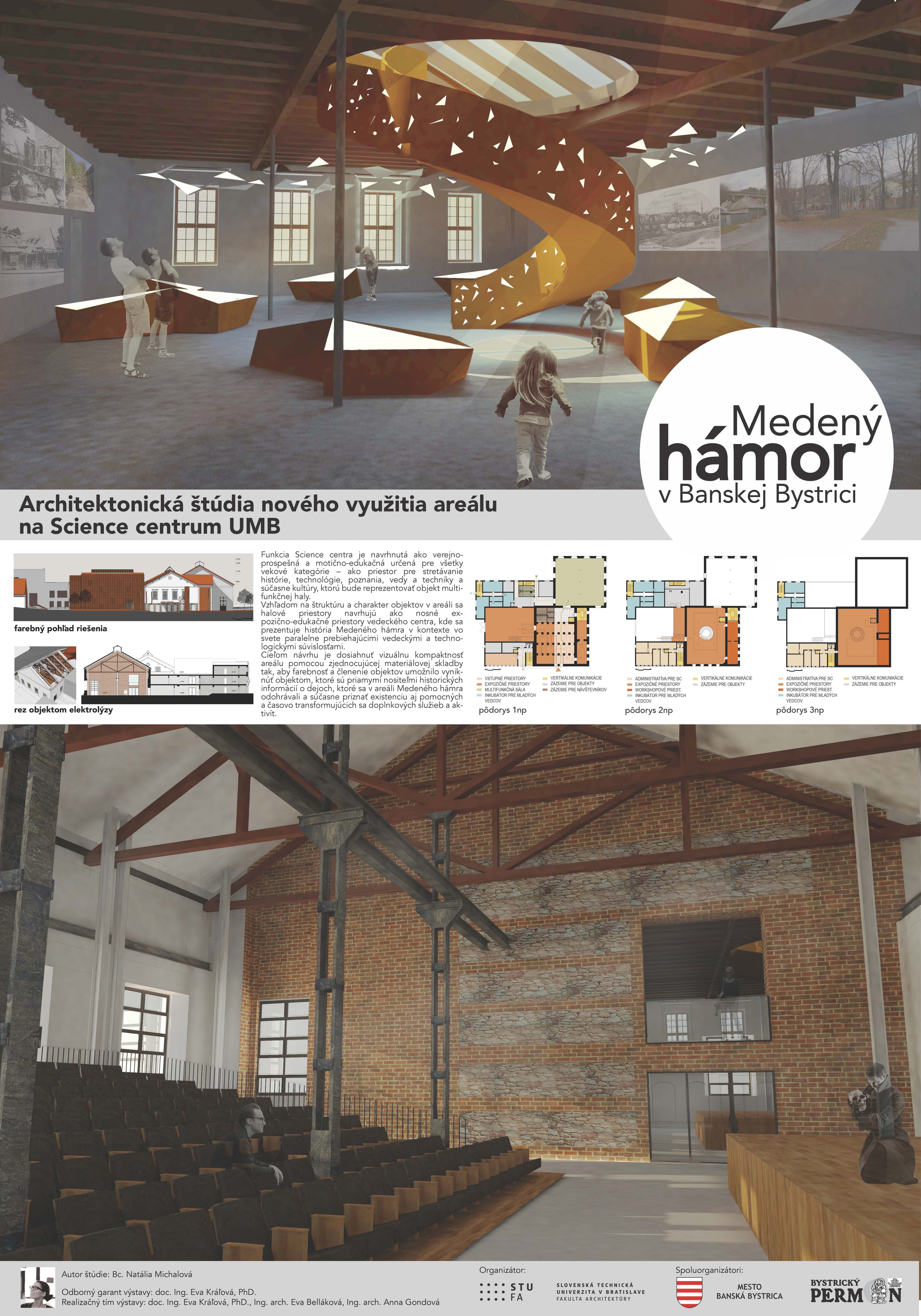 Cieľom diplomovej práce Ing.arch. Natálie Michalovej bolo nájsť takú funkciu, ktorá zrozumiteľným spôsobom sprostredkuje informácie o 500 ročnej histórii tohto industriálneho areálu a vysvetlí význam jeho početných priekopníckych inovácií na poli metalurgie medi a iných neželezných kovov.