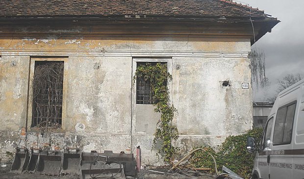-zachované tehlové nadokenné oblúky, ktoré boli zmeneé pri prestavbe po roku 1920.v zmiešanom murive v časti fasády bez strechy,