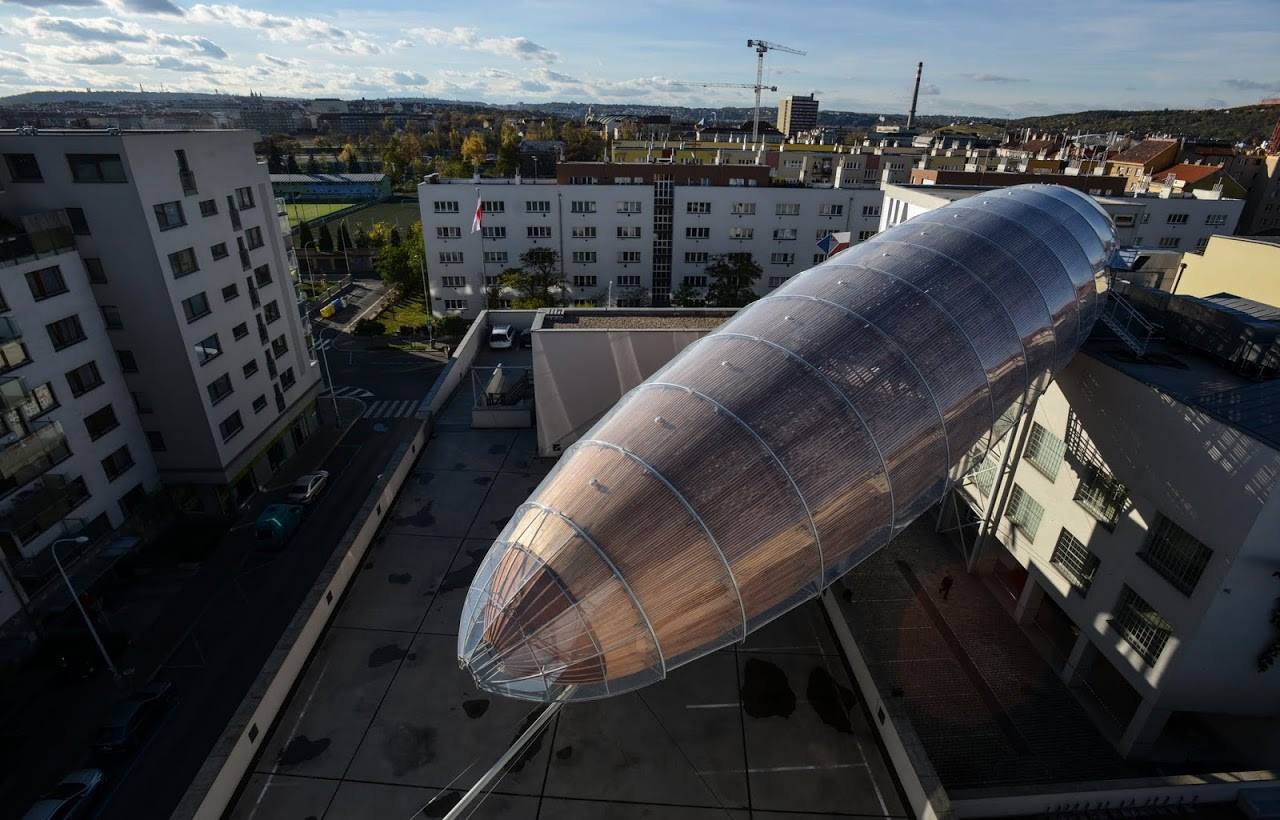 „Myšlenkou vytvořit nad moderní sklo-betonovou budovou Centra DOX jakousi „parazitní“ strukturu jsem se zabýval několik let. Zpočátku jsem snil o absurdně fascinujícím organickém tvaru, který by byl v kontrastu s existující architekturou DOXu“, říká Leoš Válka.
